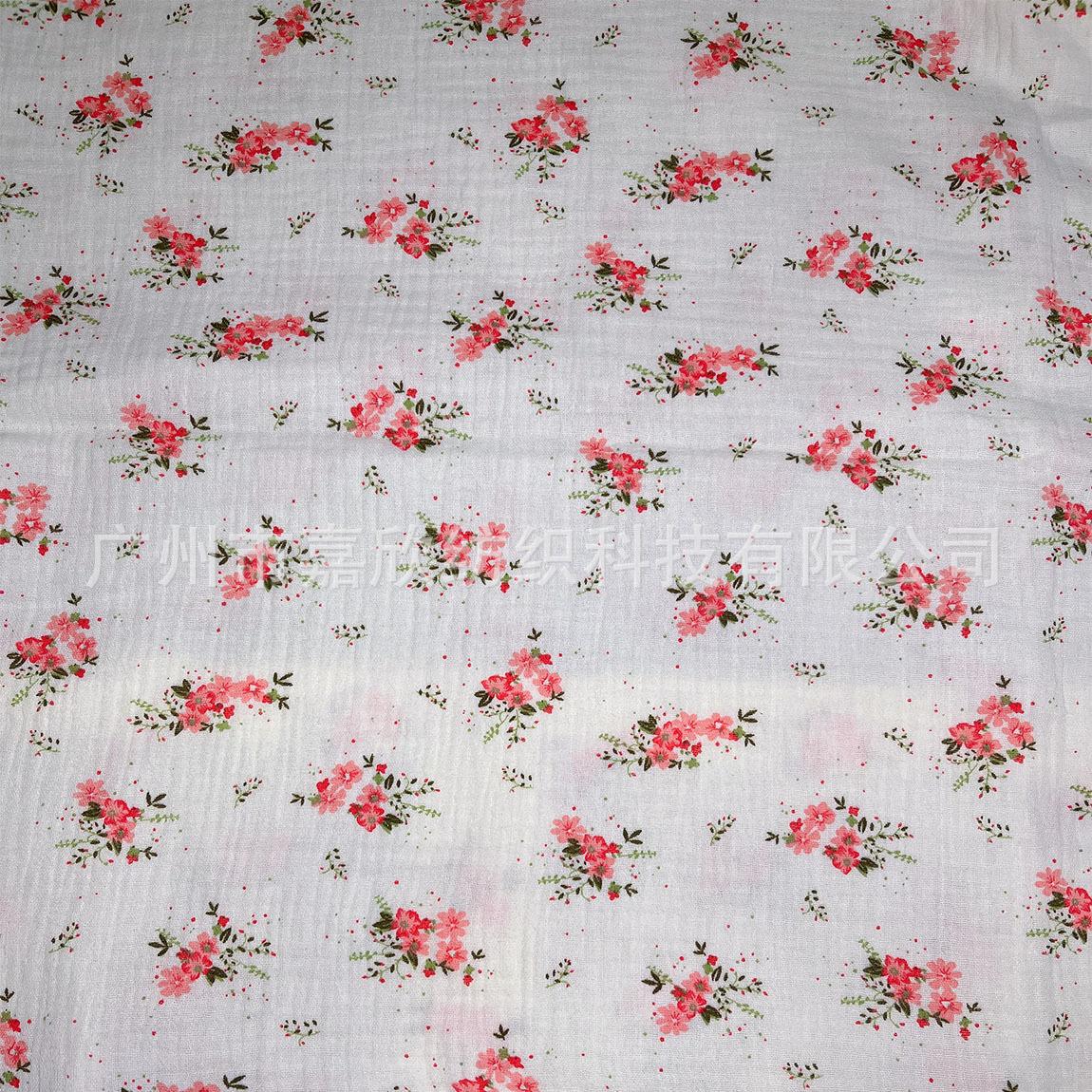 Tela de manta para pijama de bebé de gasa de algodón de doble capa con estampado floral y dibujos animados de muselina crepé