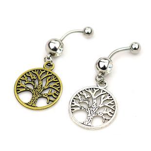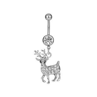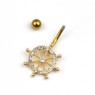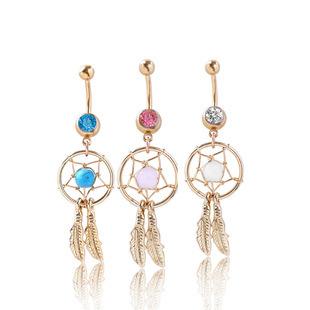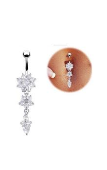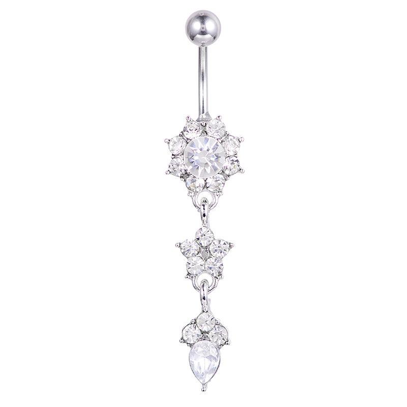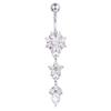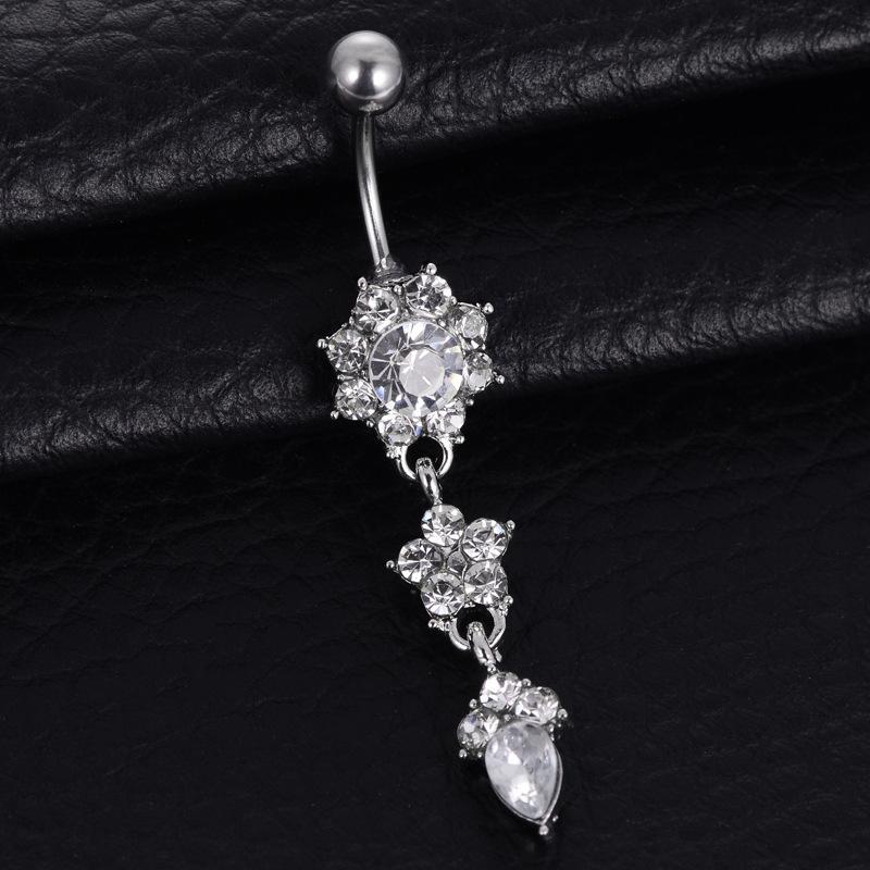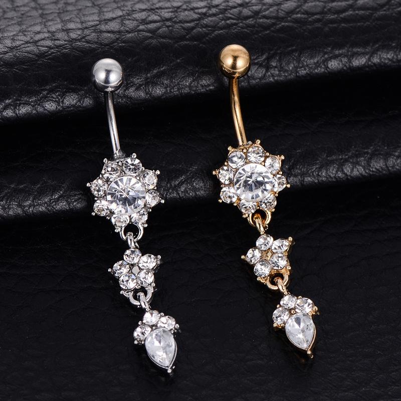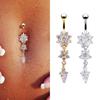 Anillo de ombligo de acero inoxidable con diseño de flor exquisita de Amazon, con diamantes, para perforar el ombligo, colgante largo con hebilla, venta al por mayor