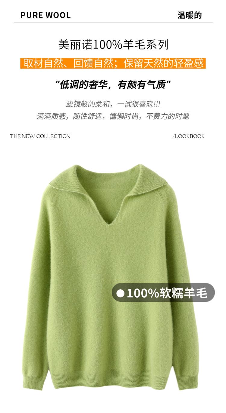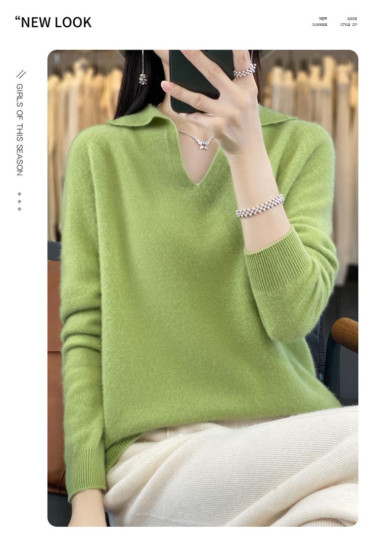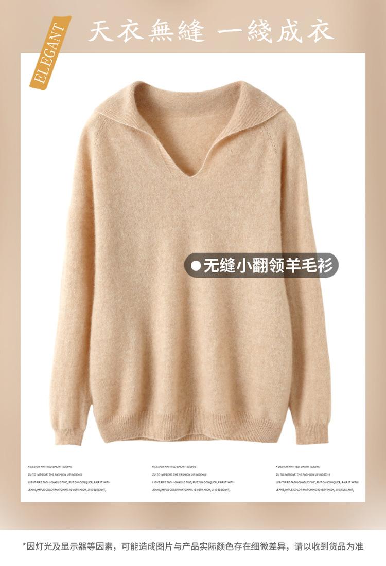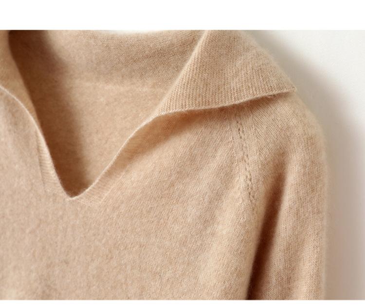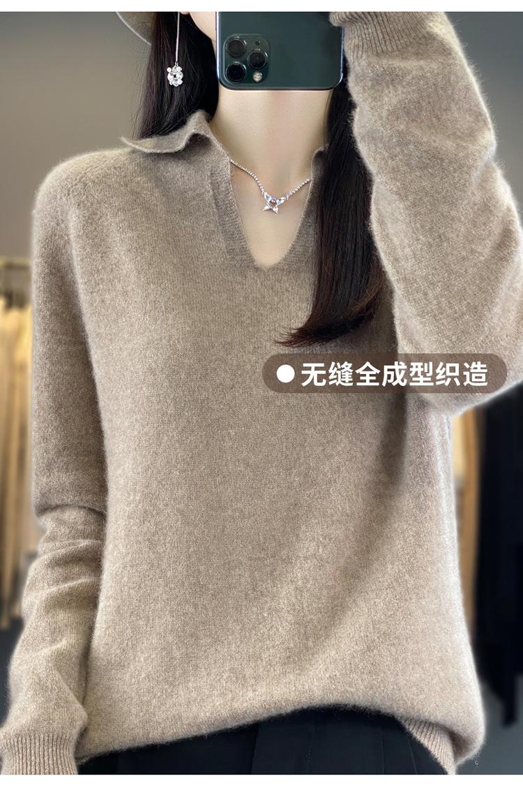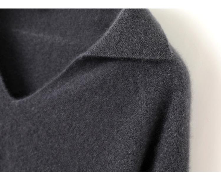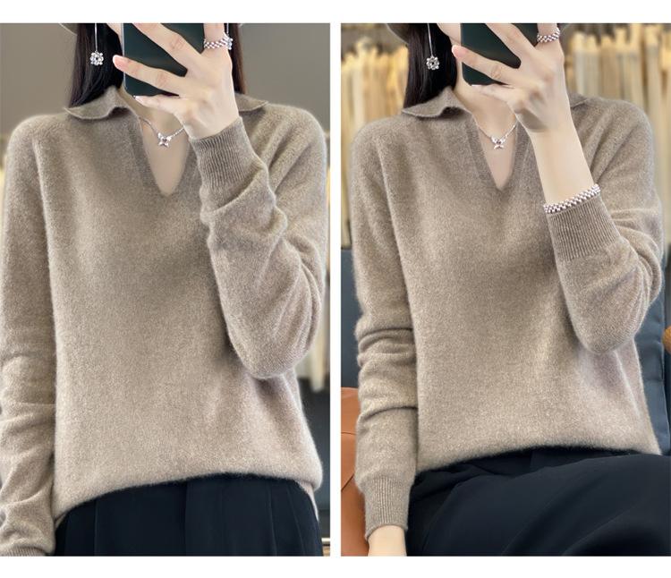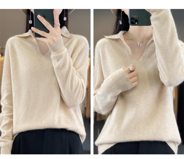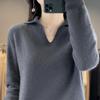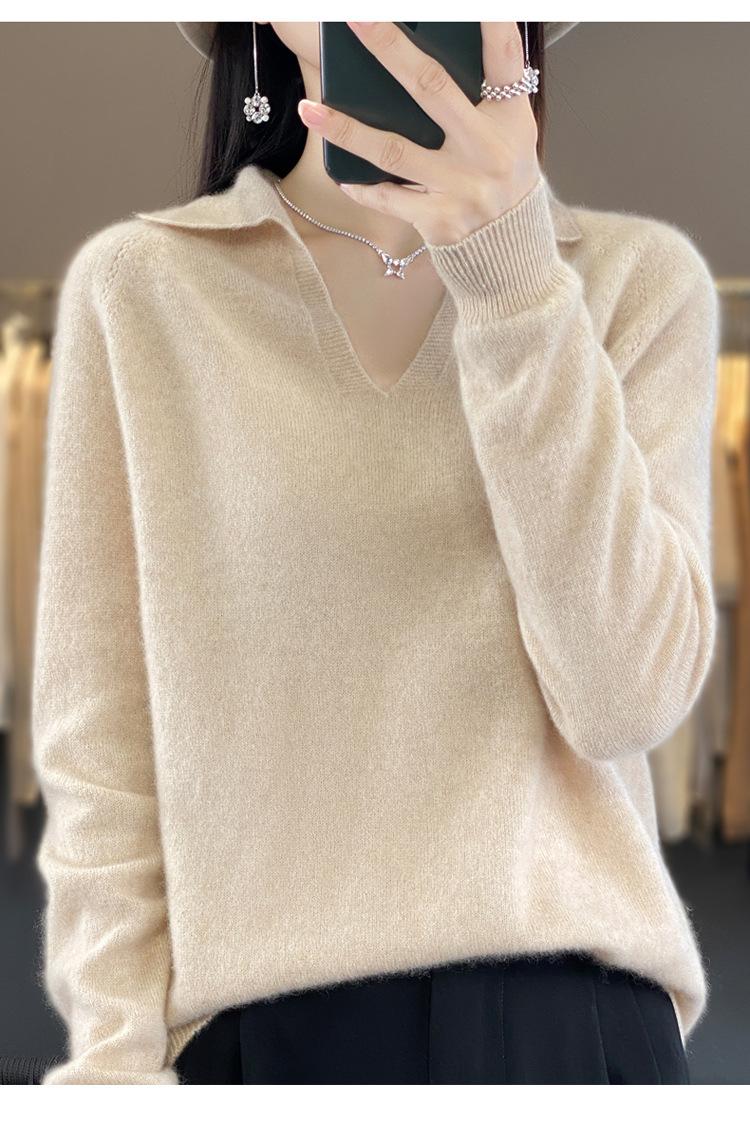 Otoño e invierno Nuevo suéter de lana 100 pura para mujer, elegante cuello en V, punto interior, solapa holgada adelgazante exterior