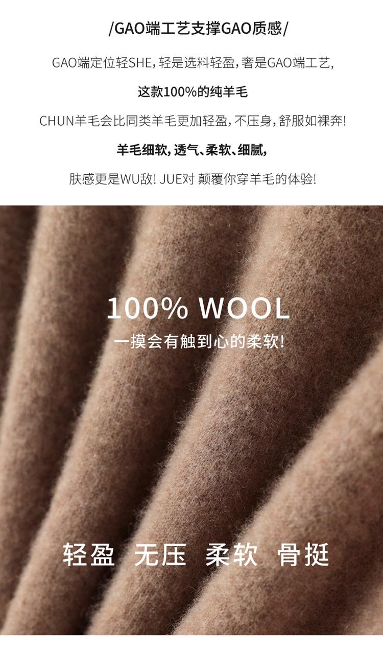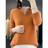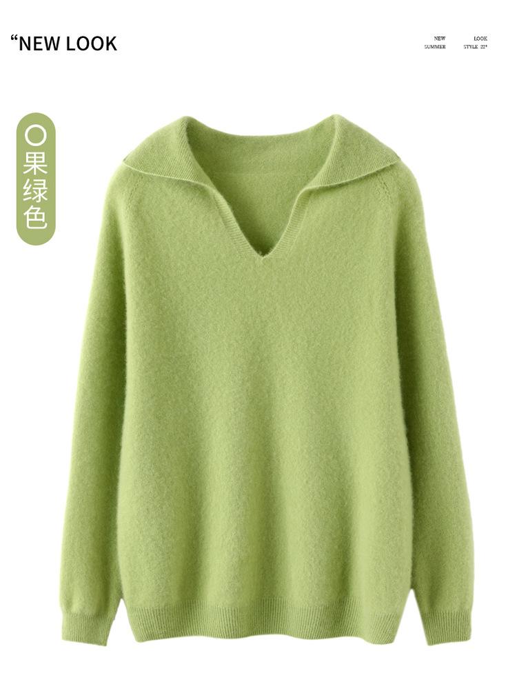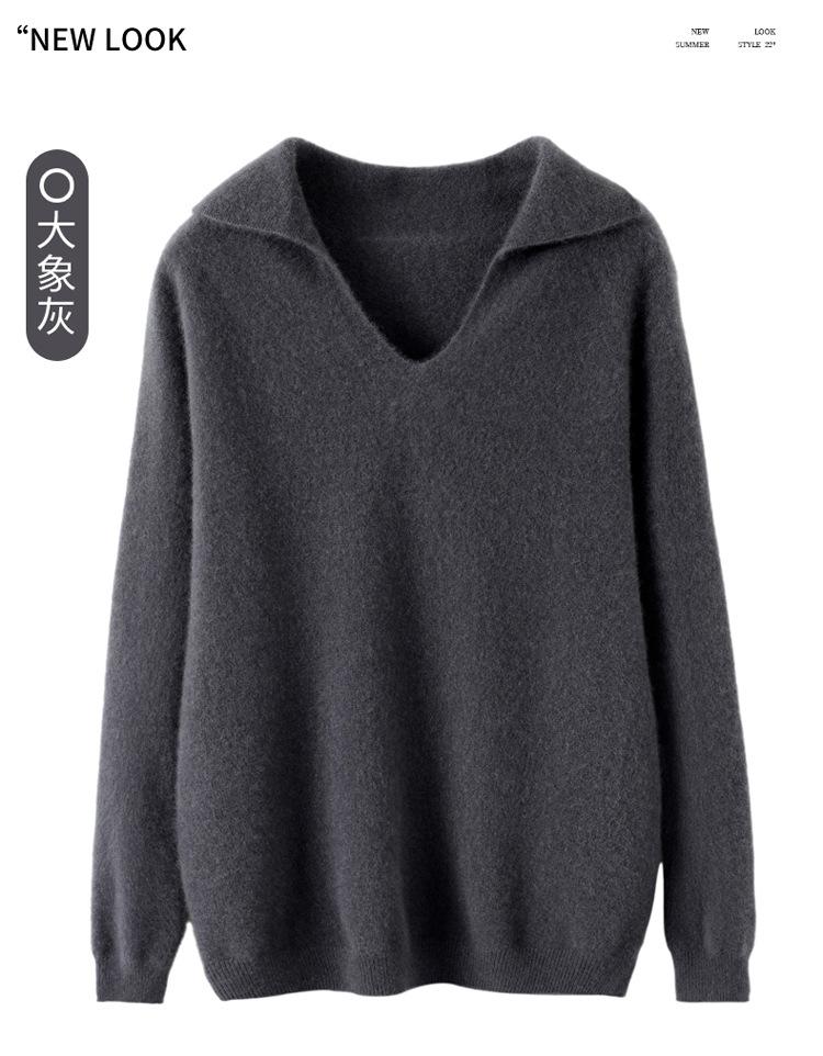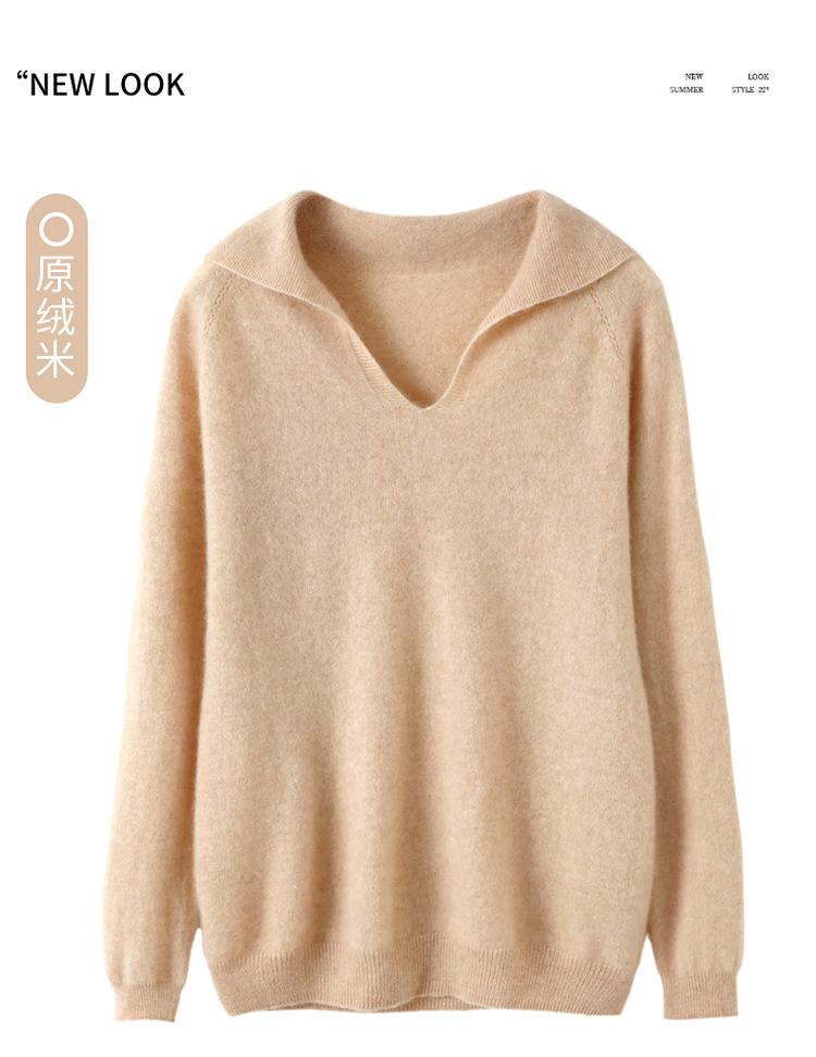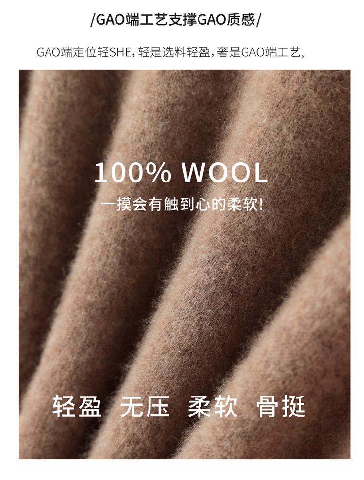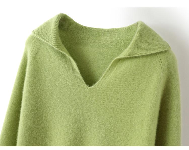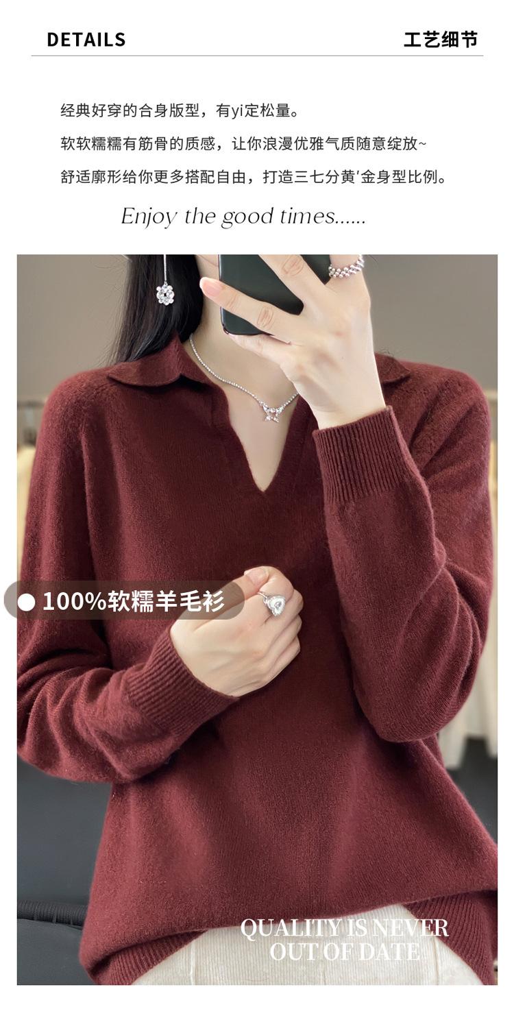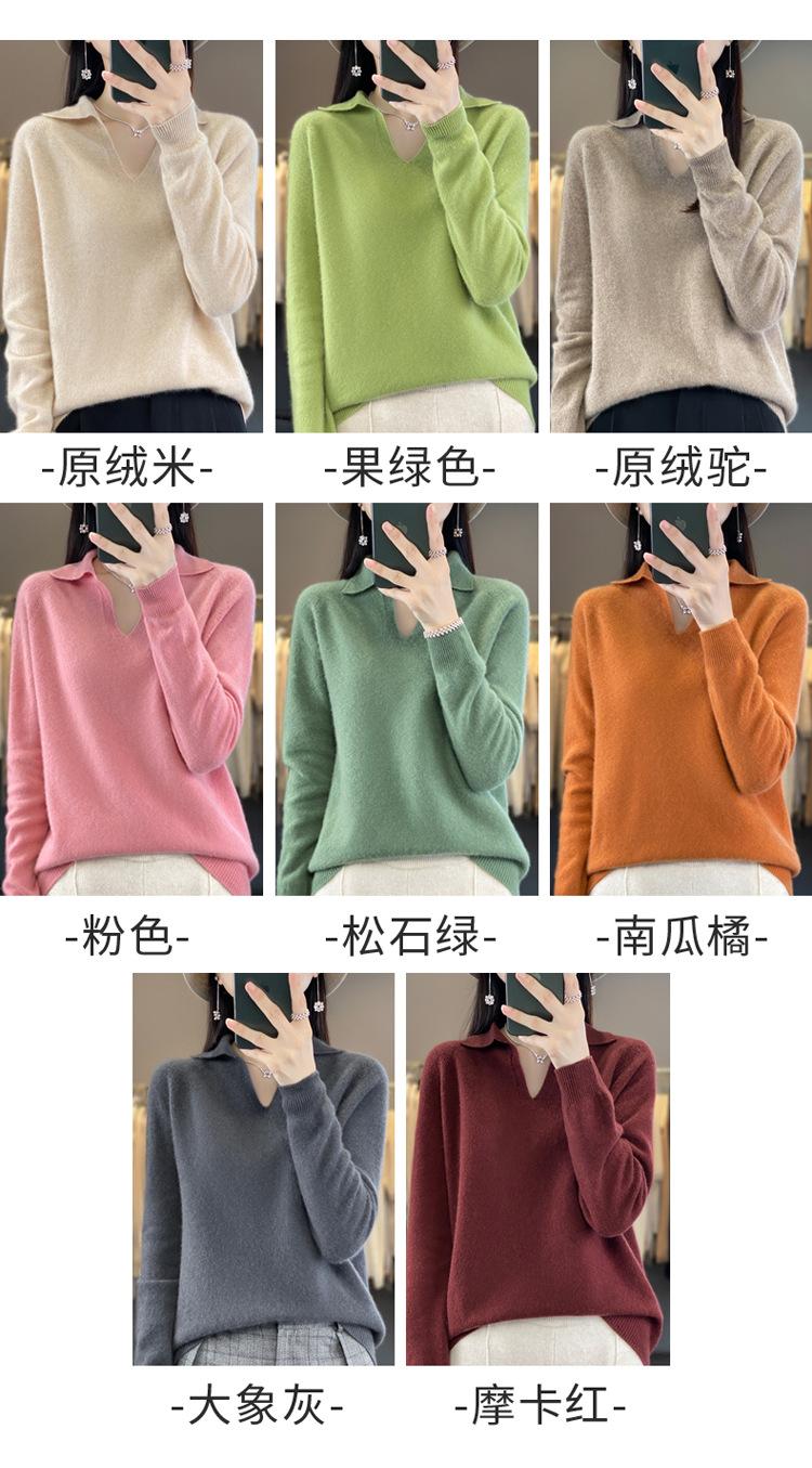 Otoño e invierno Nuevo suéter de lana 100 pura para mujer, elegante cuello en V, punto interior, solapa holgada adelgazante exterior