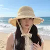 Sombrero de Playa, Sombrero de Paja de Encaje, Sombrero de Sol de Verano para Mujer, Sombrero de Pescador Transpirable con Protección Solar, Sombrero de Paja Estilo Vacacional