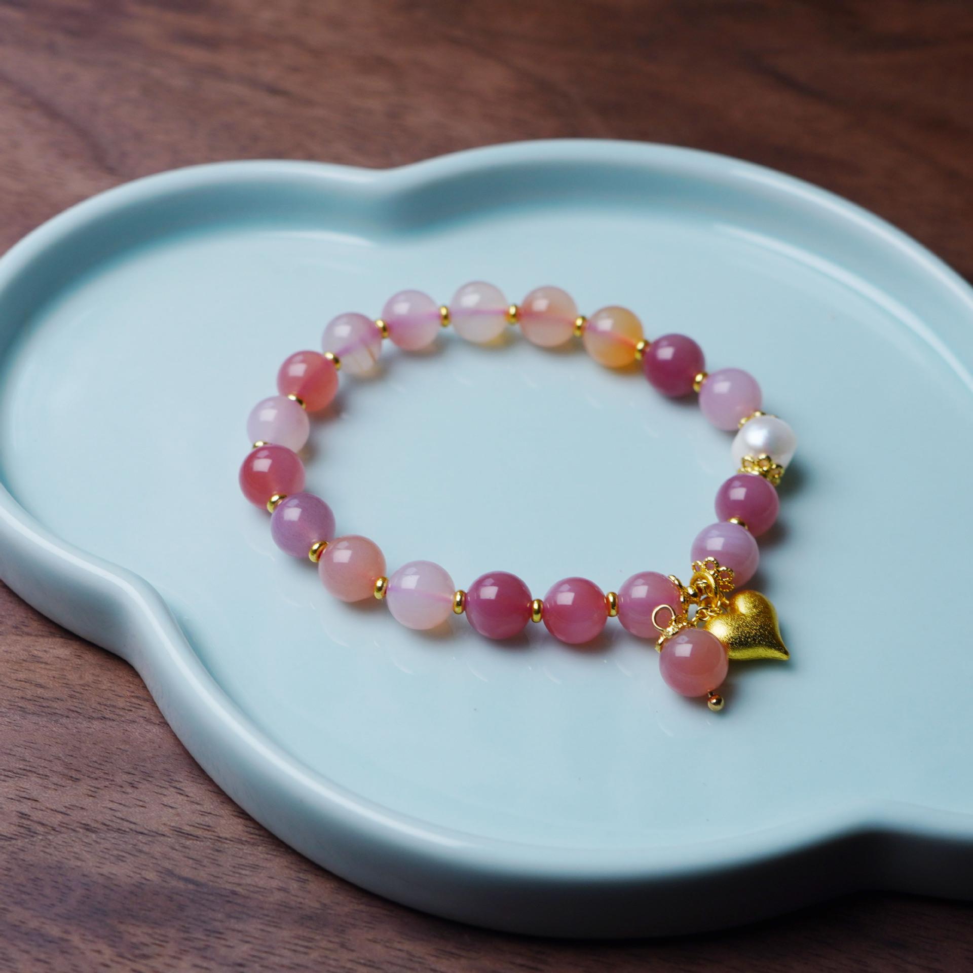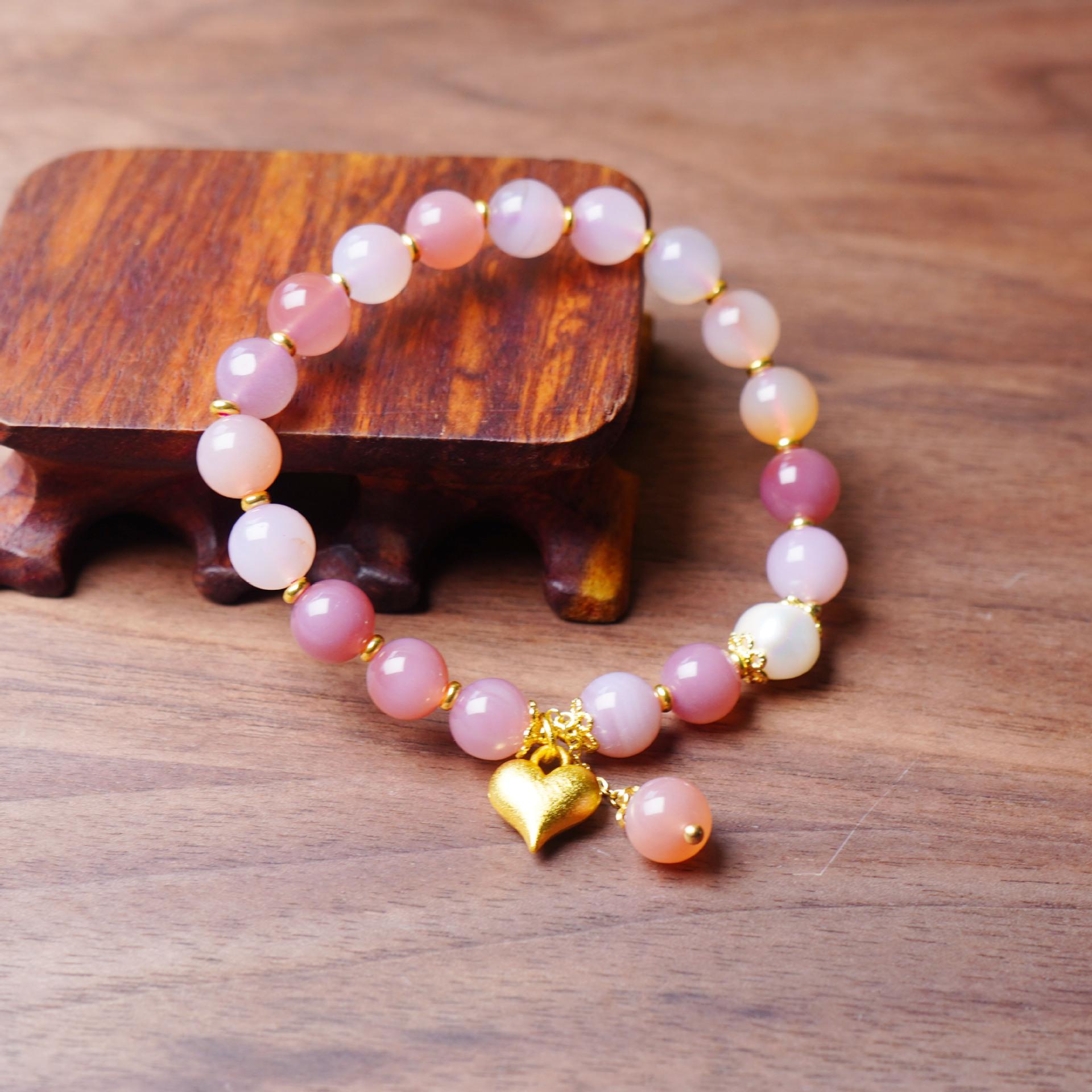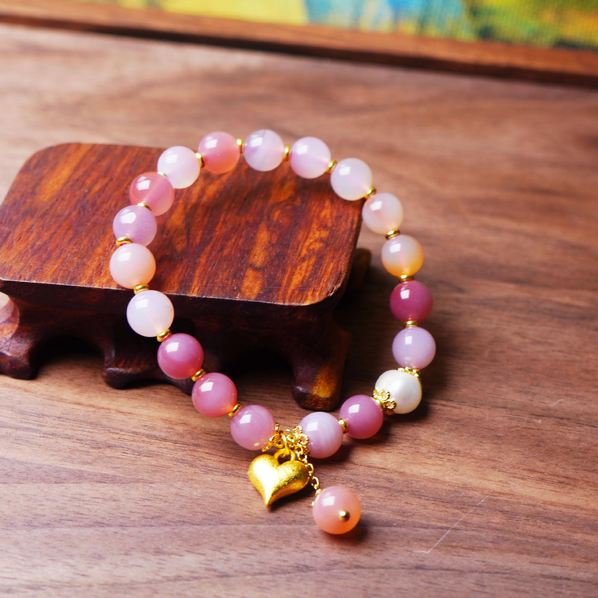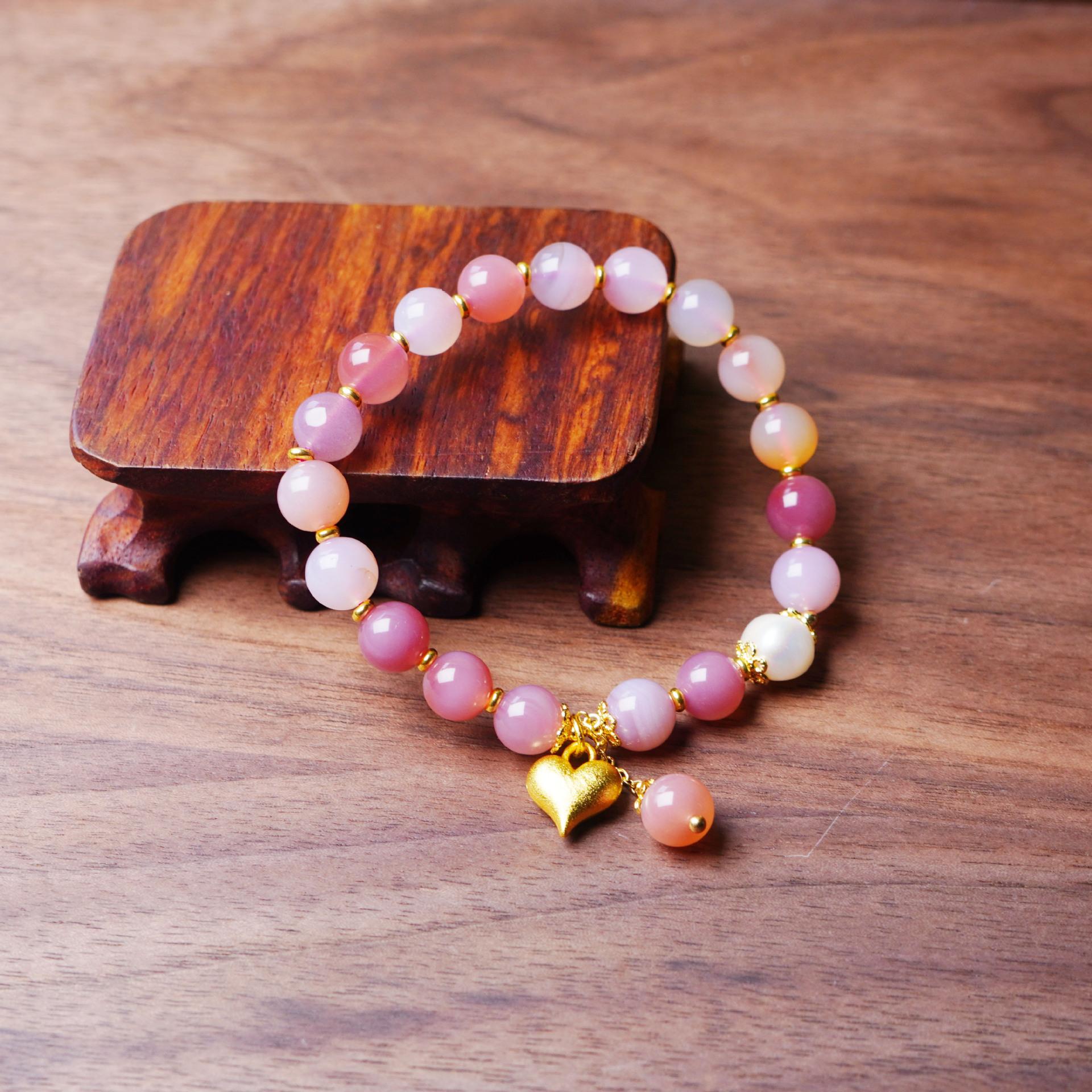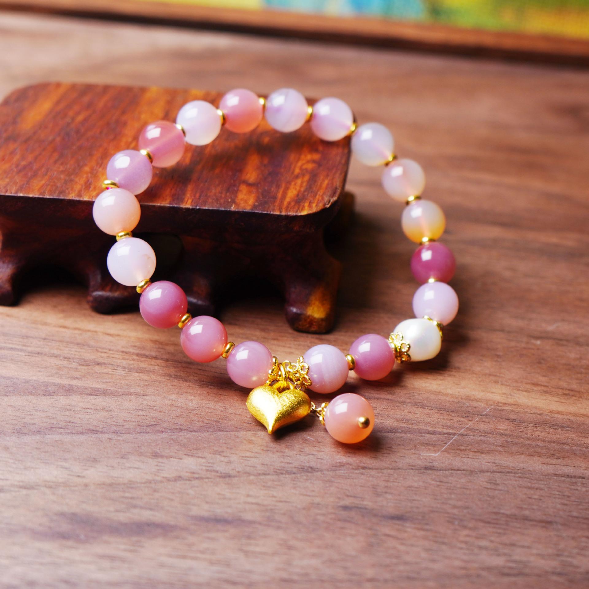 Nueva Pulsera de Ágata Carmesí con Cuentas Estilo Chino para Mujer con Colgante de Flor Dorada, Diseño de Estilo Nacional Joyería de Pulsera de Perlas