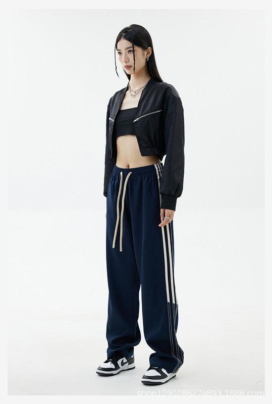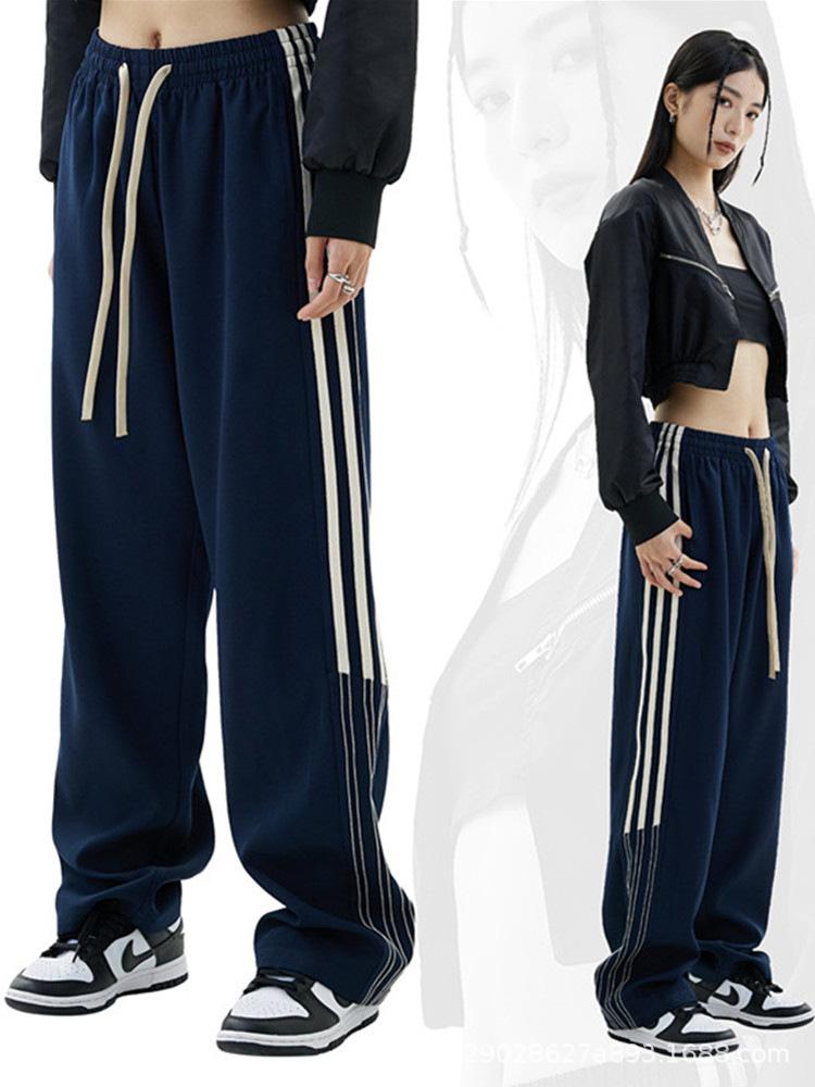 Pantalones deportivos pequeños para mujer otoño e invierno 2023 nuevos americanos drapeados holgados modernos pantalones de chándal casuales rectos de pierna ancha