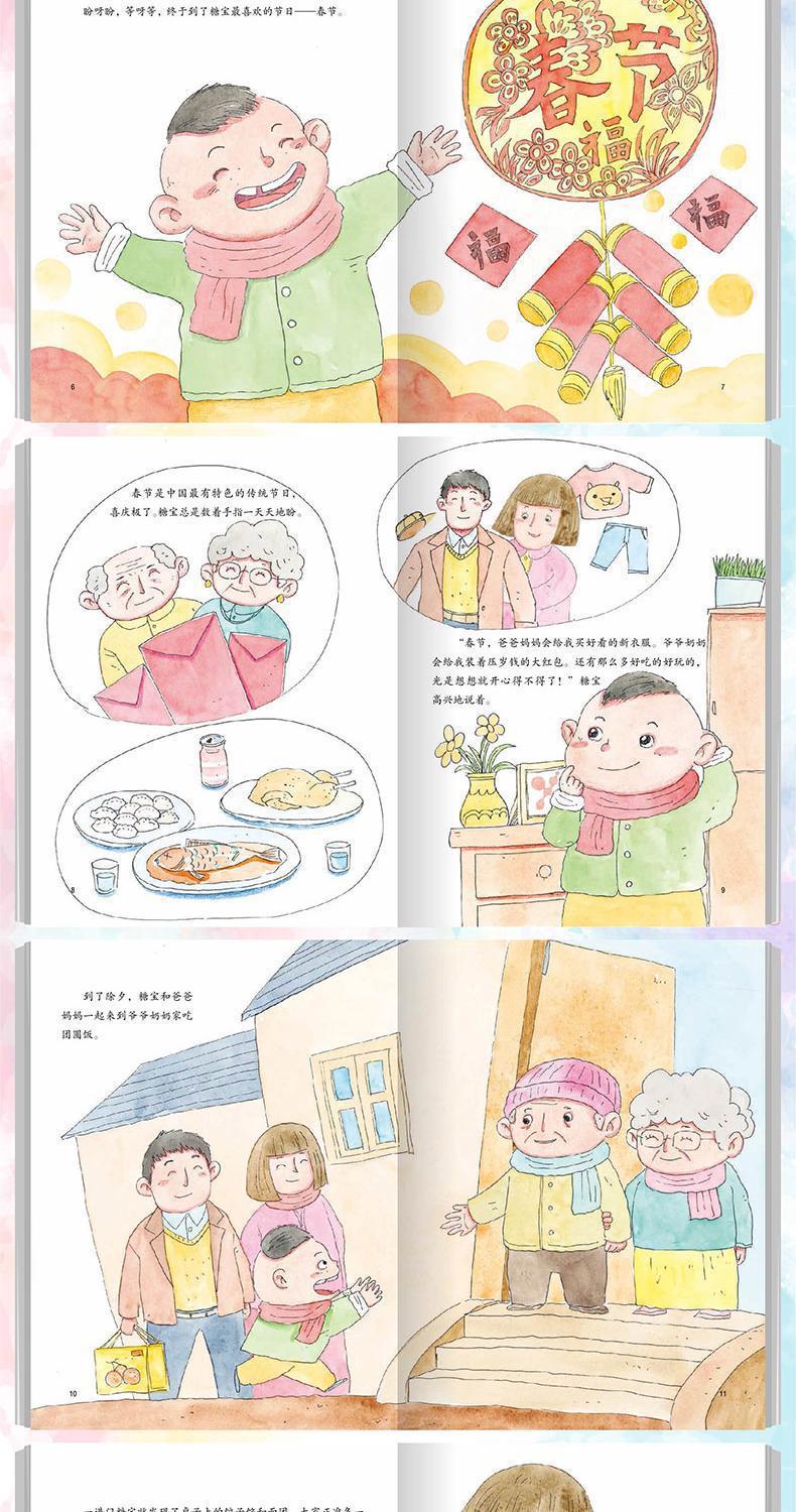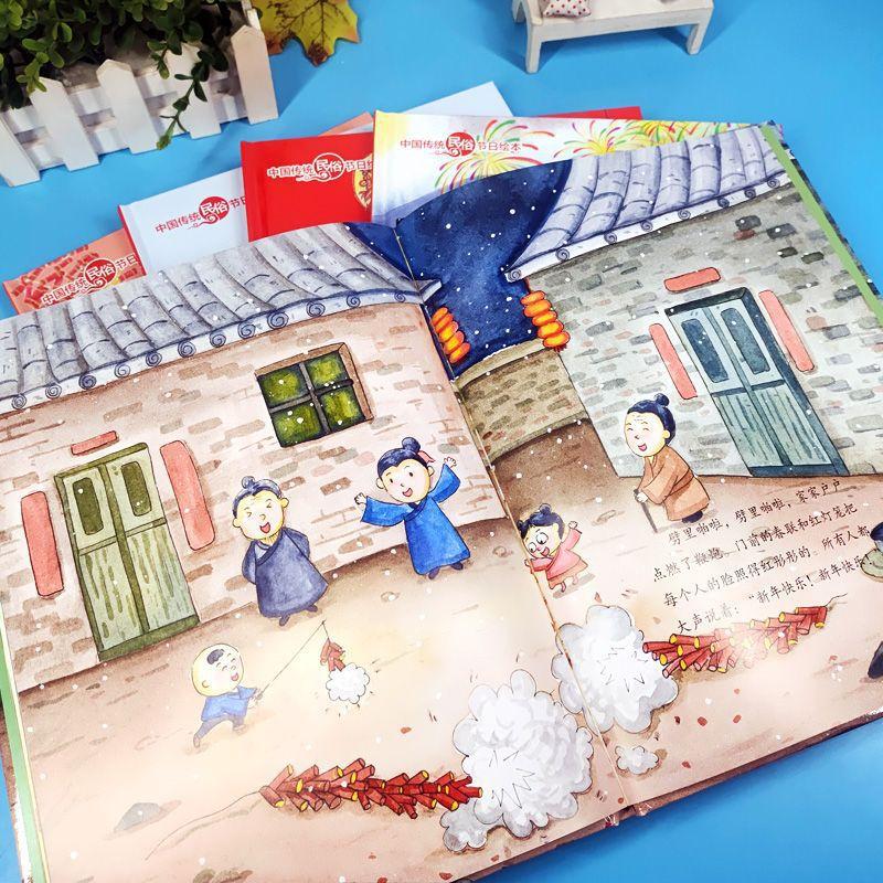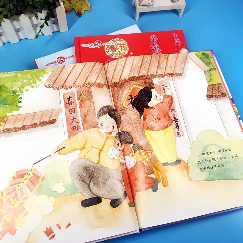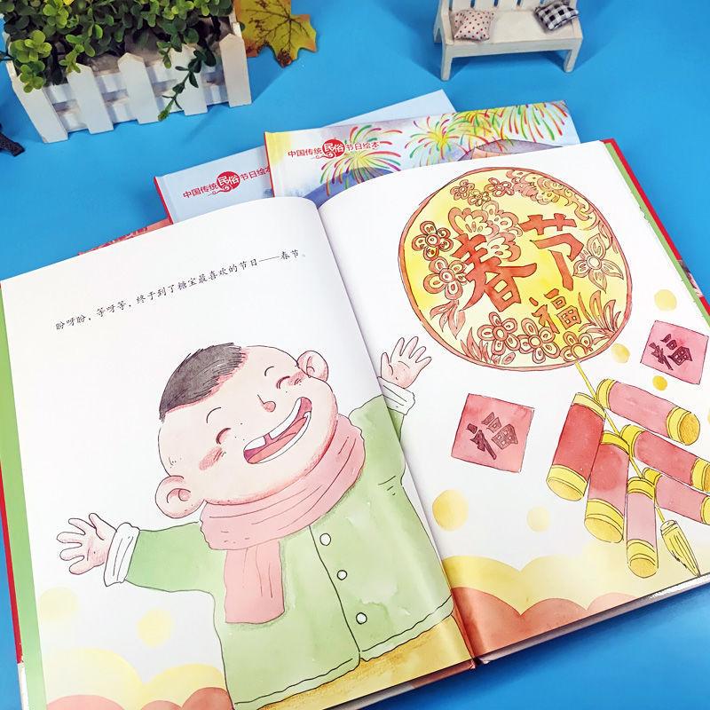 Libros ilustrados de tapa dura, de cuero duro y de tapa dura para jardín de infantes, clases grandes, medianas y pequeñas, sobre el año 5, libros ilustrados, feliz Festival de los Faroles Chinos.