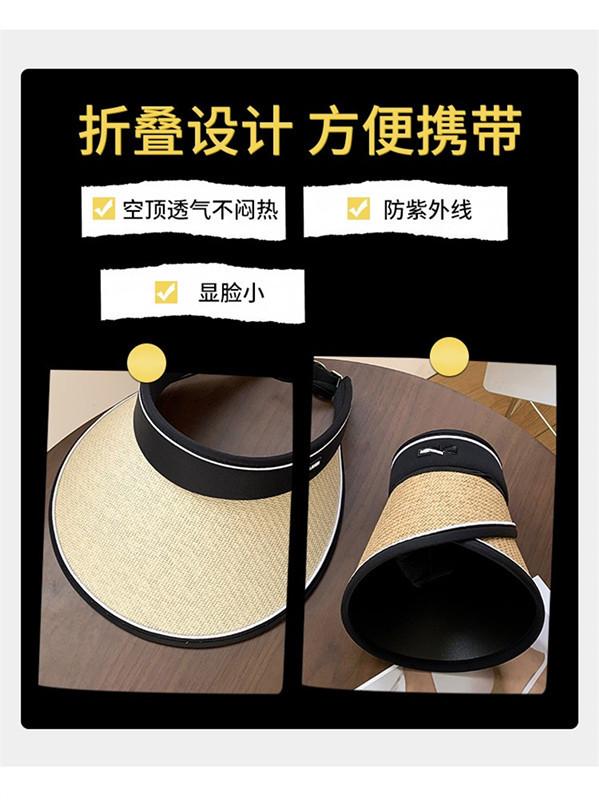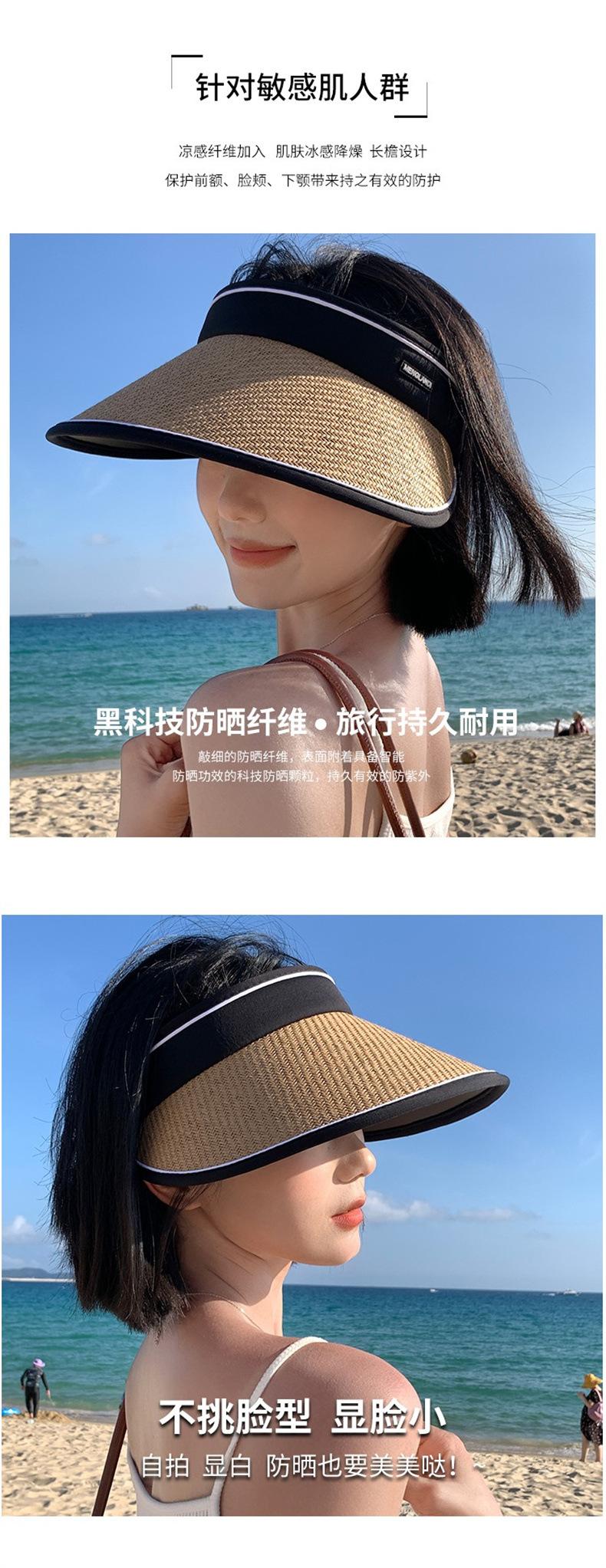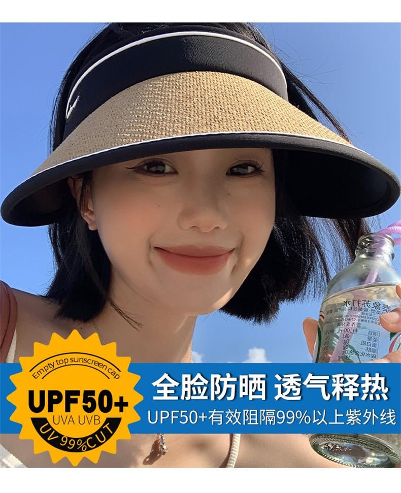 Sombrero de Vinilo para Protección Solar para Mujer, Sombrero de Paja Anti-UV Nuevo de Verano para el Sol, Ala Ancha, Cubre la Cara, Sombrero para el Sol de Copa Vacía