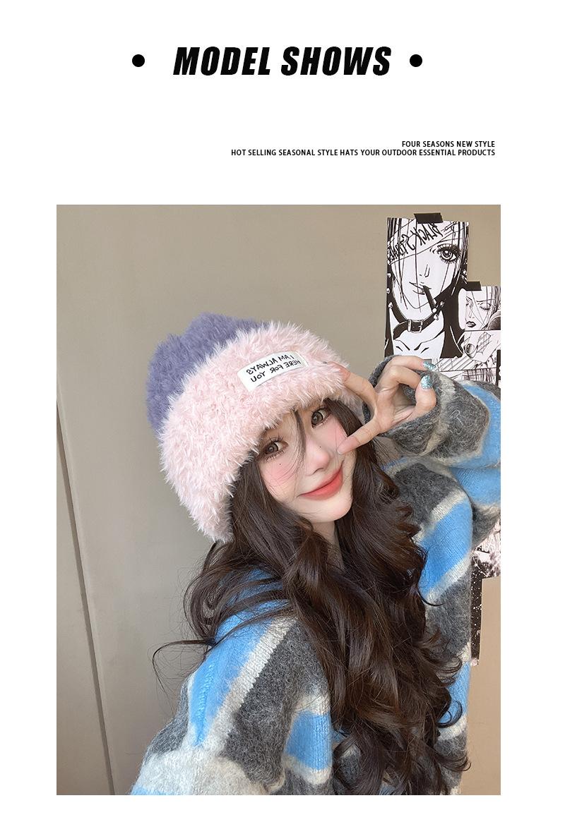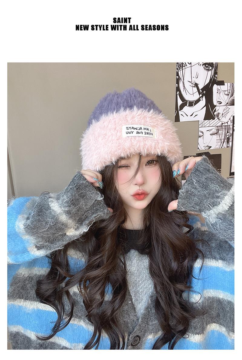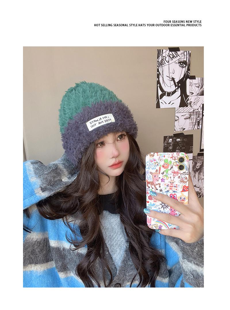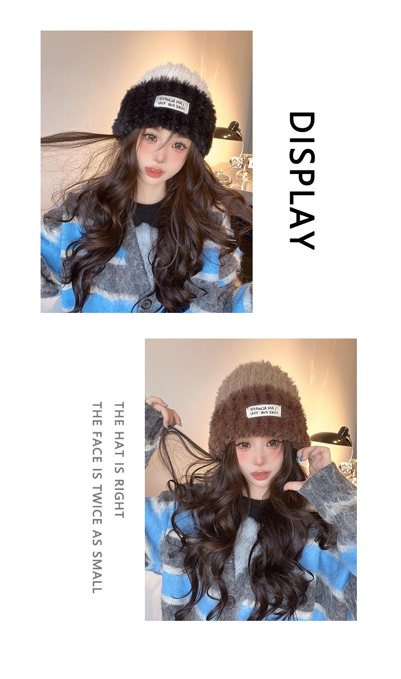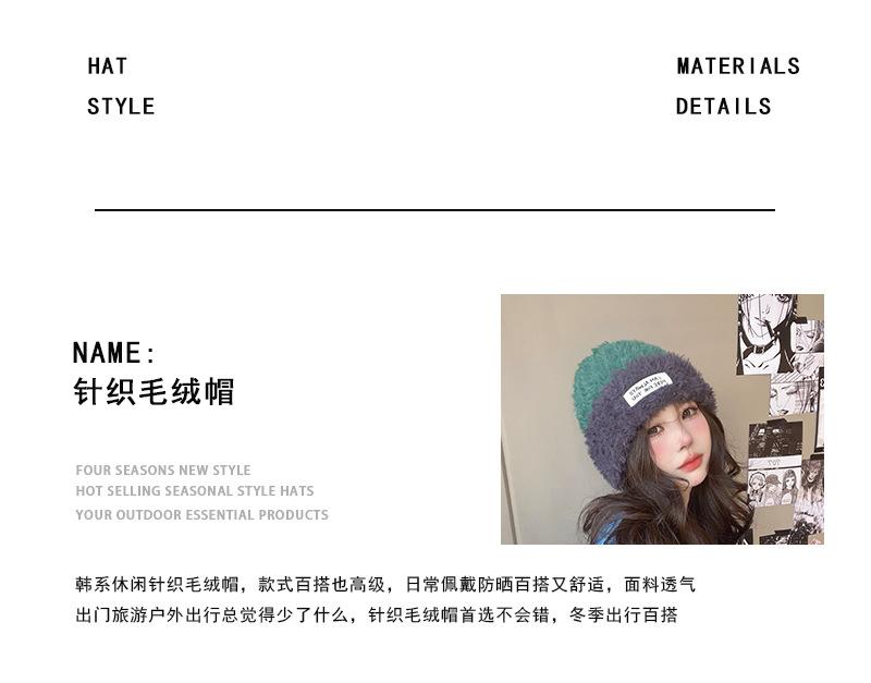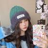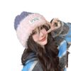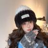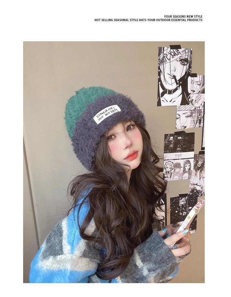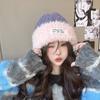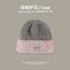 Gorro de felpa con letras a juego de dos colores versátil de estilo coreano para otoño e invierno, gorro de punto cálido con protección para los oídos para exteriores, gorro de lana gruesa a la moda