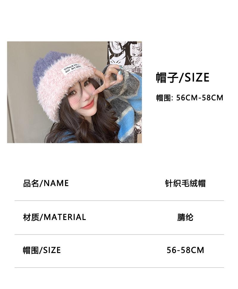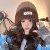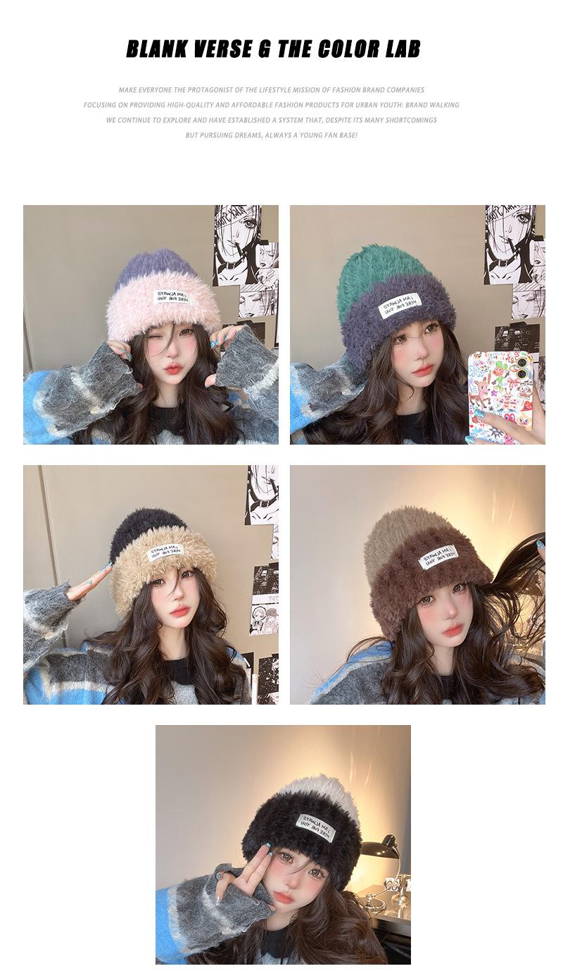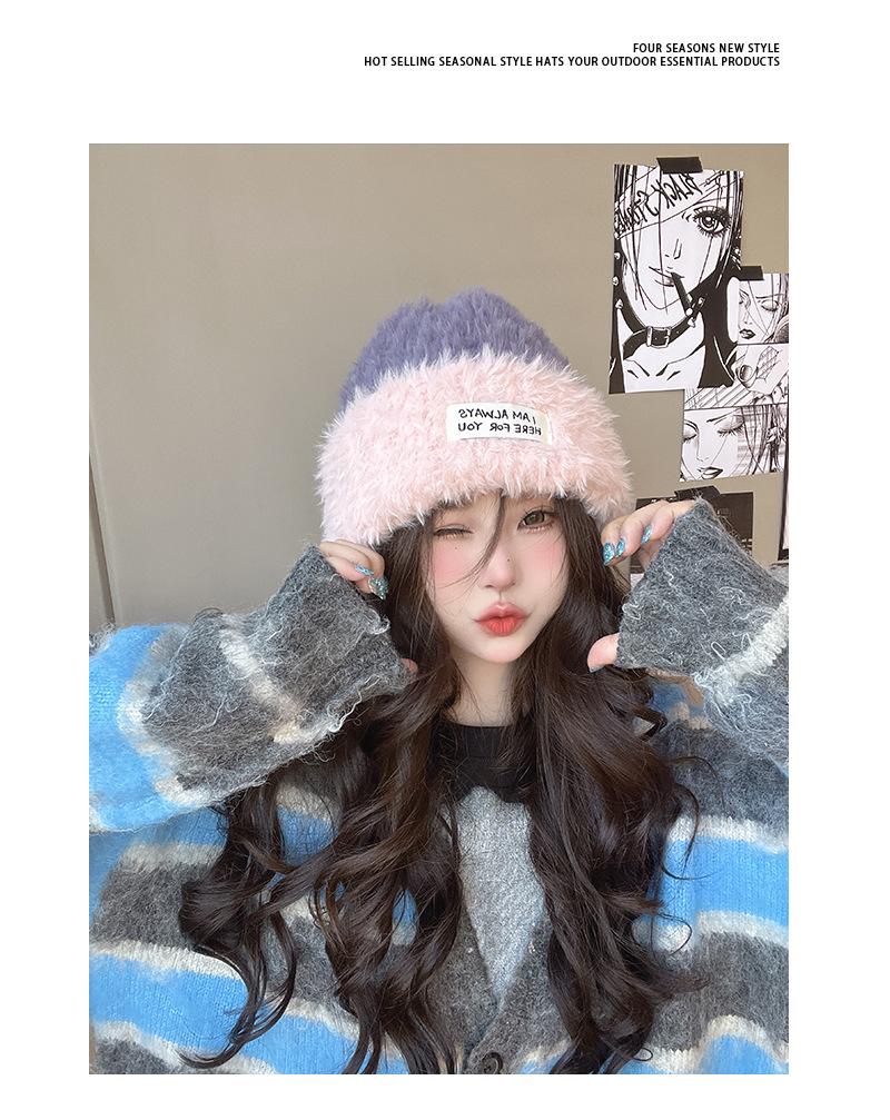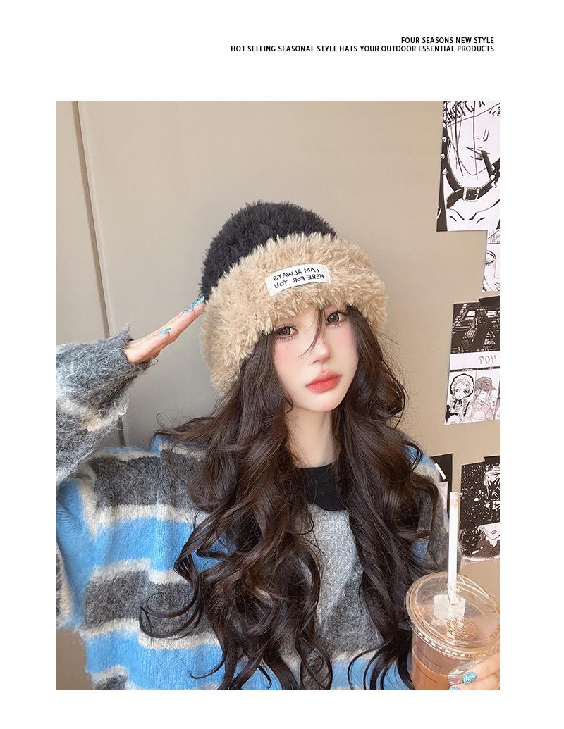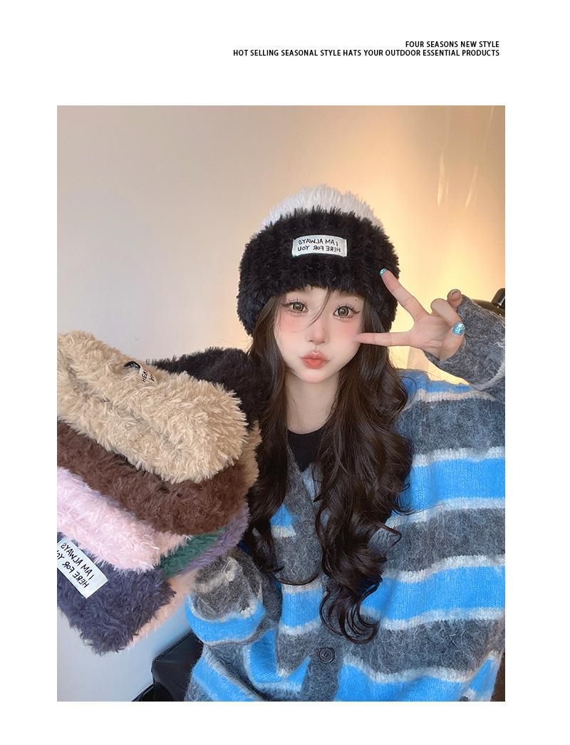 Gorro de felpa con letras a juego de dos colores versátil de estilo coreano para otoño e invierno, gorro de punto cálido con protección para los oídos para exteriores, gorro de lana gruesa a la moda