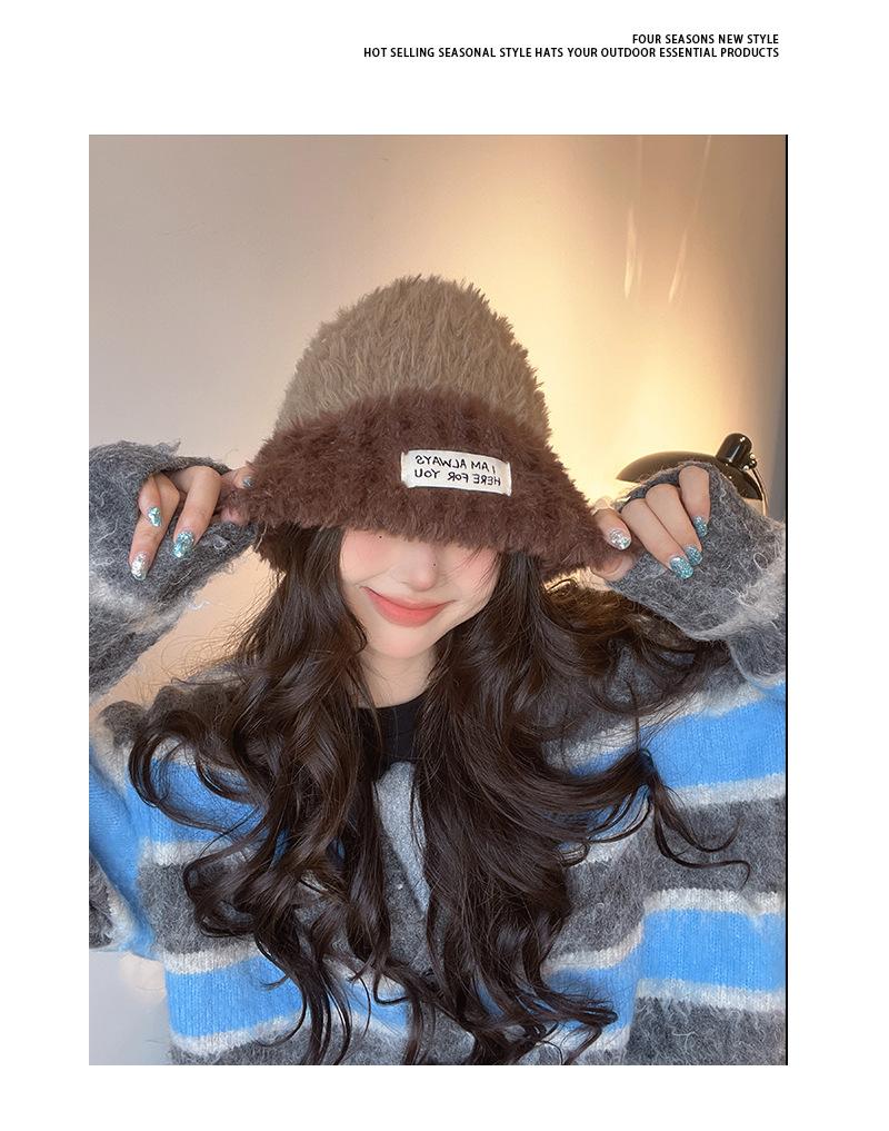 C2766 double color patch plush hat DIY Black + White, C2766 double color patch plush hat DIY coffee + Brown, C...