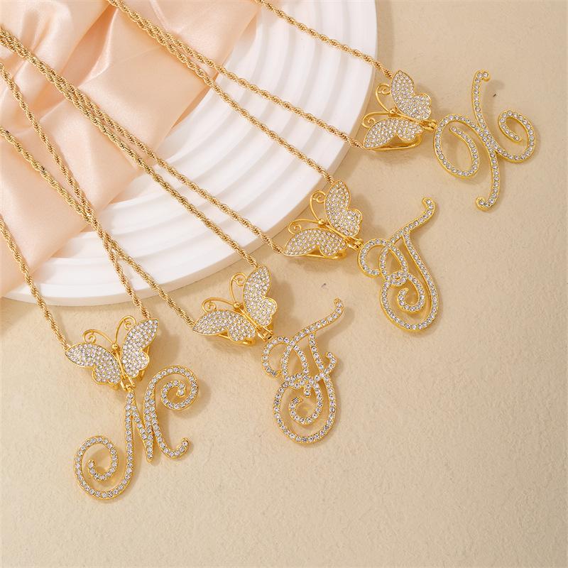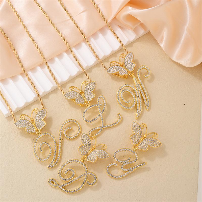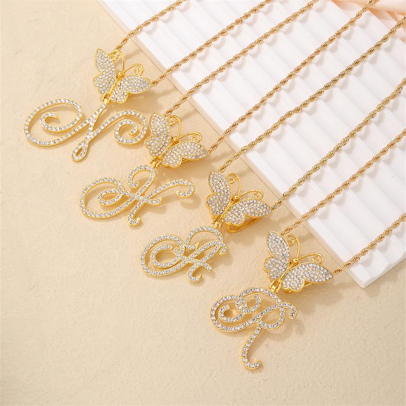 Collar con colgante de letra de diamante moderno transfronterizo europeo y americano para mujer, novedad de AliExpress, cadena de diamantes retorcida completa, joyería