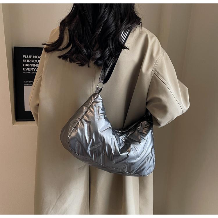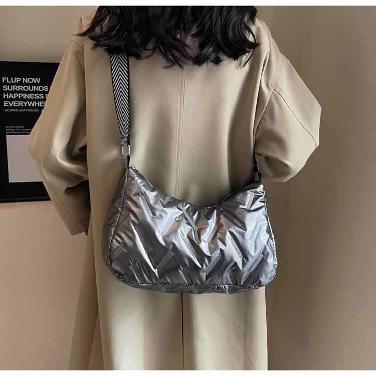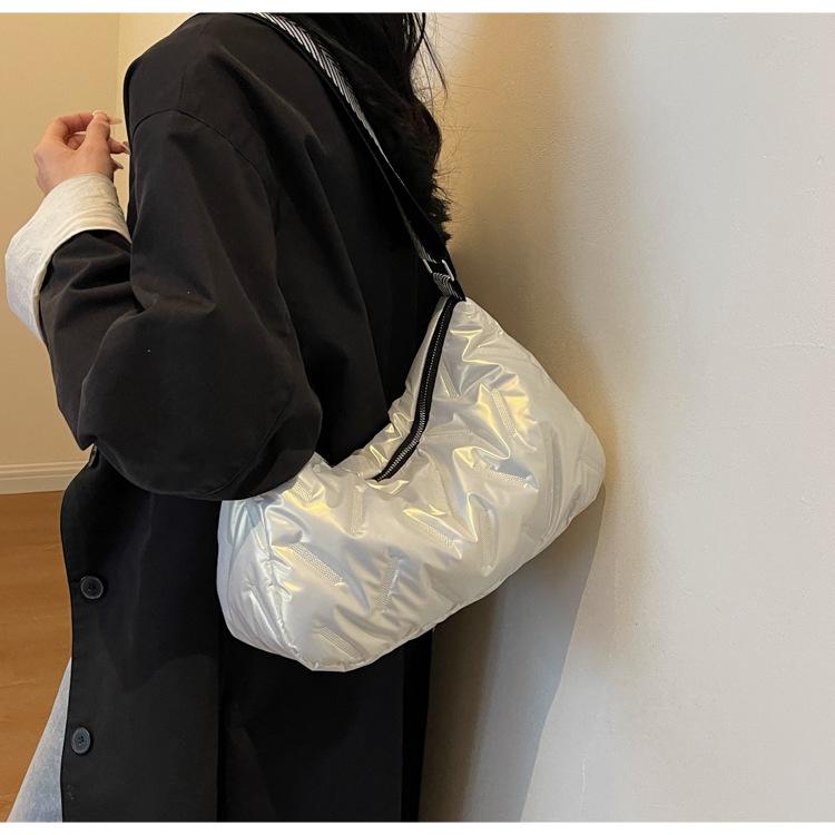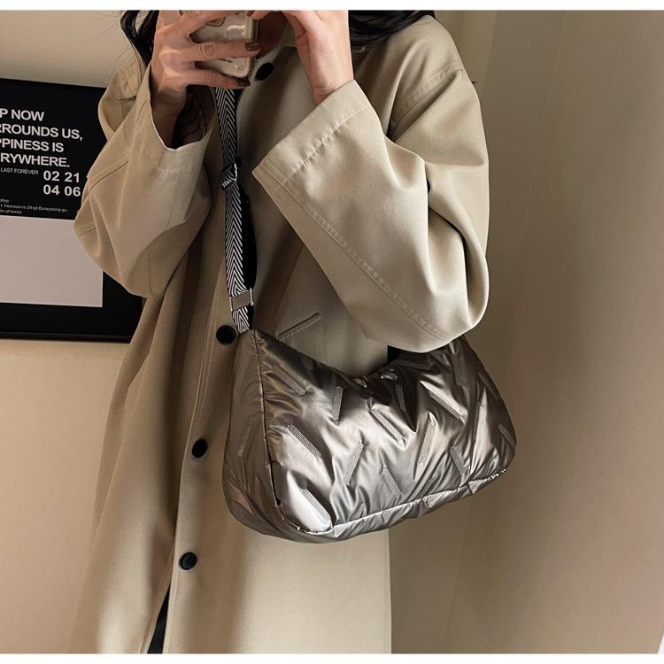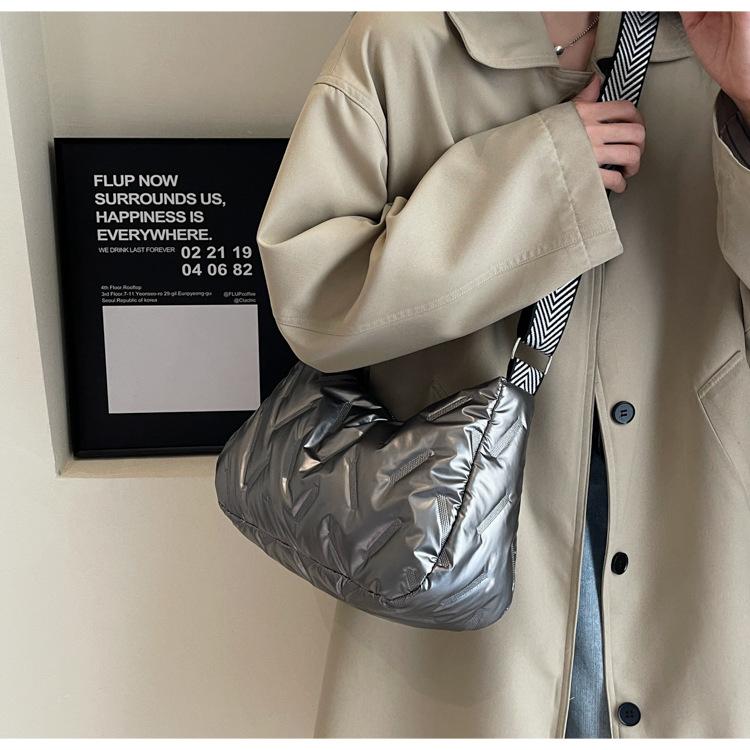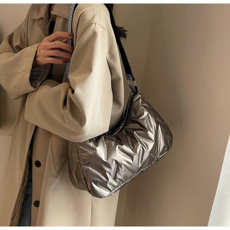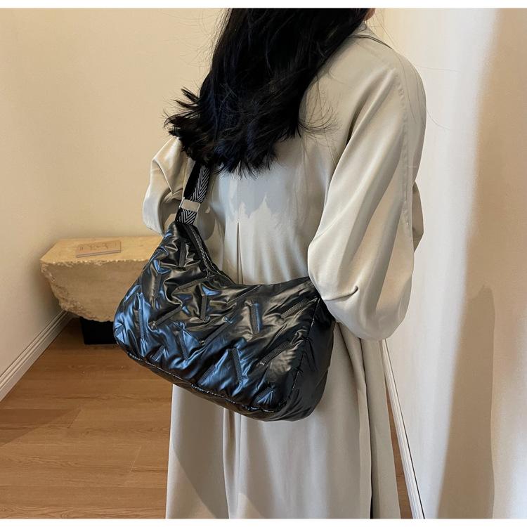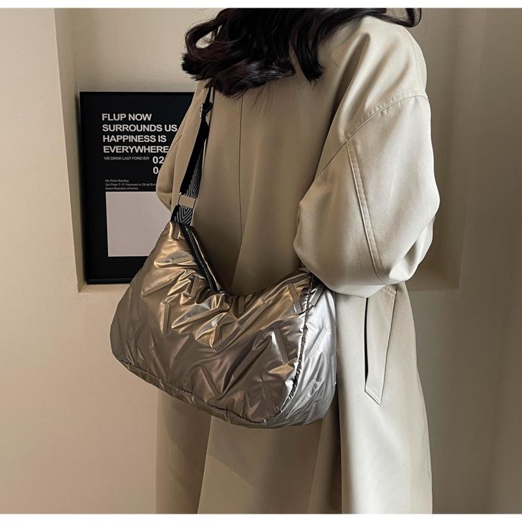 Chaqueta brillante acolchada de algodón para otoño e invierno, bolso grande, para mujer, 2023 nuevo, ligero, bolso de hombro, popular en redes, moda, plumón de algodón, bolso de axila