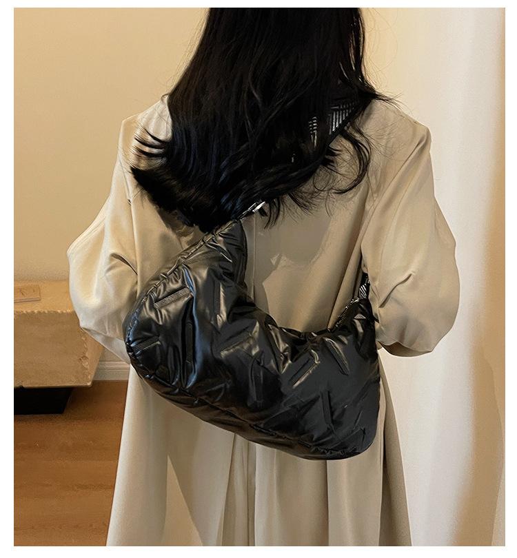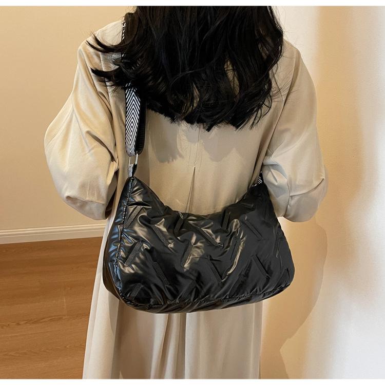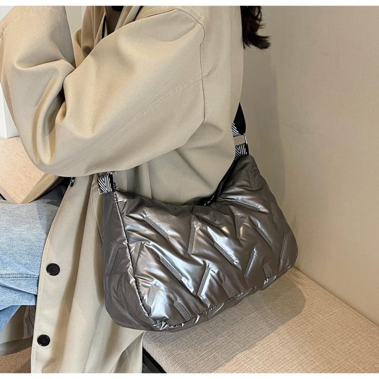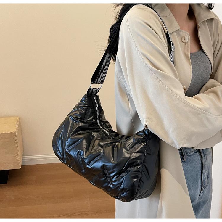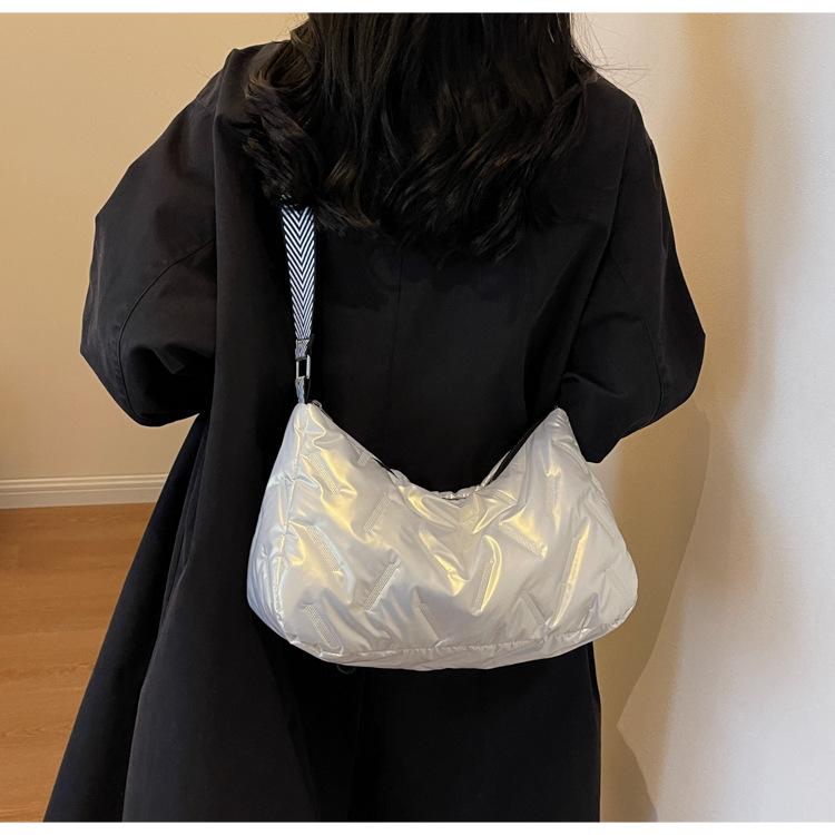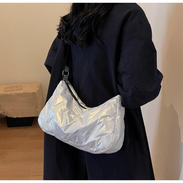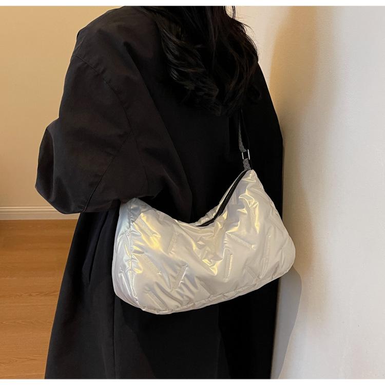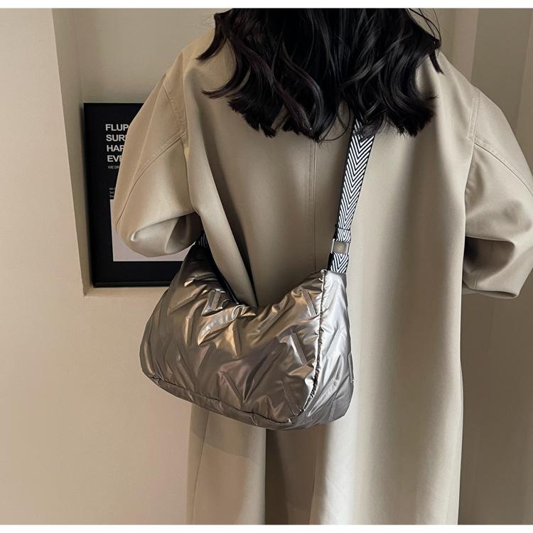 Chaqueta brillante acolchada de algodón para otoño e invierno, bolso grande, para mujer, 2023 nuevo, ligero, bolso de hombro, popular en redes, moda, plumón de algodón, bolso de axila