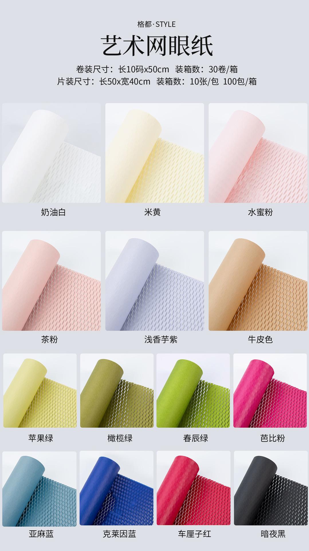Papel de regalo para ramos, venta al por mayor, nuevo papel artístico de malla de panal, material de embalaje, papel de regalo para flores, papel de regalo