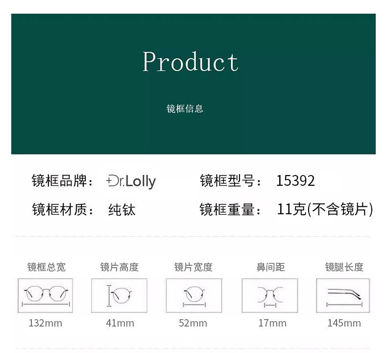 Gafas DR.LOLLY ultraligeras de titanio puro con montura completa para miopía, antiluz azul, gafas Danyang para mujer con detección avanzada