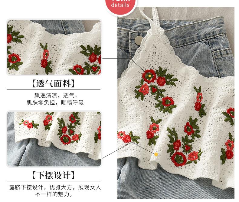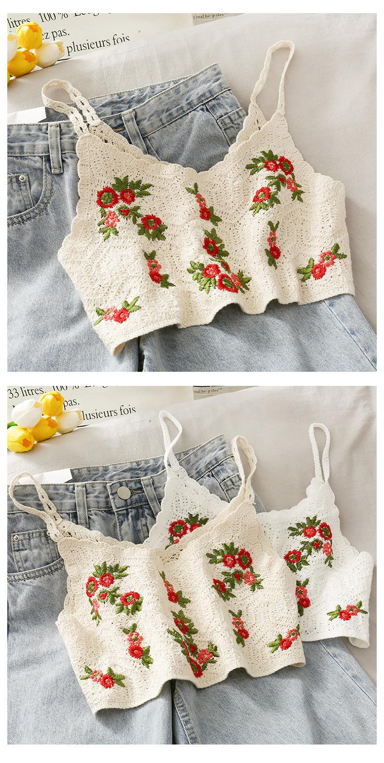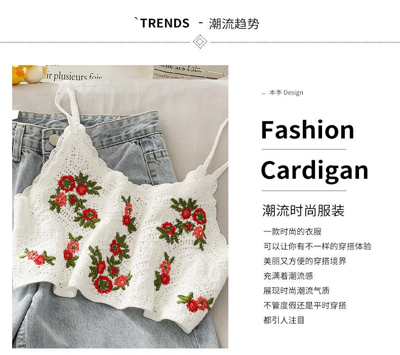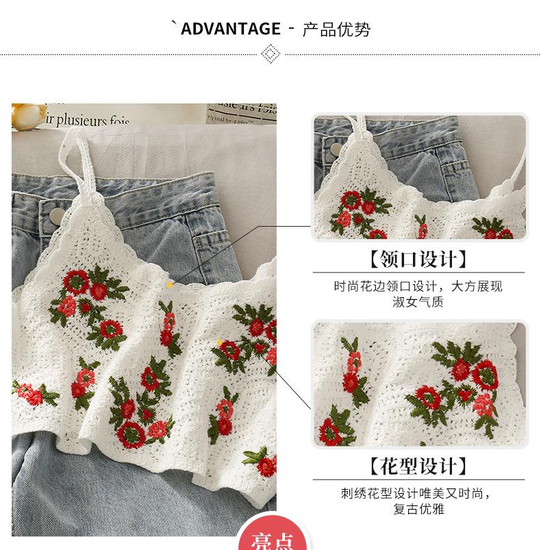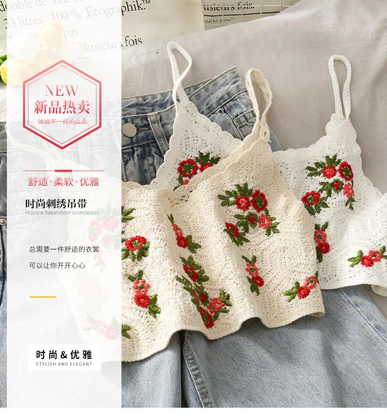 Camisola Vintage de Crochet Bordada 2022 Nueva Slim Estudiante Tirante Pequeño Exterior Tirante para Vacaciones