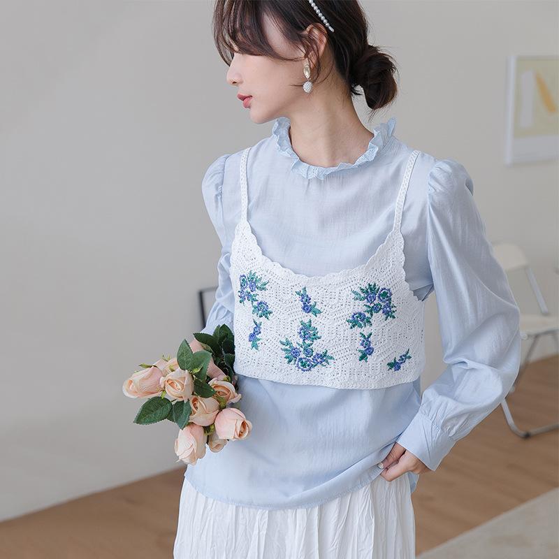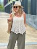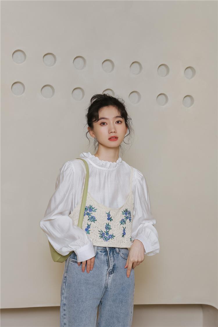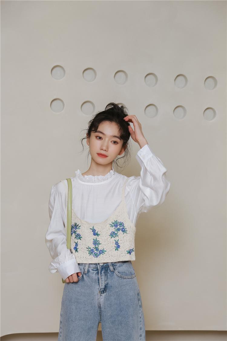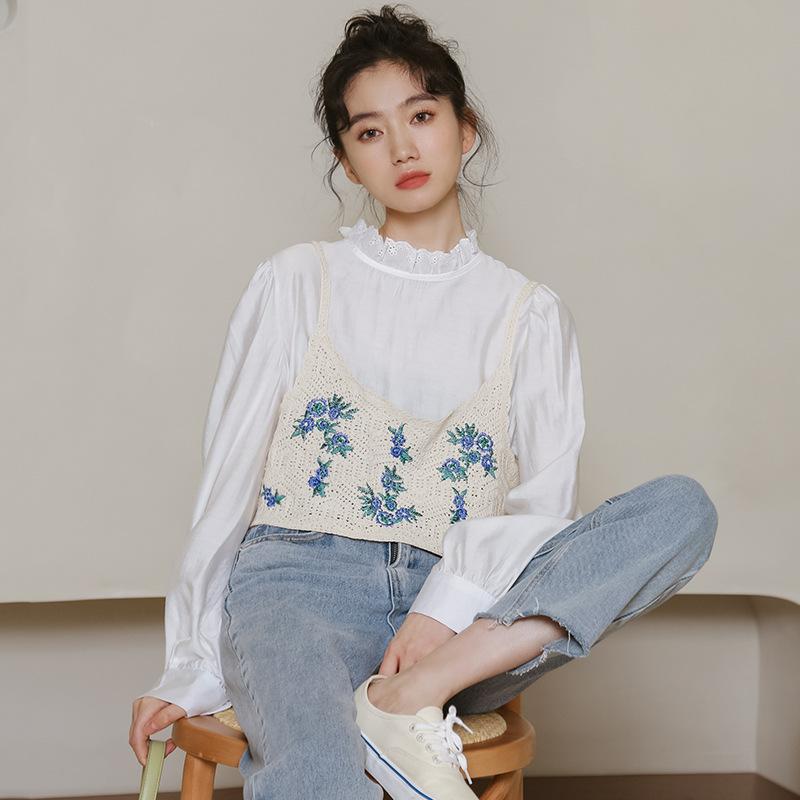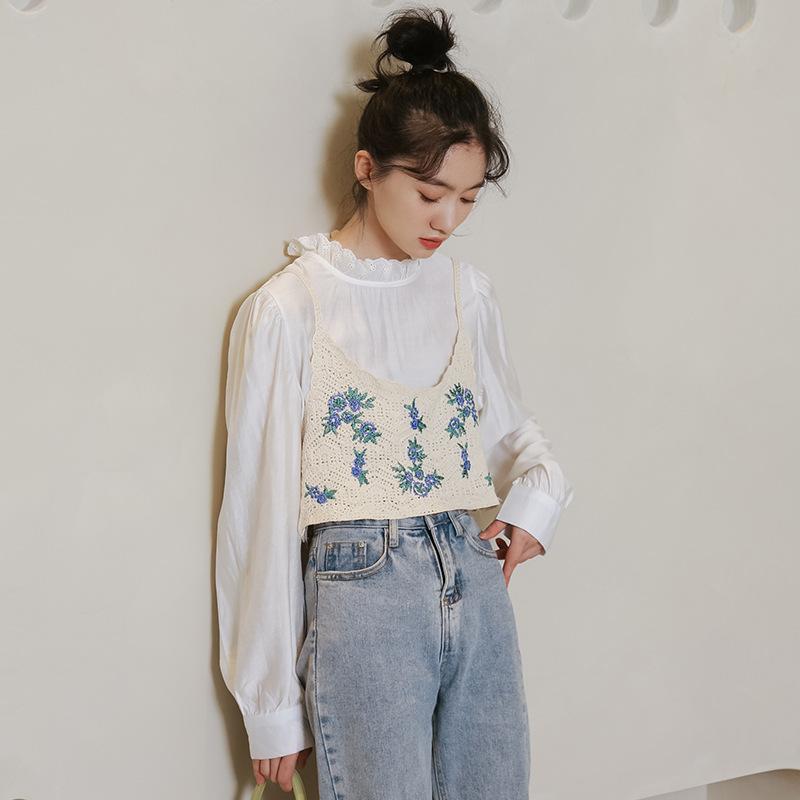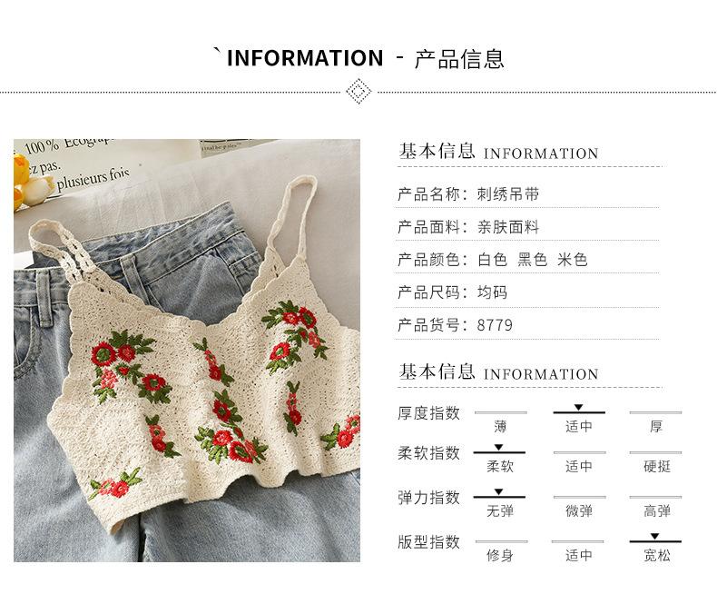 Camisola Vintage de Crochet Bordada 2022 Nueva Slim Estudiante Tirante Pequeño Exterior Tirante para Vacaciones