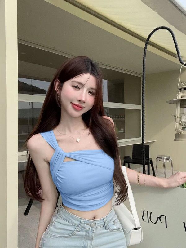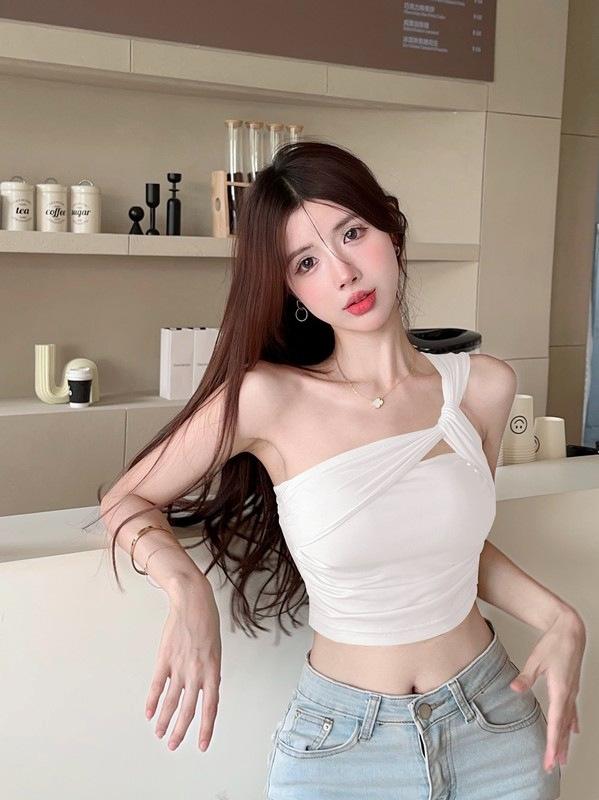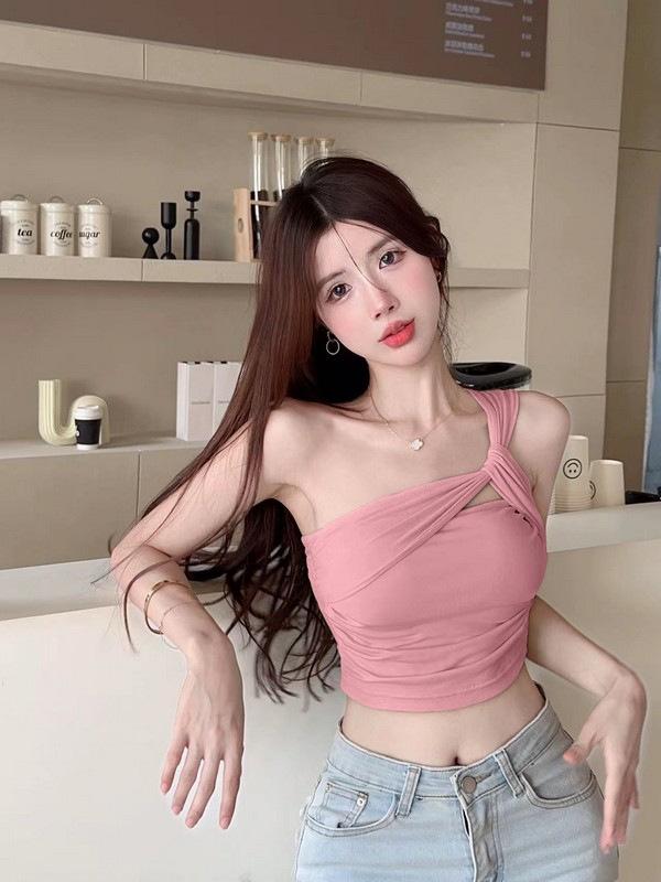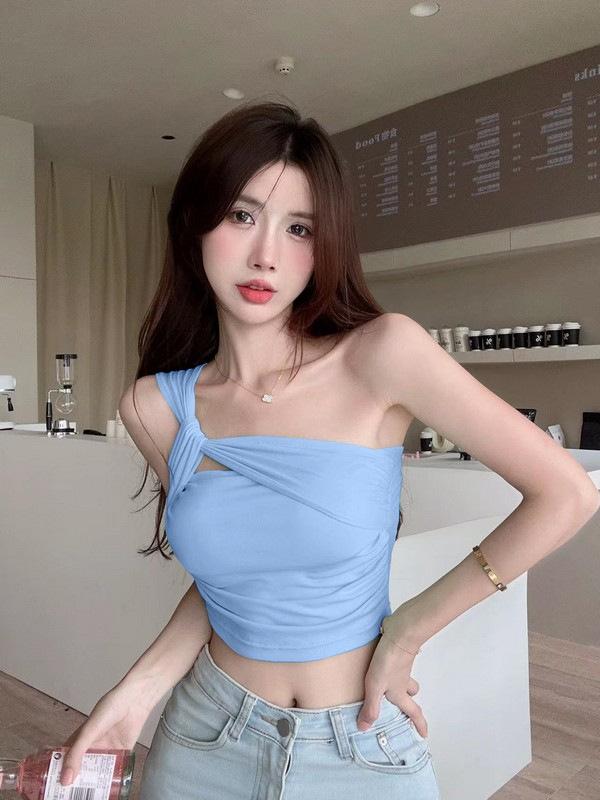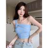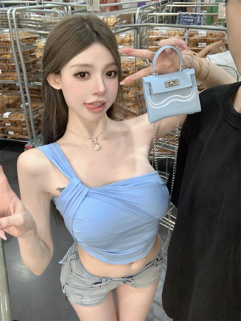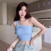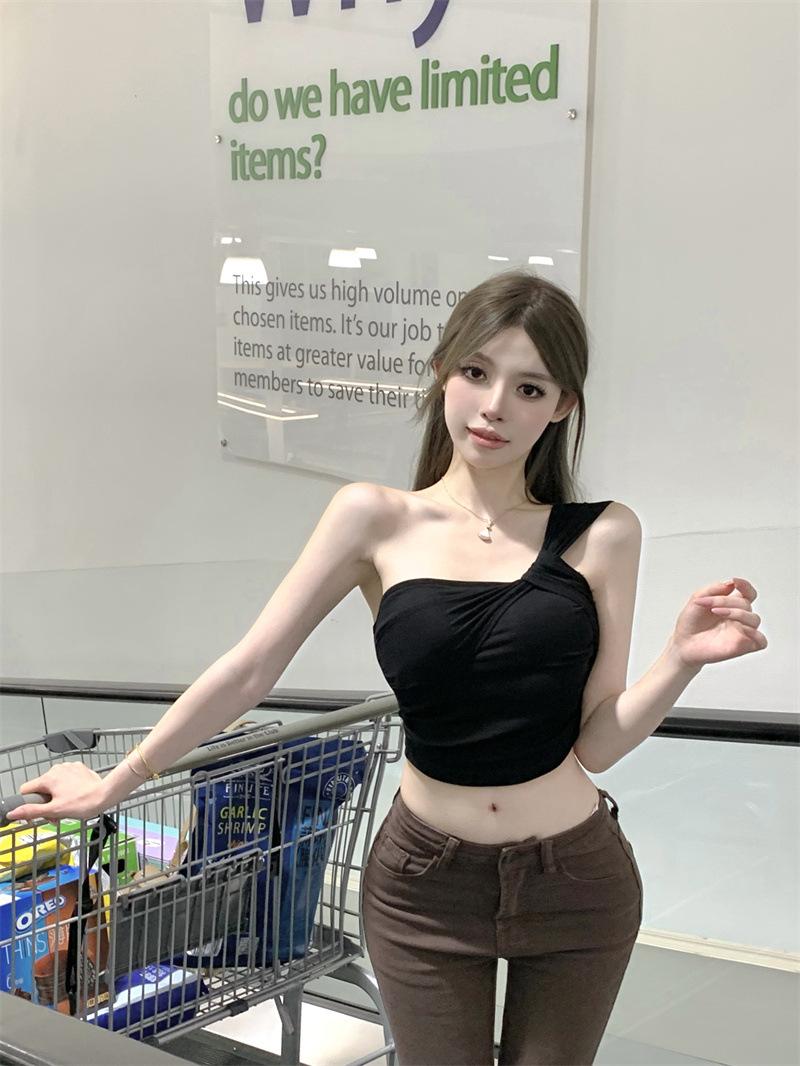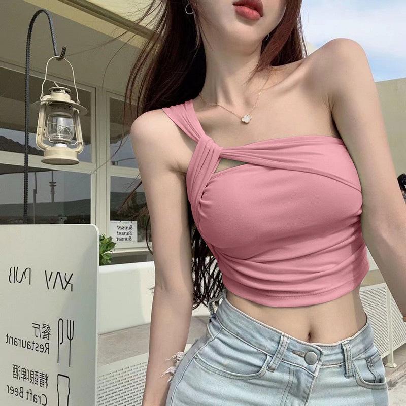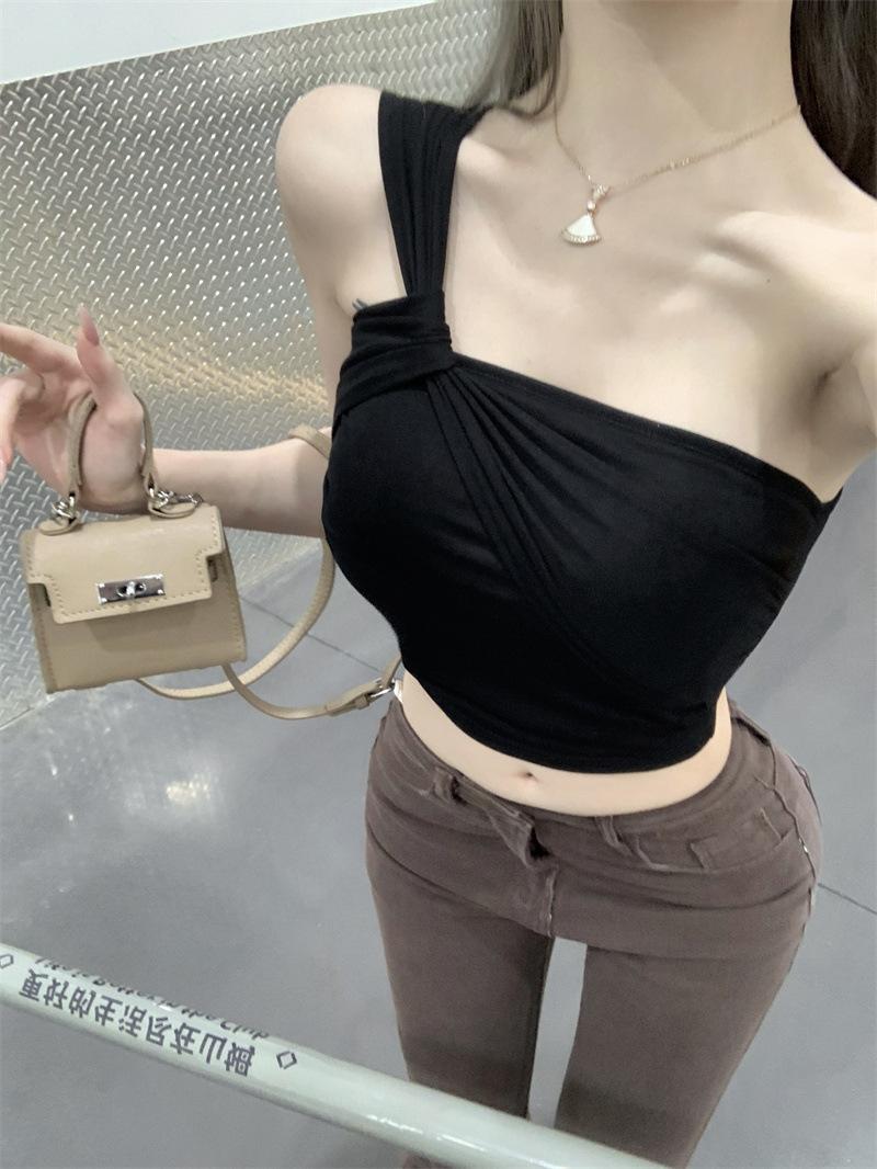 Camisola de un solo hombro Sweet Spice Girl, chaleco pequeño para mujer, estilo Pure Desire de verano, plisado, con clavícula, sexy, para uso interior, top corto