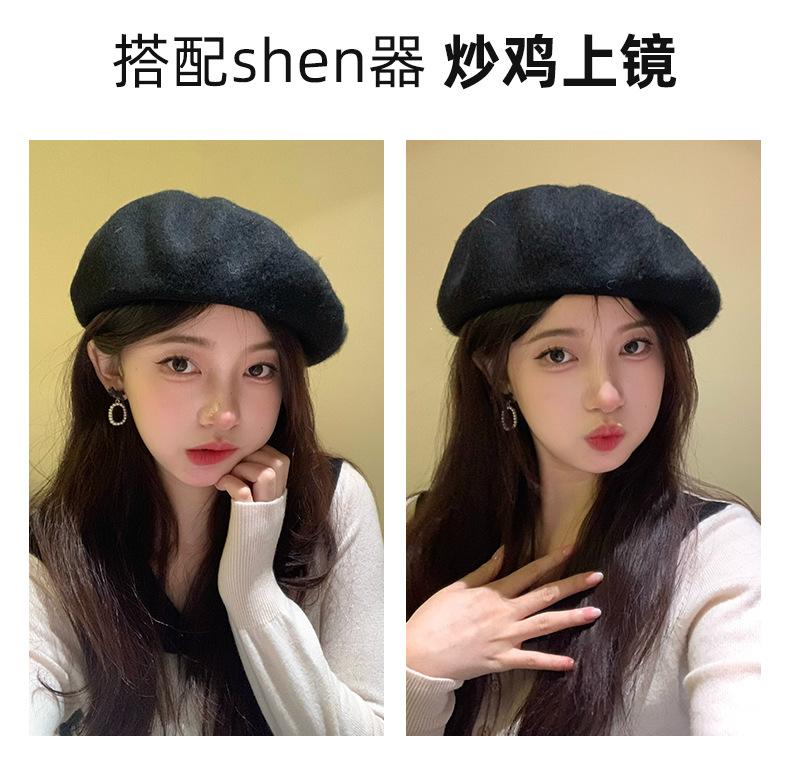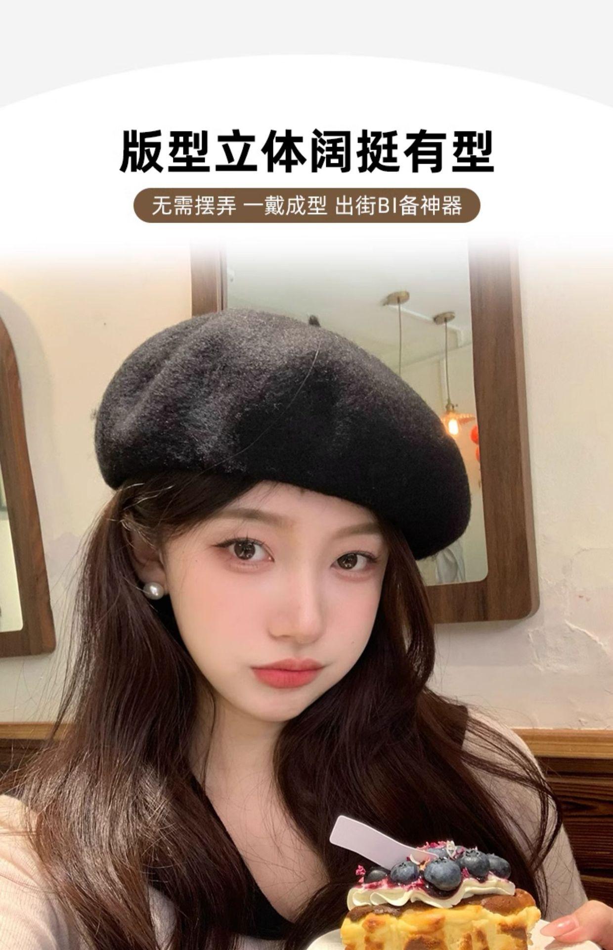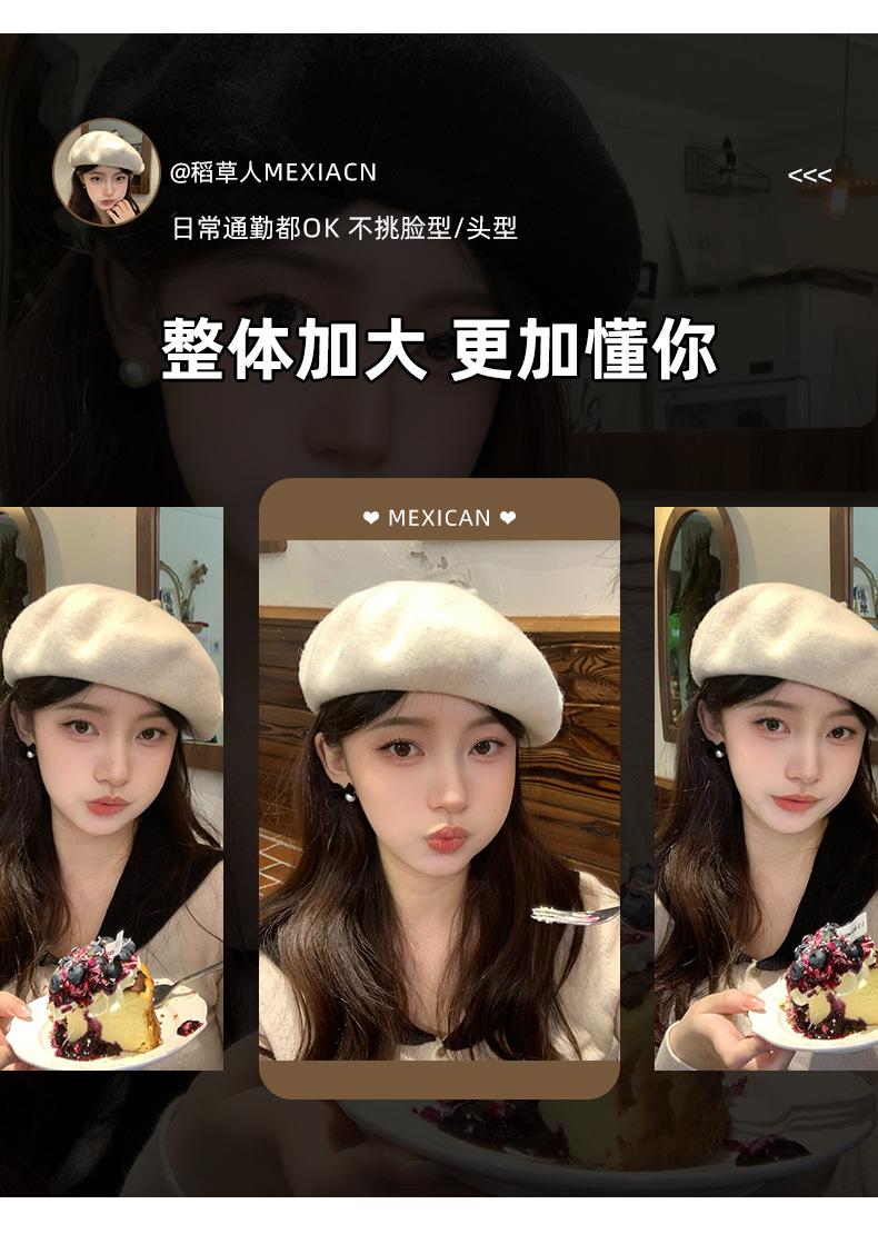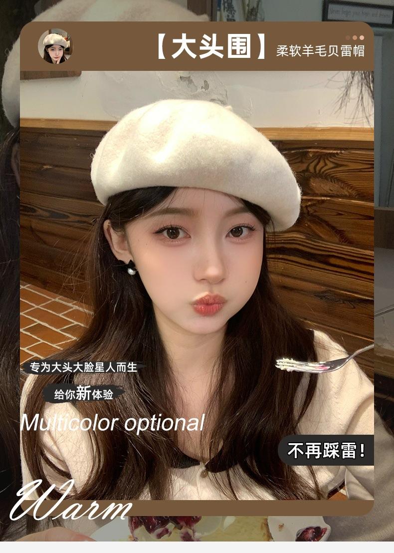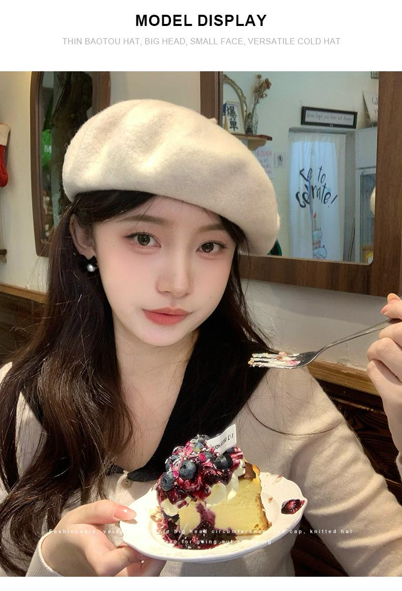 Boina de Lana para Mujer 2025 Nuevo Otoño e Invierno Circunferencia de Cabeza Grande Hace que la Cara se Vea Más Pequeña Sombrero Boina Sombrero de Pintor de Otoño Sensación de Alta Gama