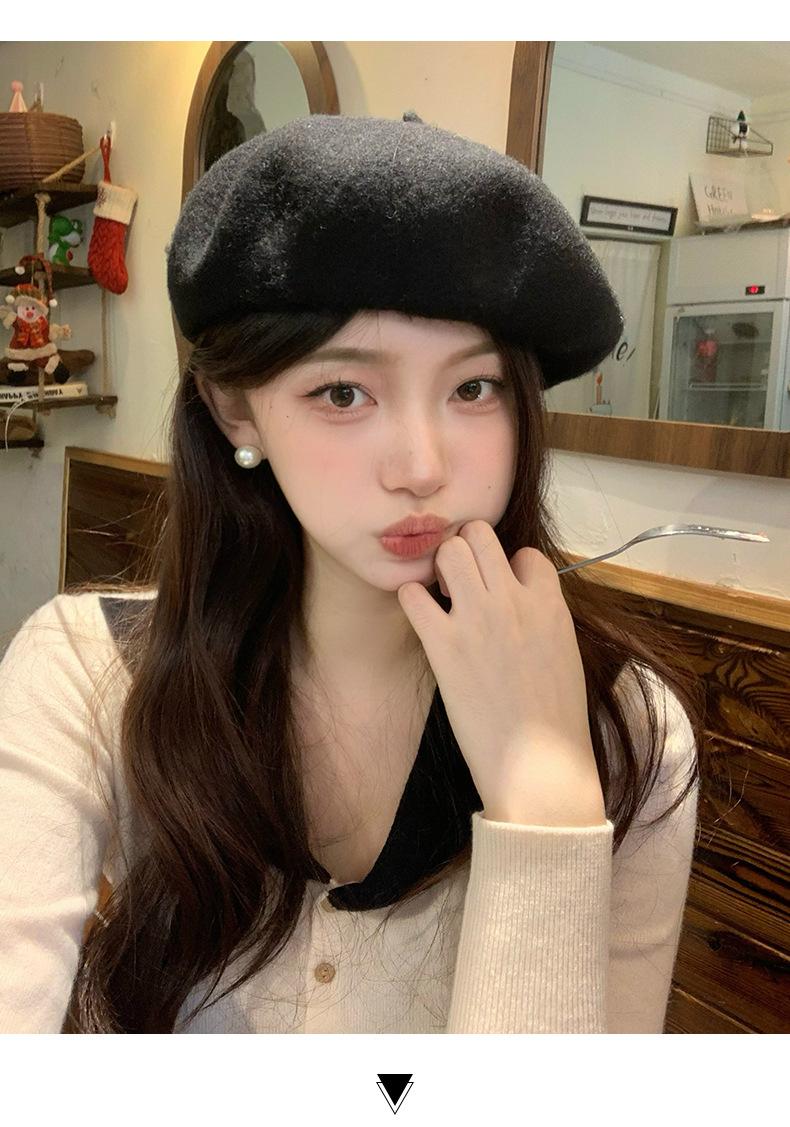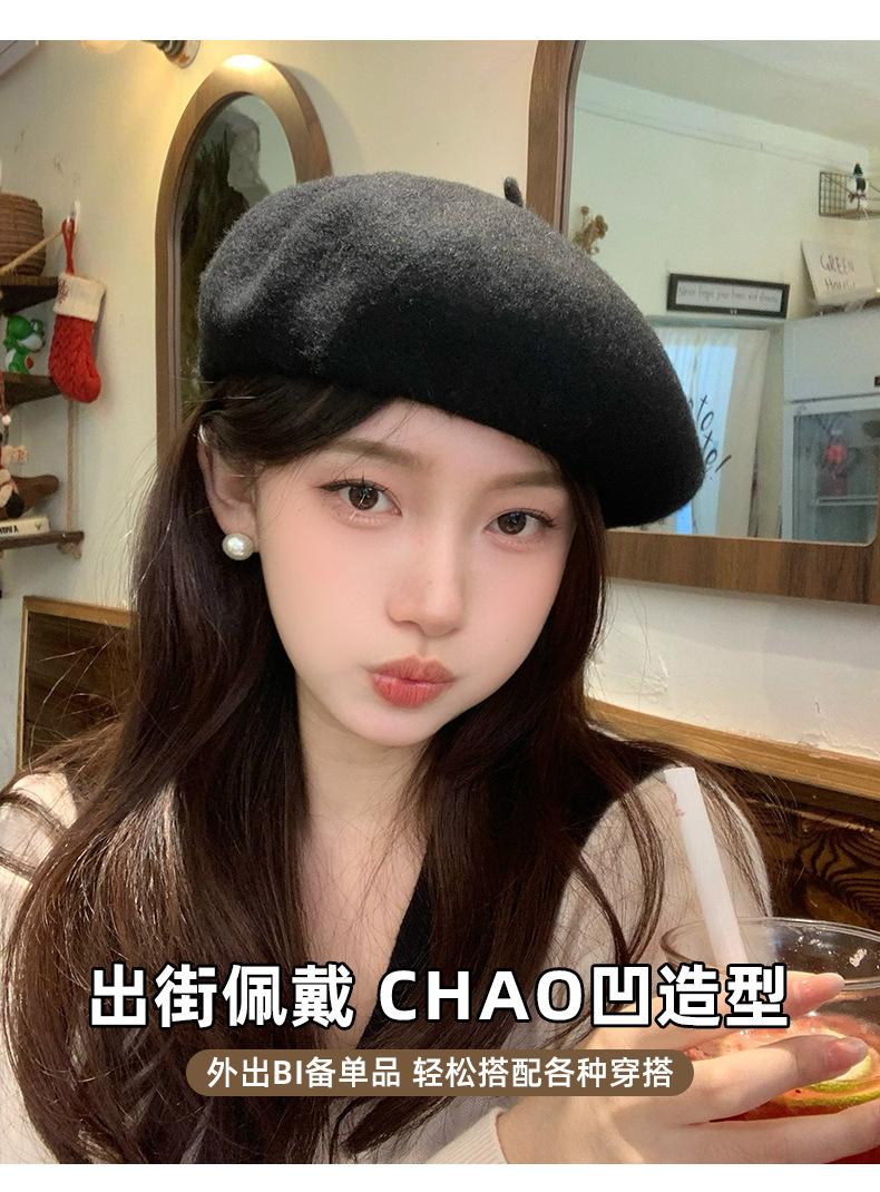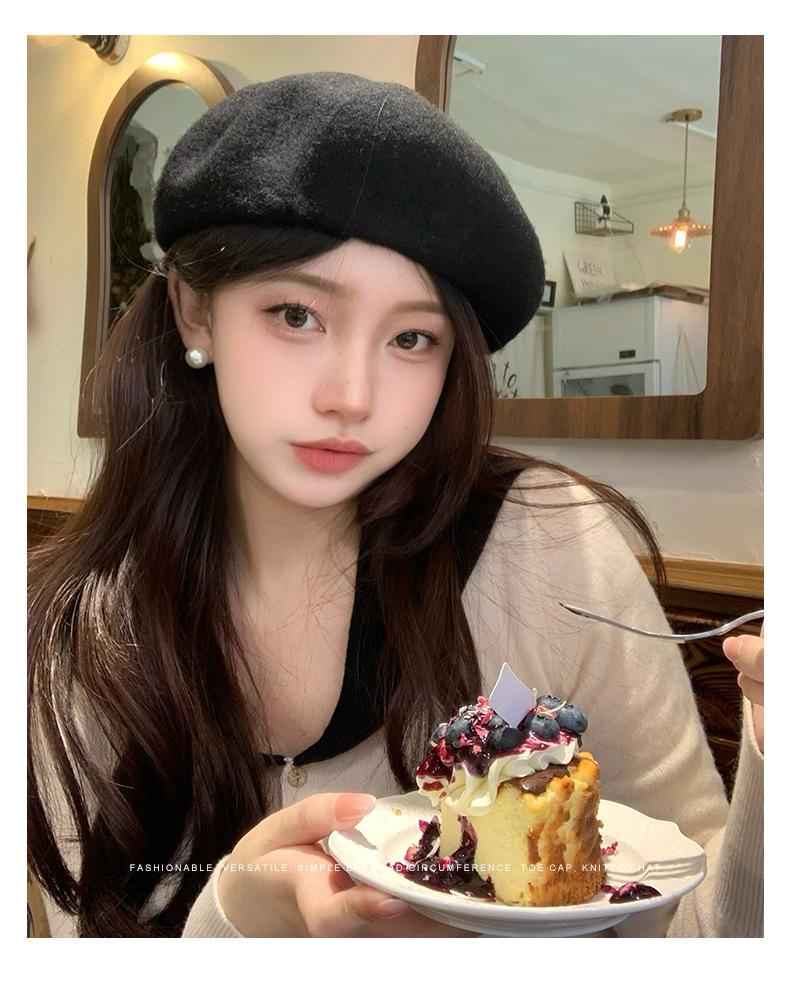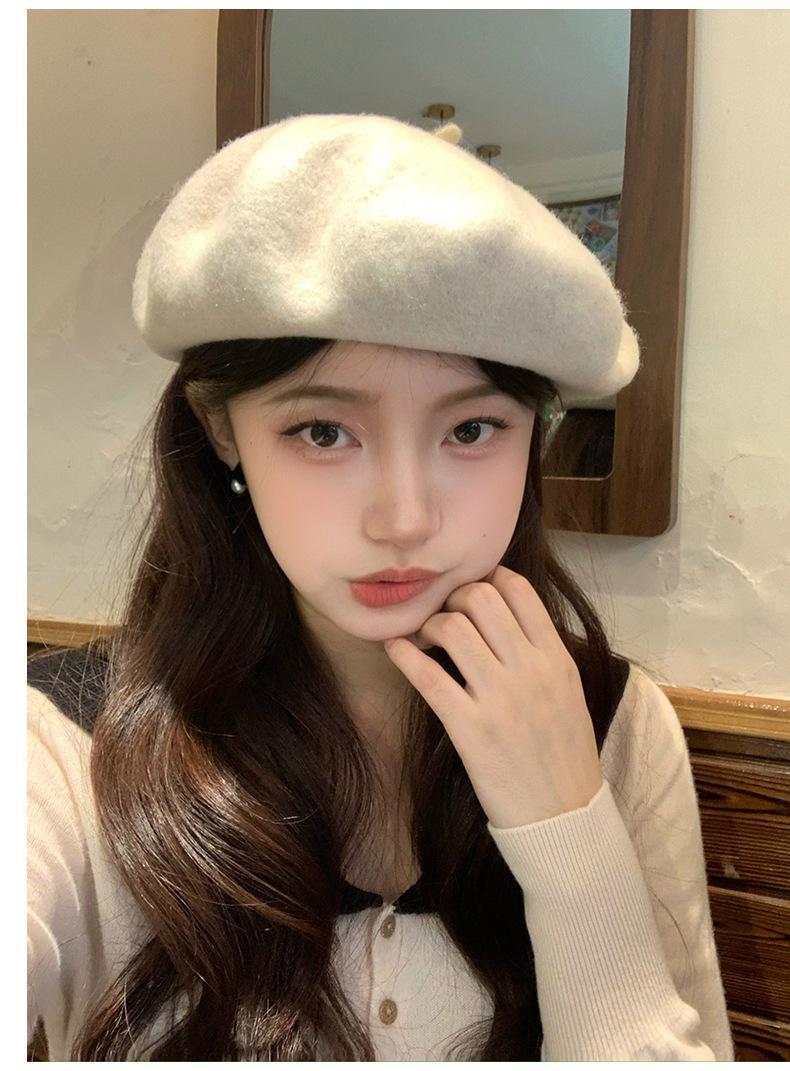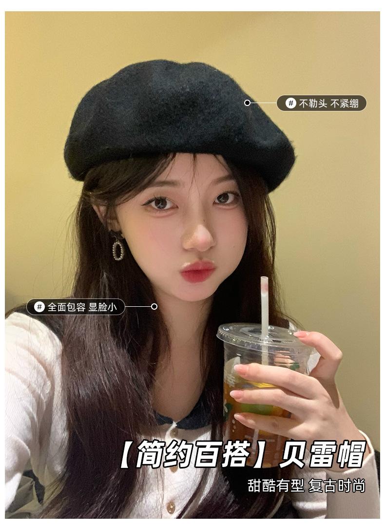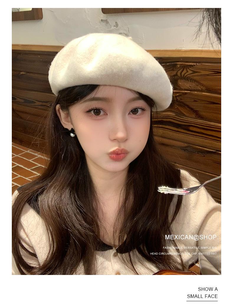 Boina de Lana para Mujer 2025 Nuevo Otoño e Invierno Circunferencia de Cabeza Grande Hace que la Cara se Vea Más Pequeña Sombrero Boina Sombrero de Pintor de Otoño Sensación de Alta Gama