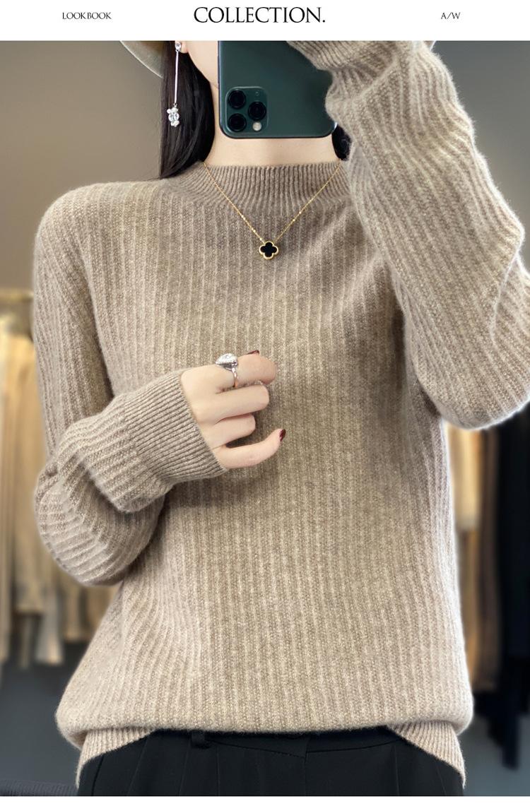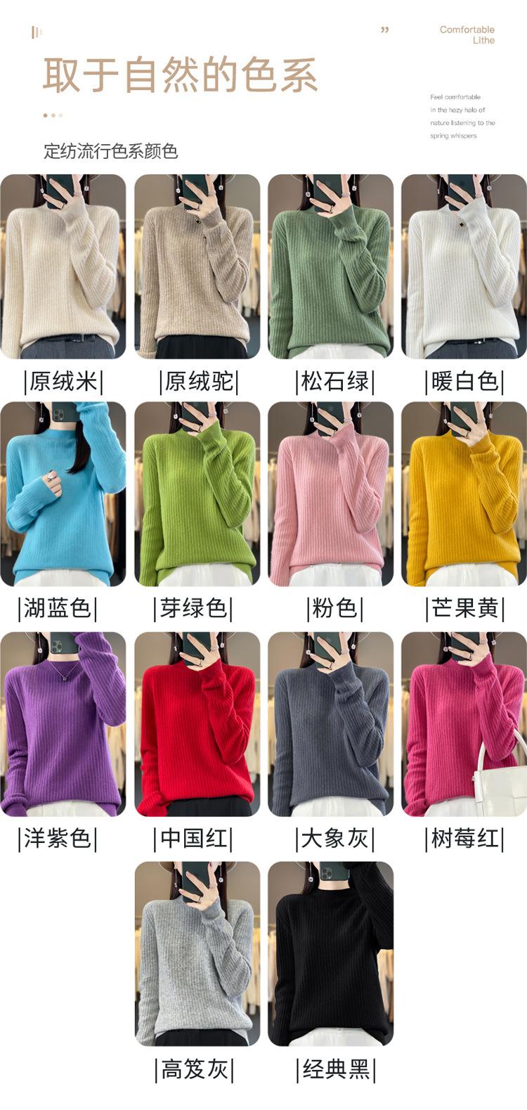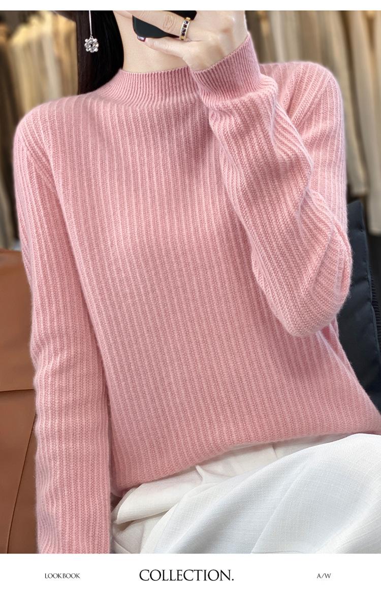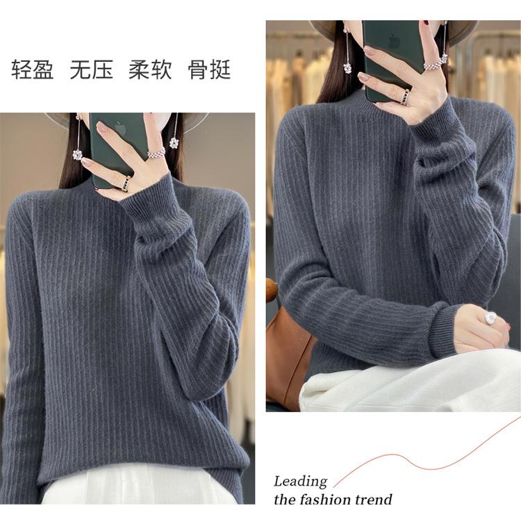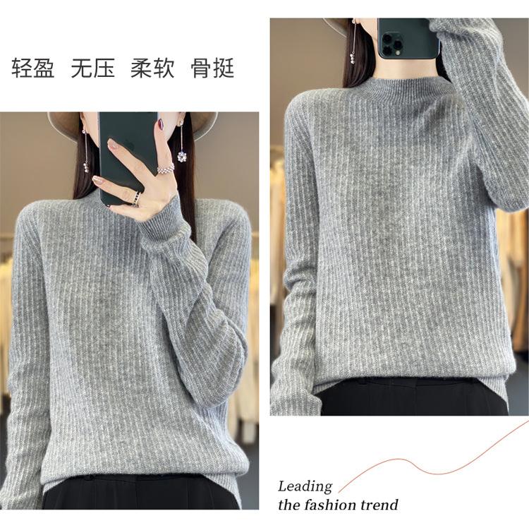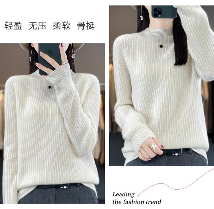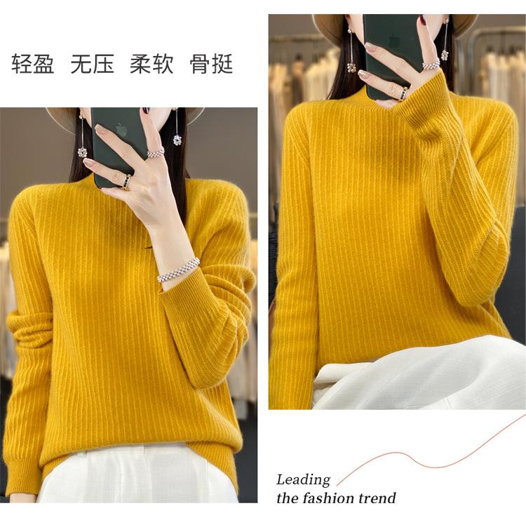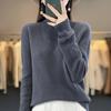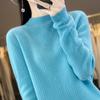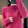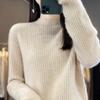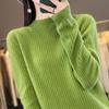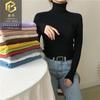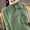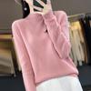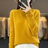 Camiseta de fondo de punto de lana 100% pura de alta calidad, suéter de cachemira de punto sin costuras de una línea, cuello alto medio, ropa interior, ropa de mujer