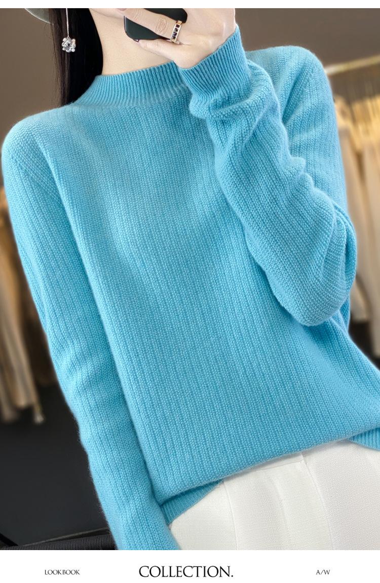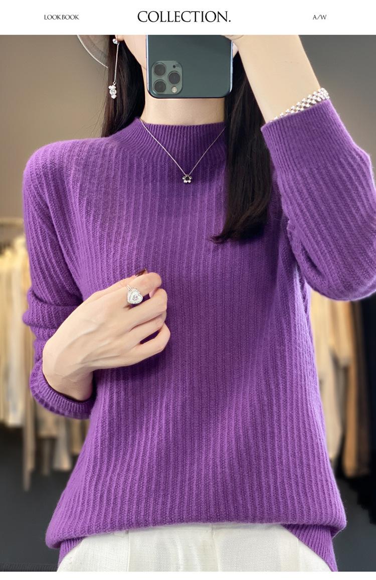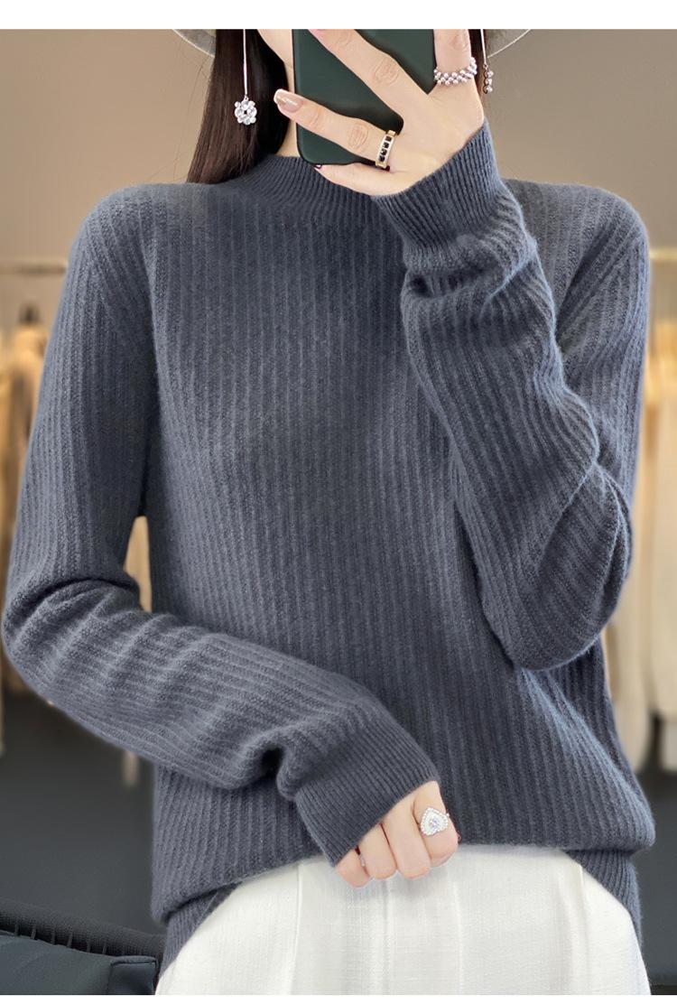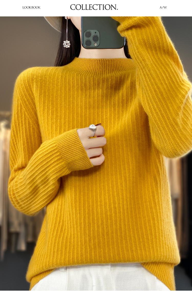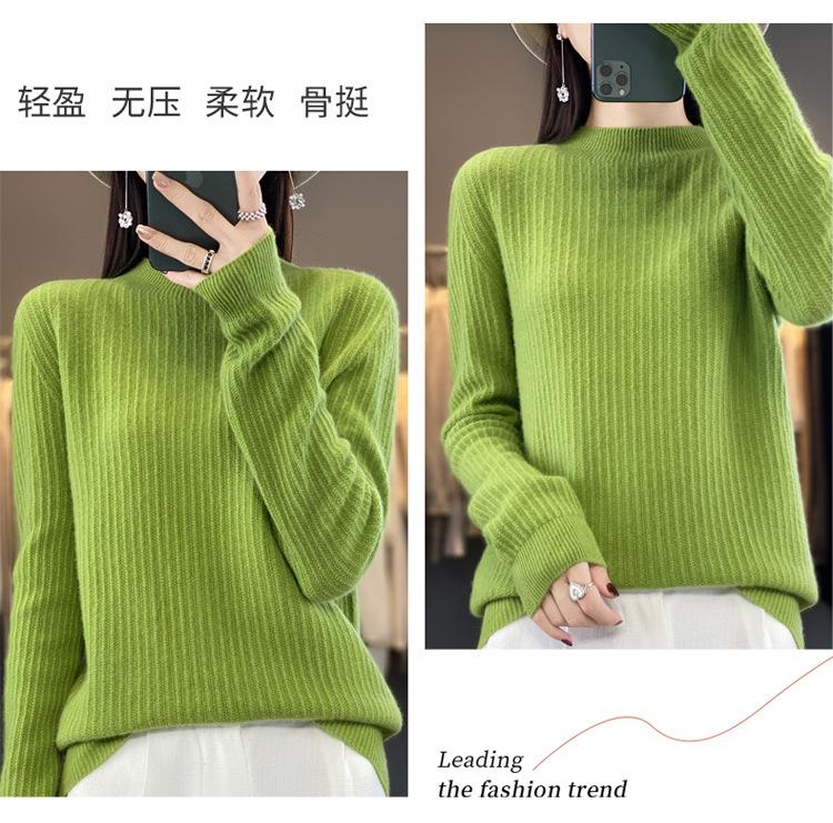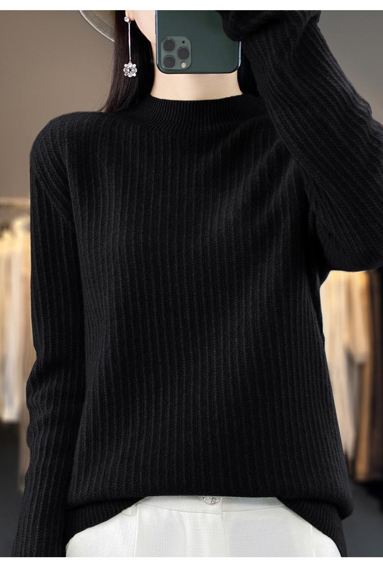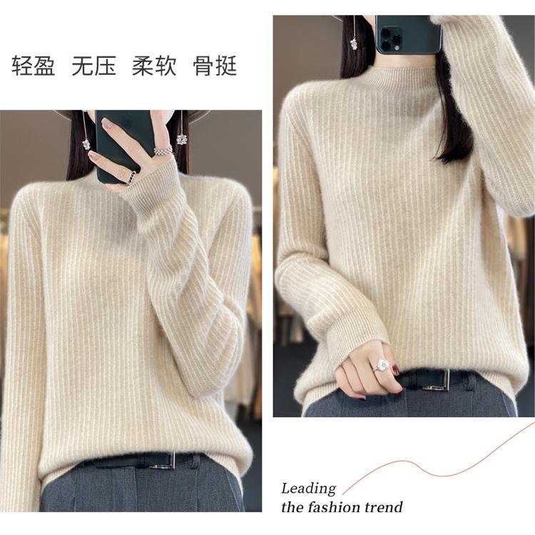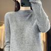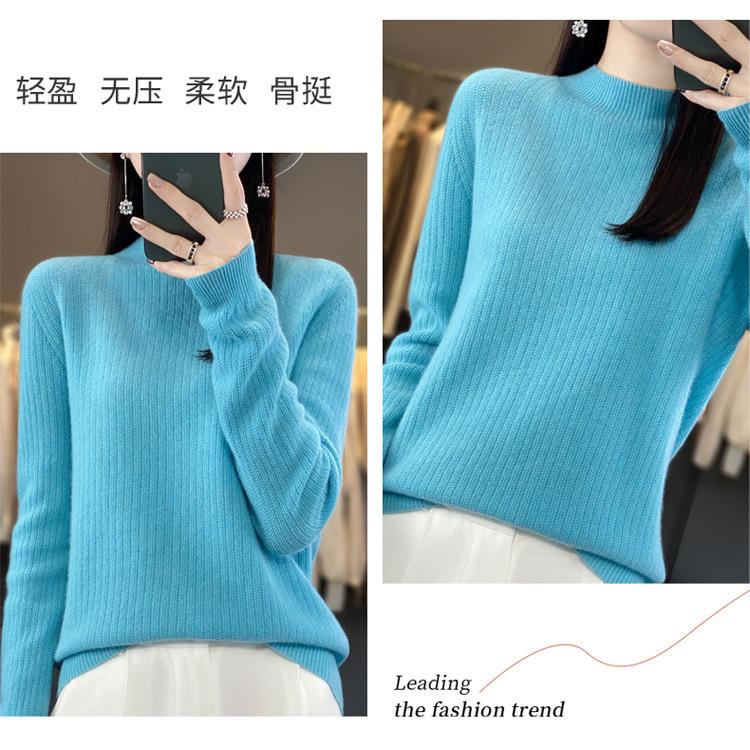 Camiseta de fondo de punto de lana 100% pura de alta calidad, suéter de cachemira de punto sin costuras de una línea, cuello alto medio, ropa interior, ropa de mujer