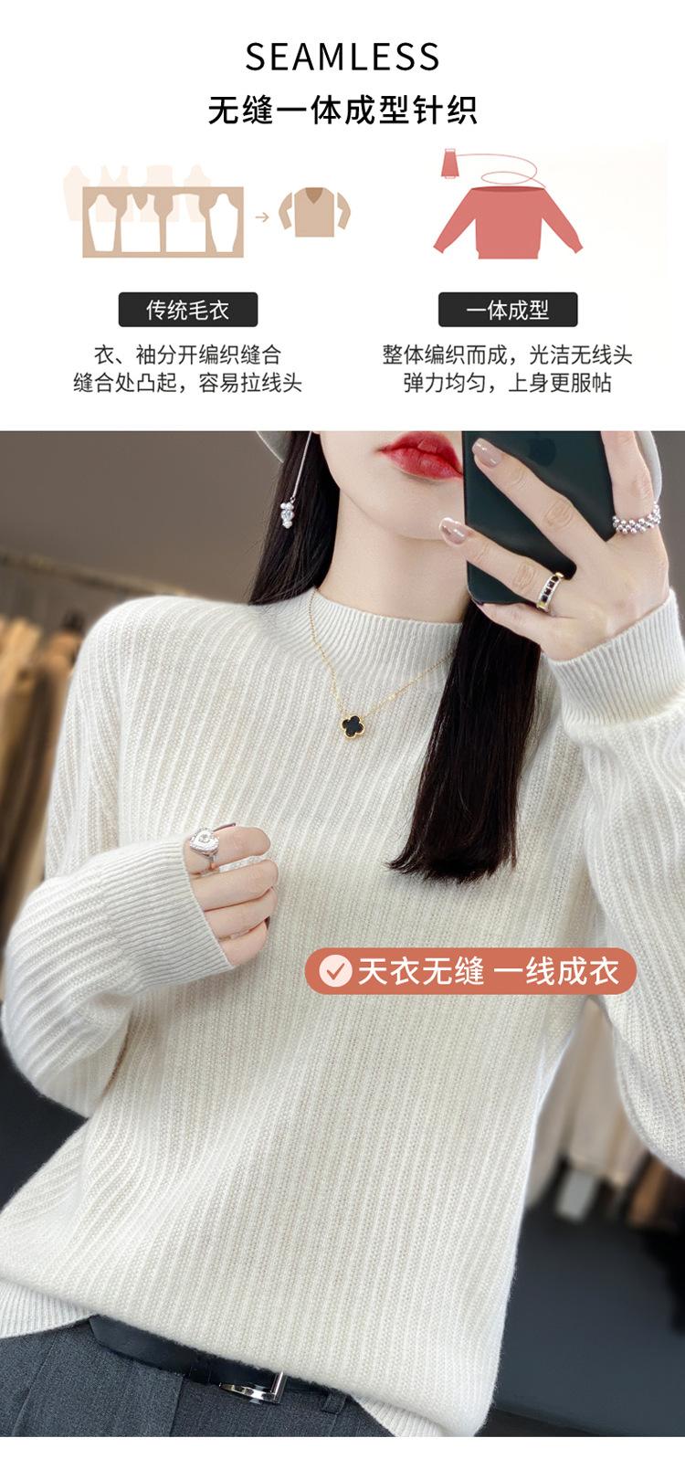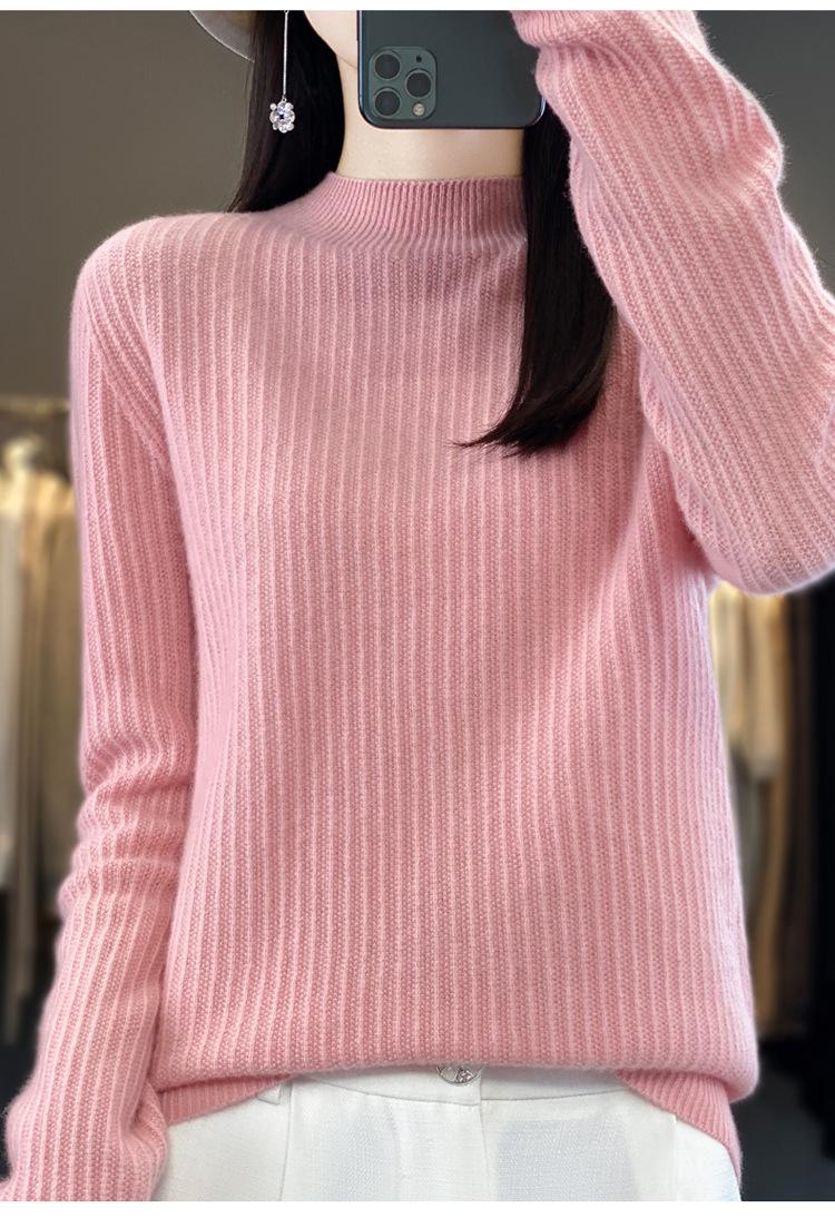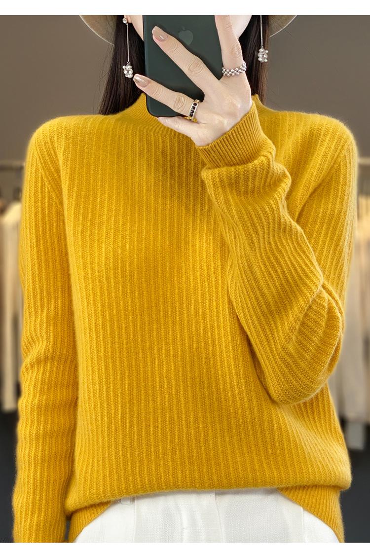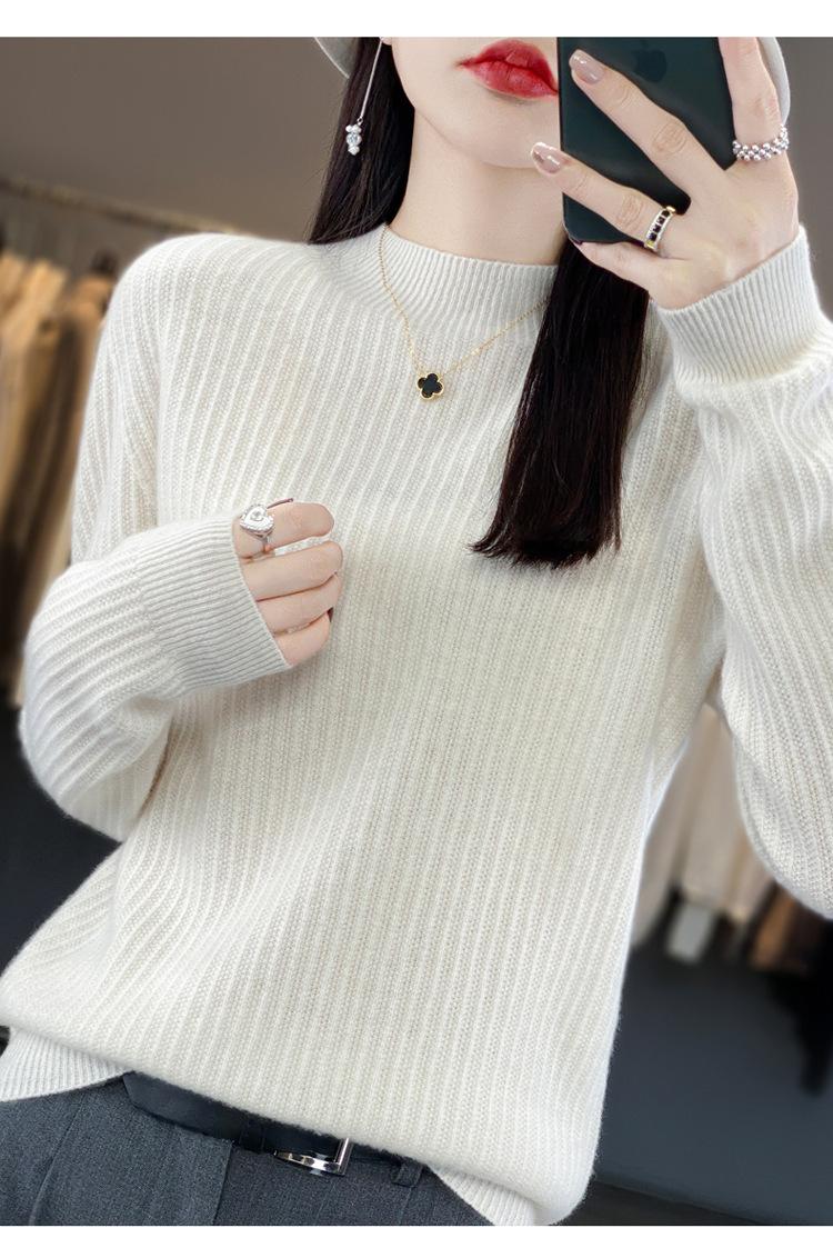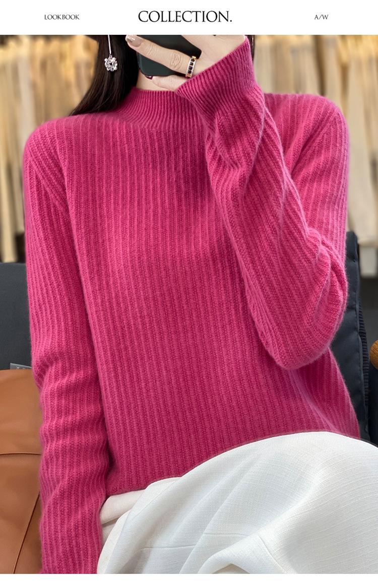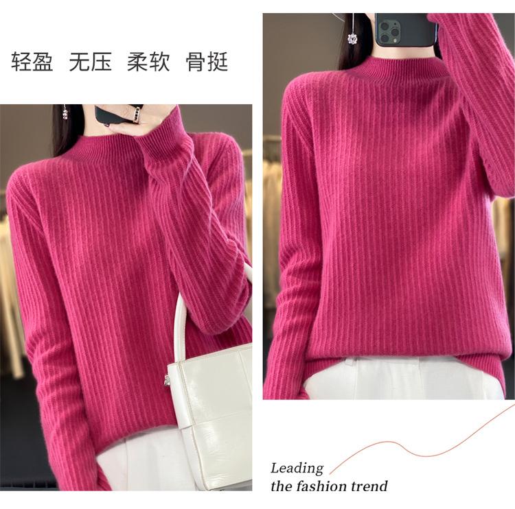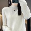 Camiseta de fondo de punto de lana 100% pura de alta calidad, suéter de cachemira de punto sin costuras de una línea, cuello alto medio, ropa interior, ropa de mujer