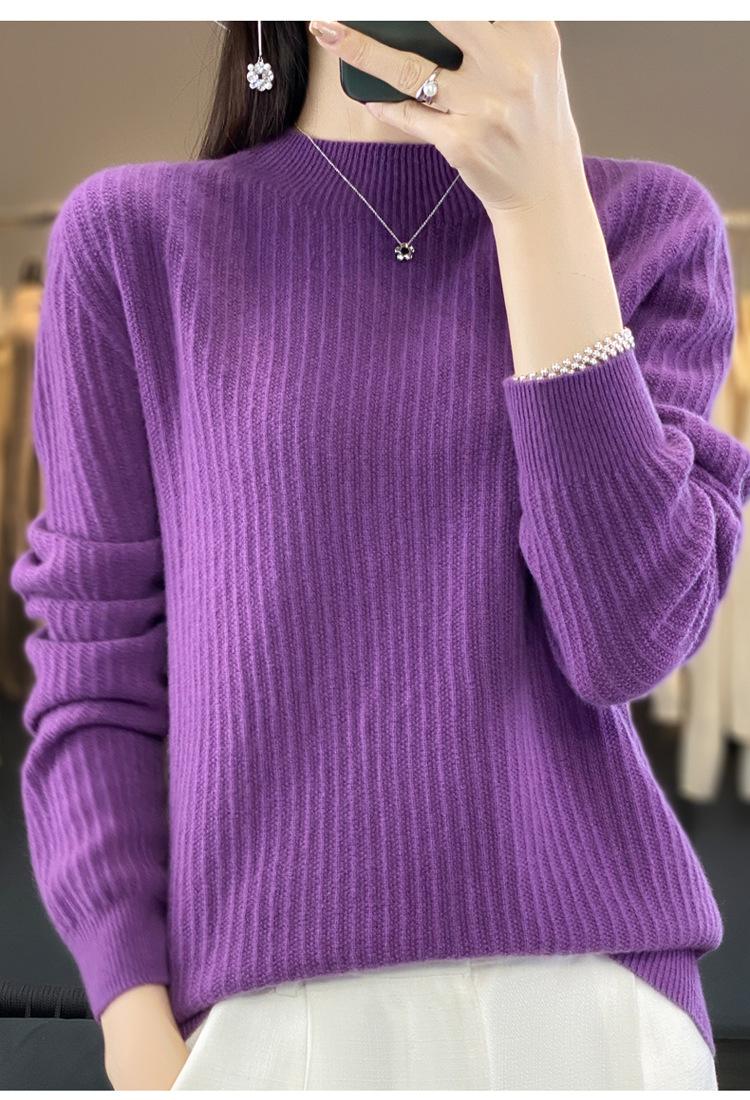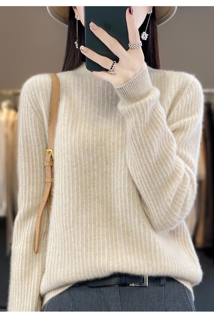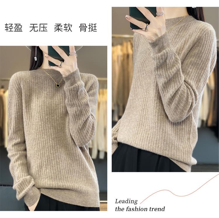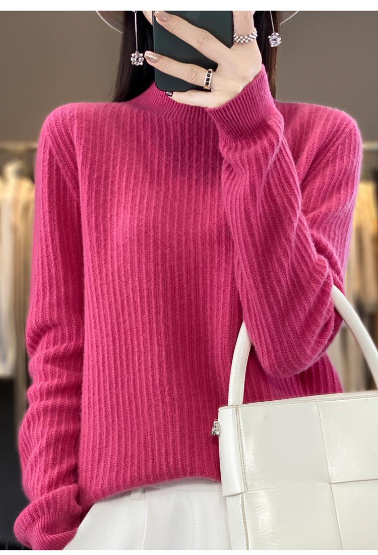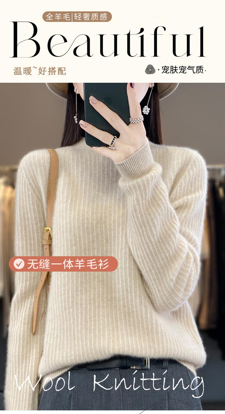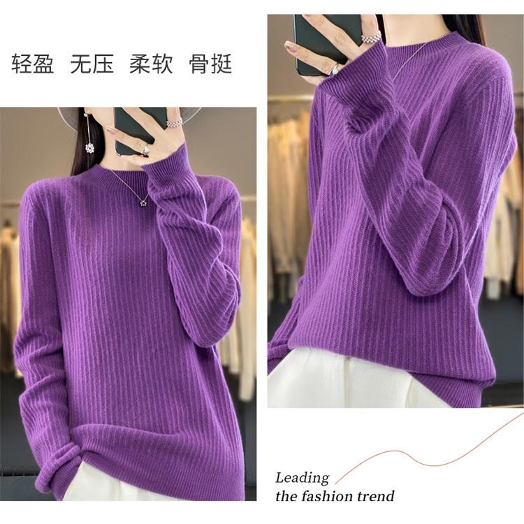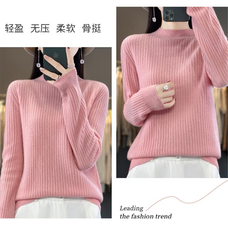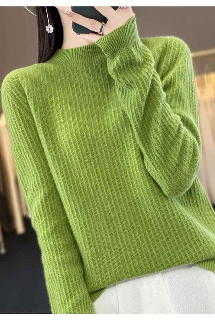 Camiseta de fondo de punto de lana 100% pura de alta calidad, suéter de cachemira de punto sin costuras de una línea, cuello alto medio, ropa interior, ropa de mujer