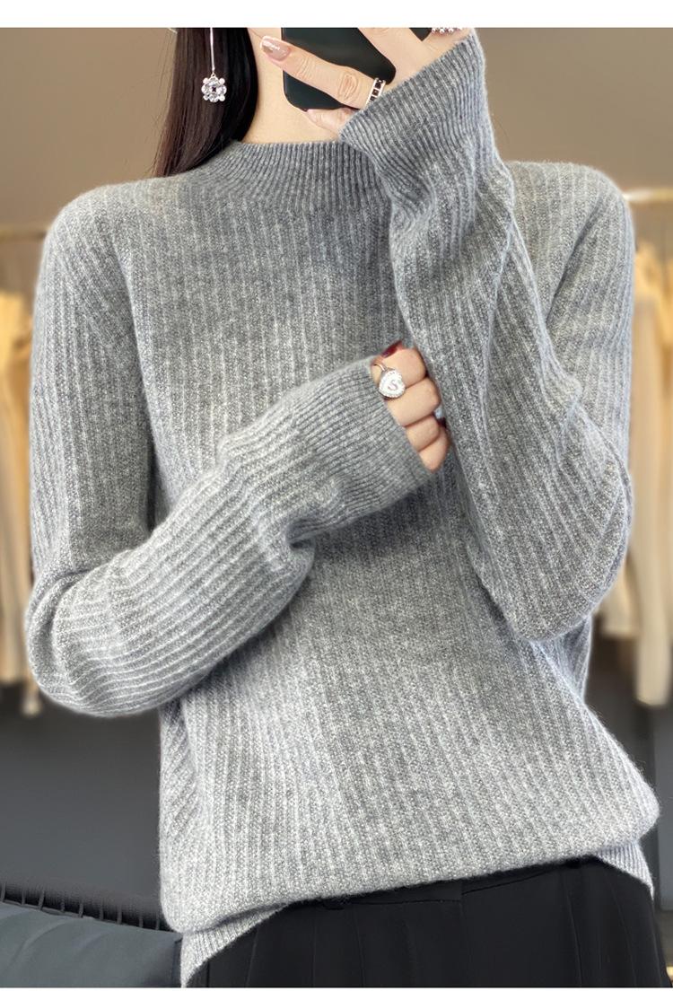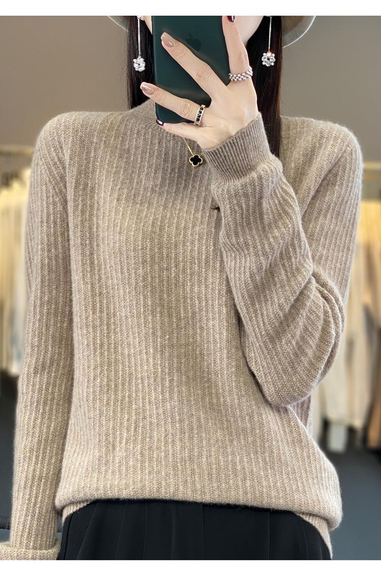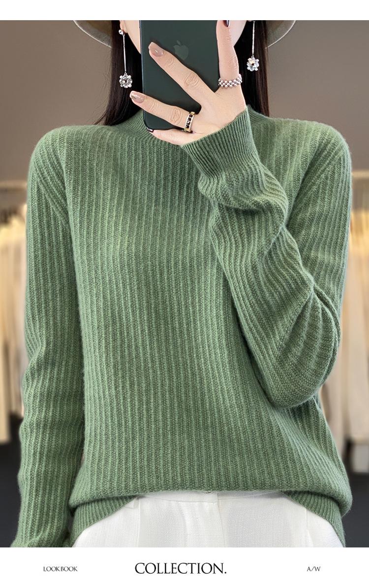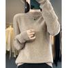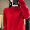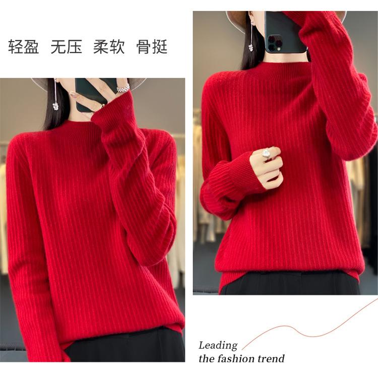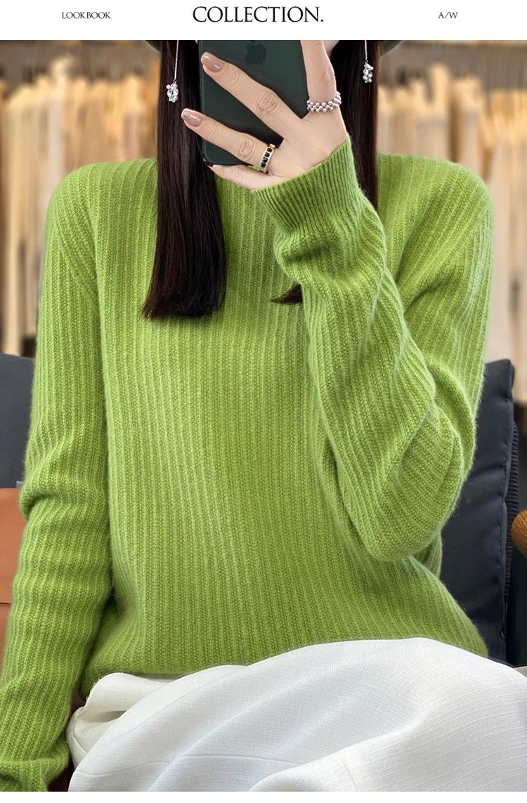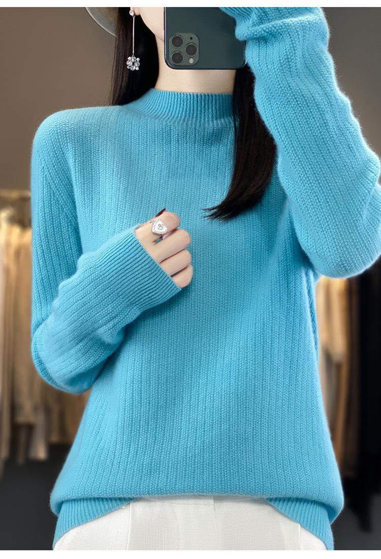 Camiseta de fondo de punto de lana 100% pura de alta calidad, suéter de cachemira de punto sin costuras de una línea, cuello alto medio, ropa interior, ropa de mujer
