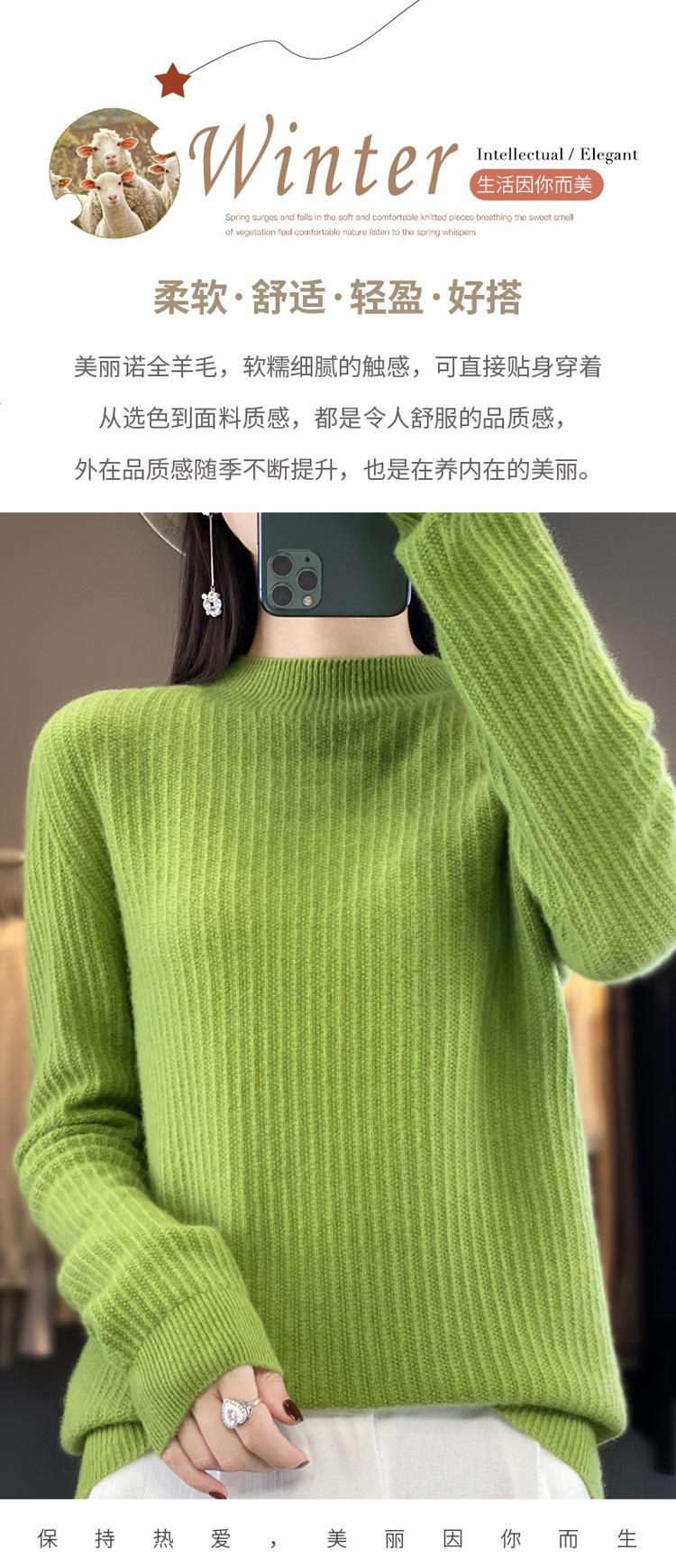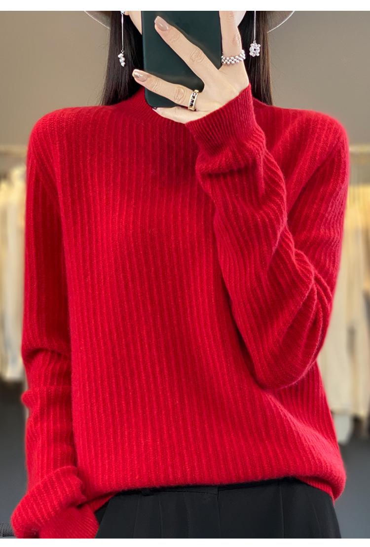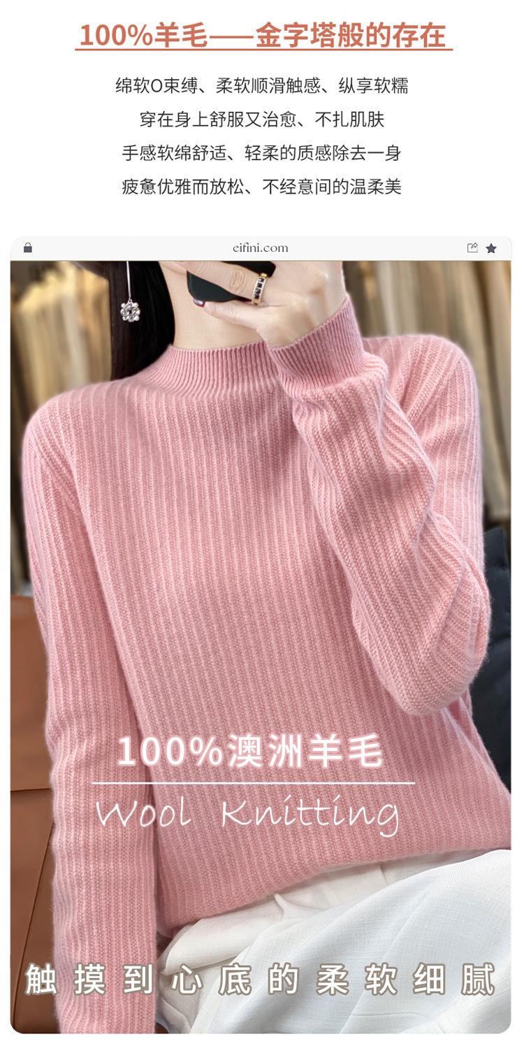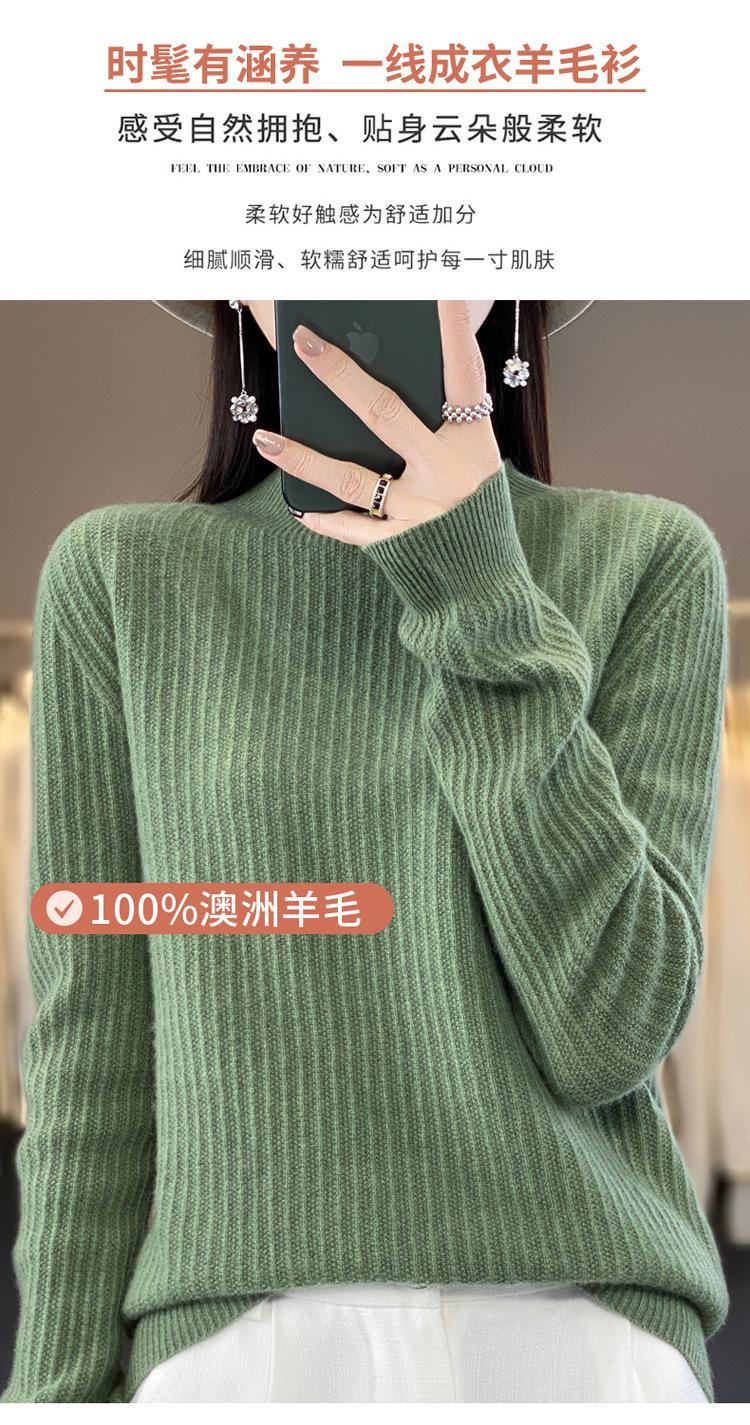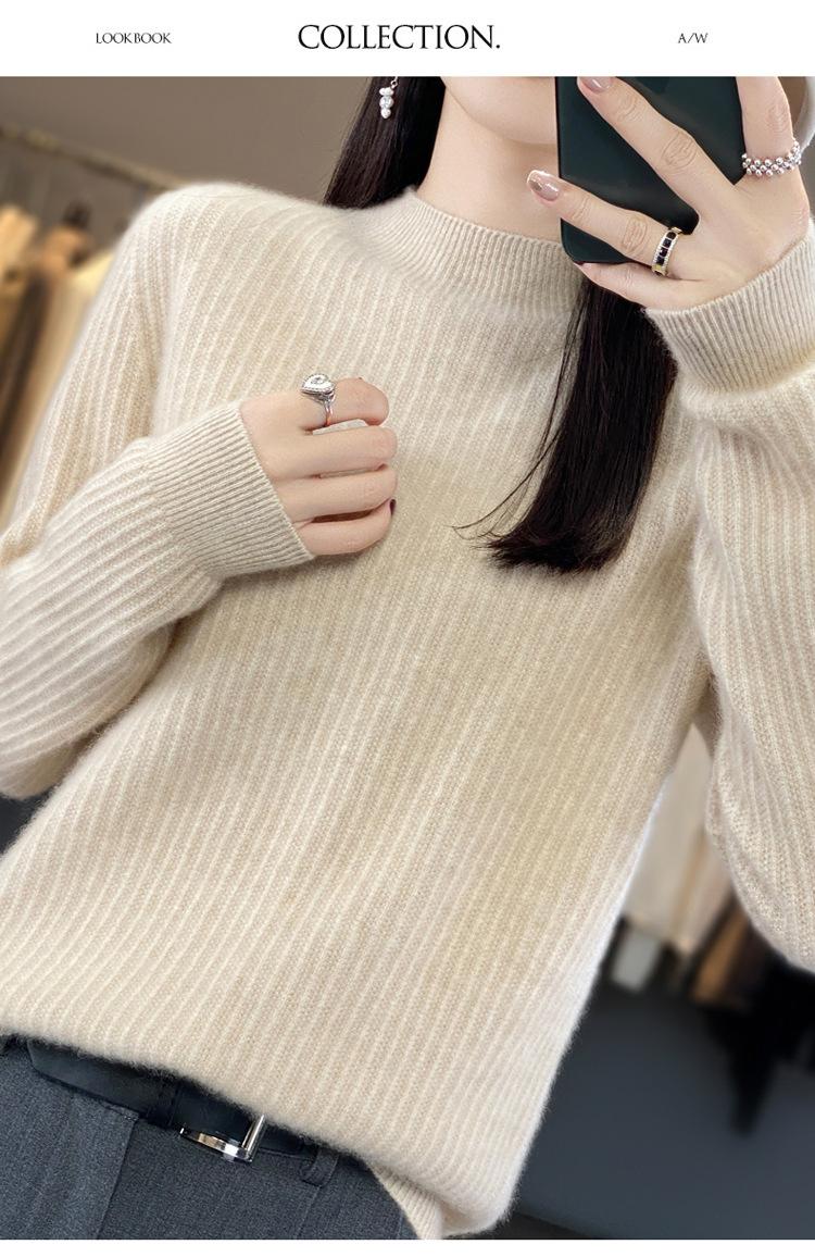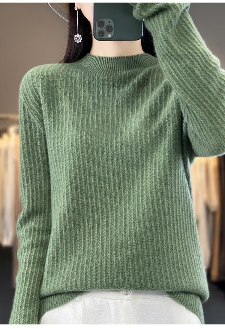 Camiseta de fondo de punto de lana 100% pura de alta calidad, suéter de cachemira de punto sin costuras de una línea, cuello alto medio, ropa interior, ropa de mujer