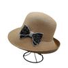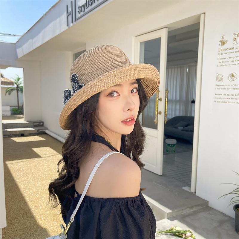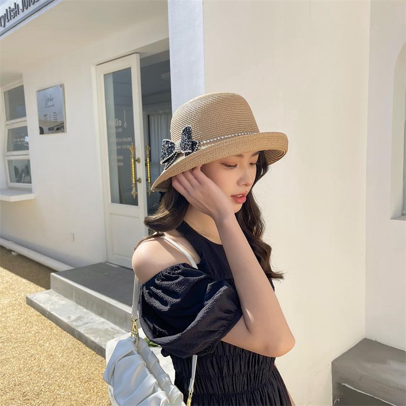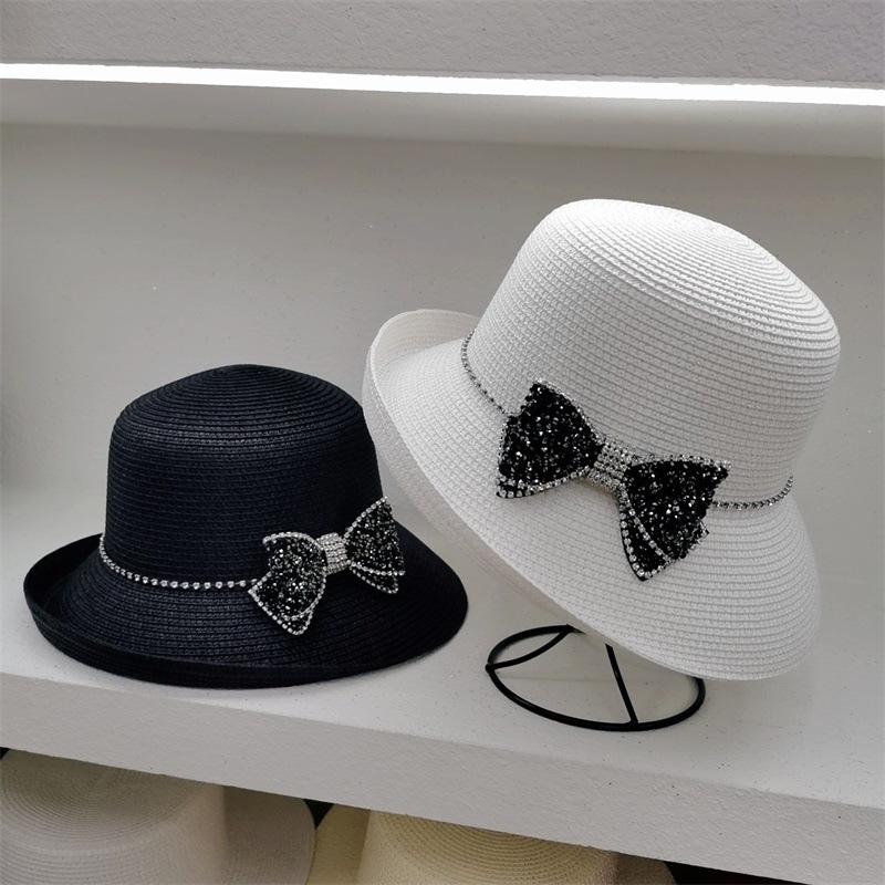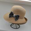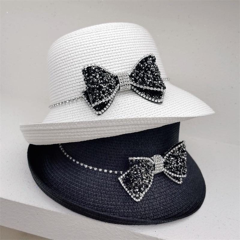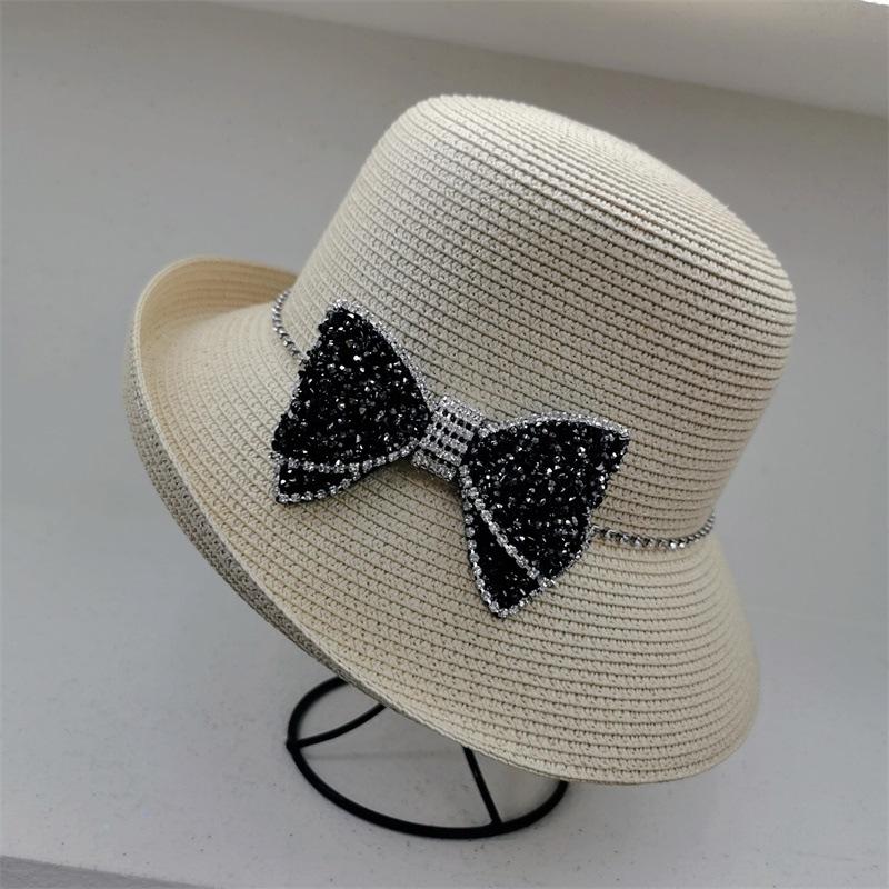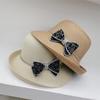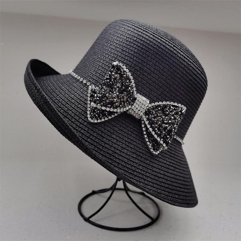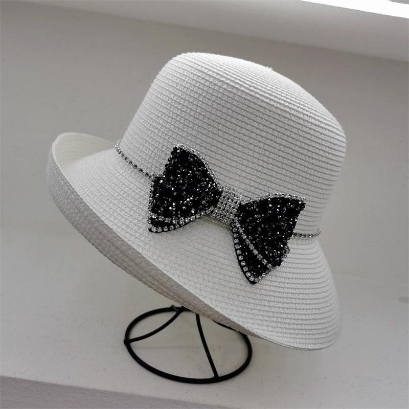 Sombrero de Paja con Ala Ancha Estilo Hepburn Francés con Lazo de Pedrería para Mujer, Sombrero de Playa Elegante y a la Moda