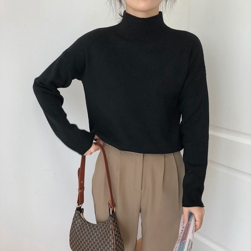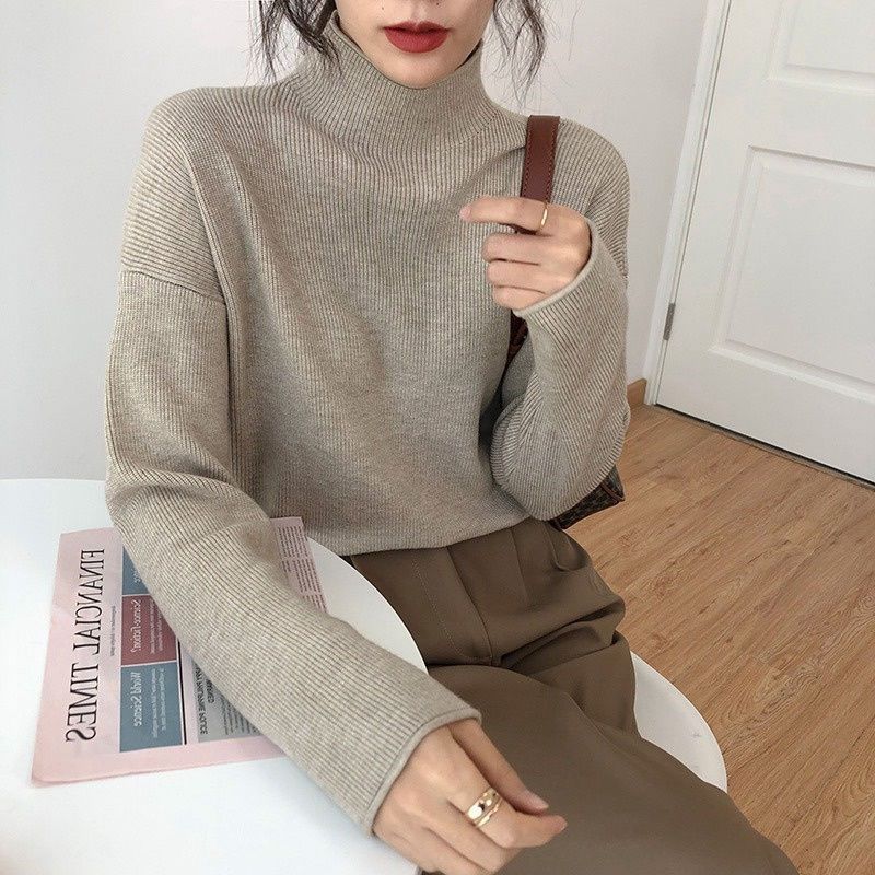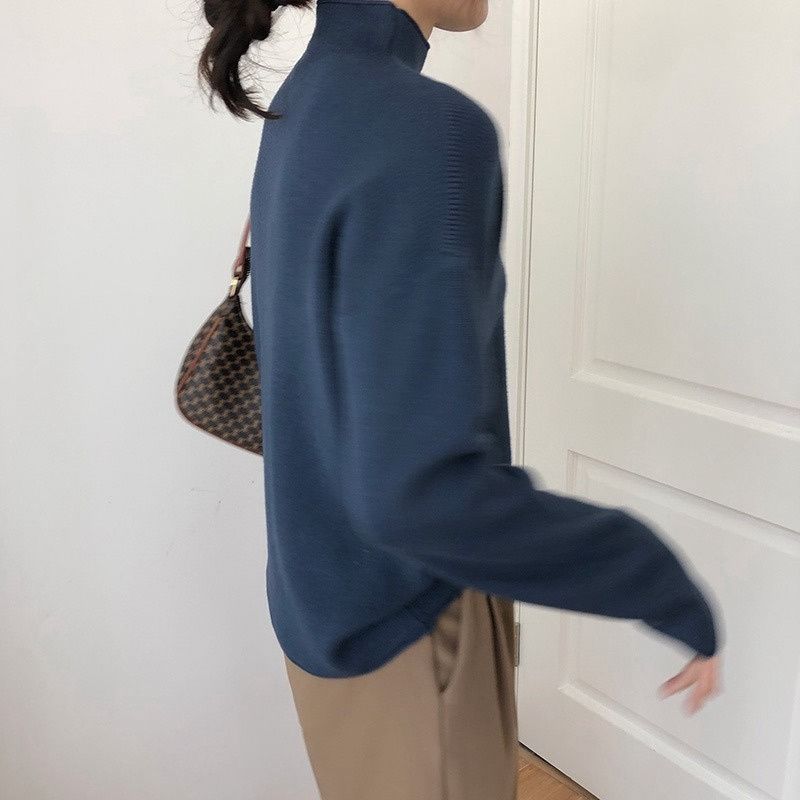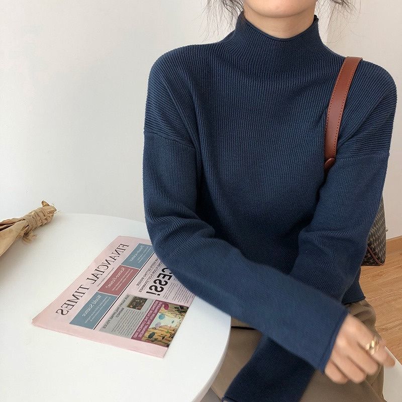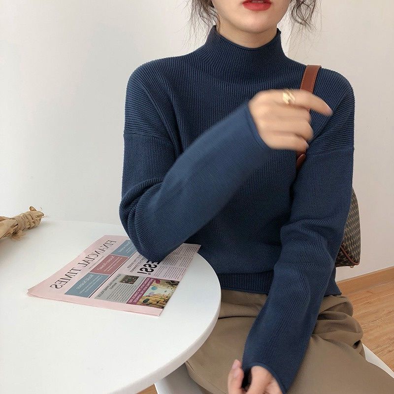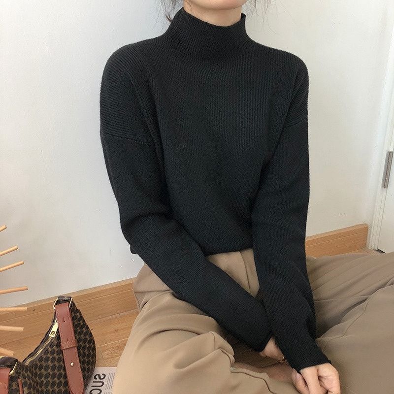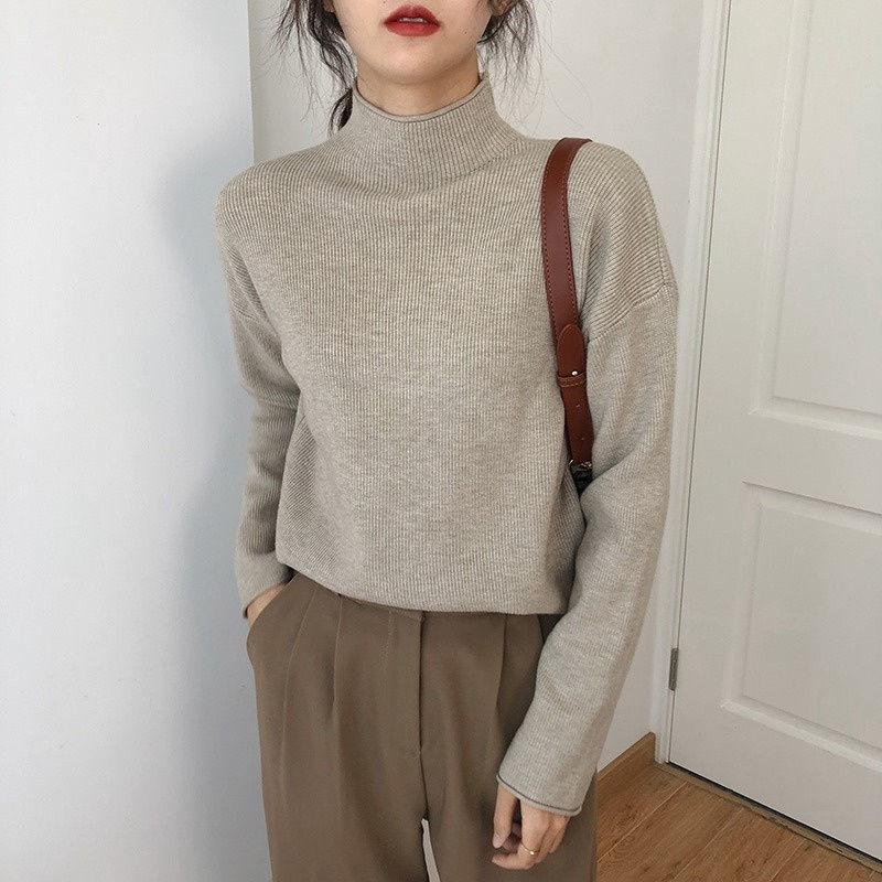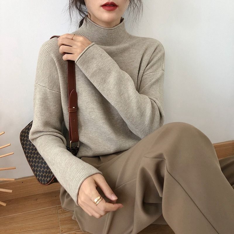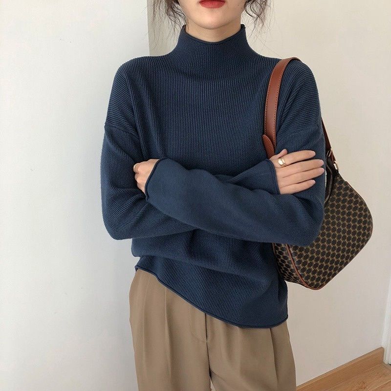 Suéter de cuello alto medio para mujer, otoño e invierno, nuevo, suelto, combinable con todo, estilo occidental, suéter de manga larga, top