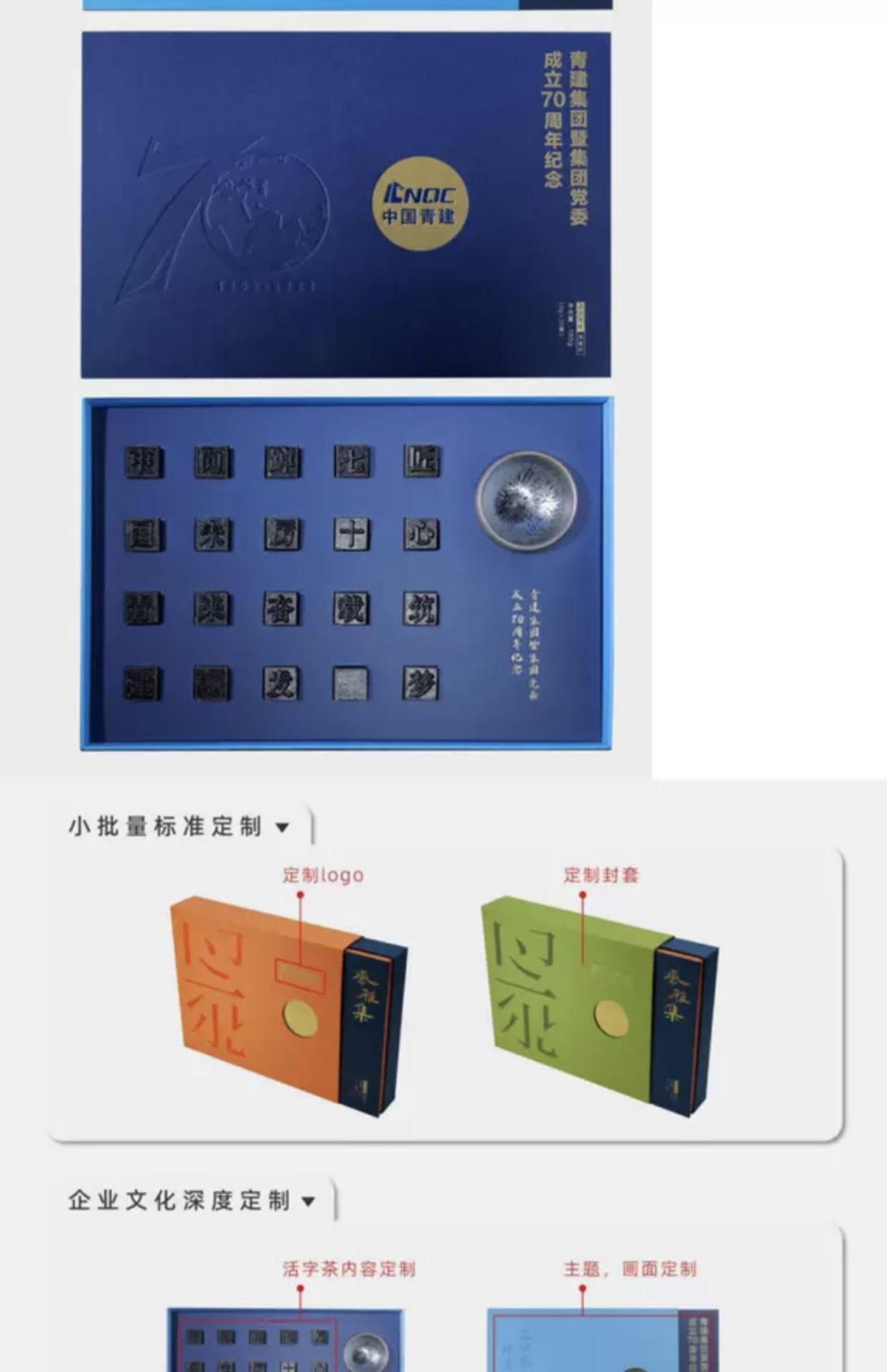 |   Hojas de té blanco personalizadas 50 g/pieza Se pueden moldear de forma flexible varios tipos de té con patrones, texto o logotipo Té negro de Hunan  ¥9.5  Compre ya |   Procesamiento de té prensado con monedas, té negro Anhua, Qujiang, prensado en rebanadas finas, marca, logotipo, texto, té, personalización ODM  ¥4.5  Compre ya |   Regalo de aniversario, juego de té cultural y creativo, combinación de té, bloques de té personalizados de forma flexible, té negro tipo móvil Hunan Anhua  ¥540.0  Compre ya |   Regalo del Festival de Primavera, reunión anual de la compañía de seguros del banco de té negro Anhua, Qianli Jiangshan, combinación de juego de té de cerámica de alta calidad  ¥548.0  Compre ya | ||