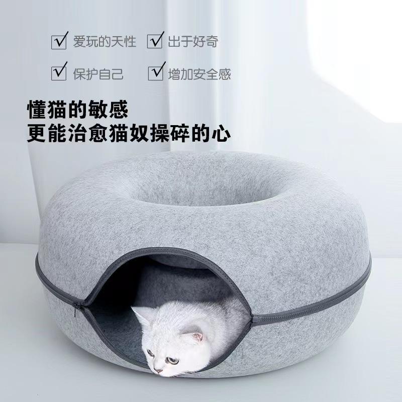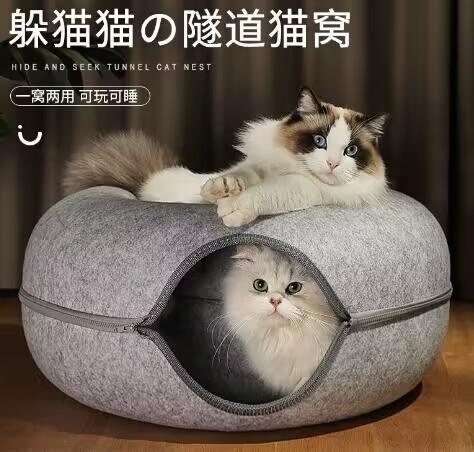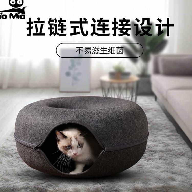 Nuevo Nido para Gatos Cuatro Estaciones Cerrado Redondo Dona Fieltro Mascota Nido para Gatos Túnel Nido Juguete Túnel para Gatos