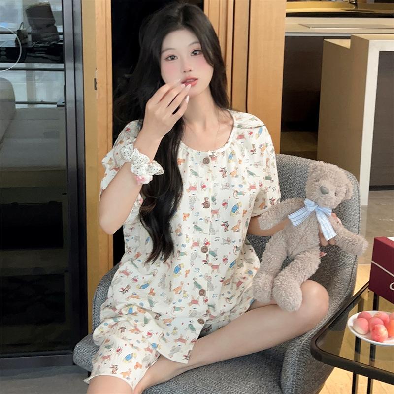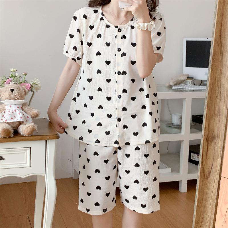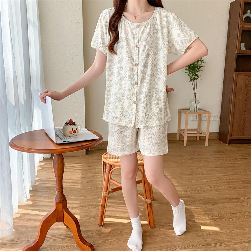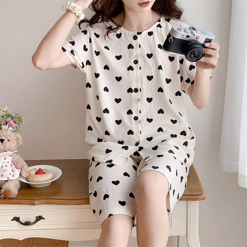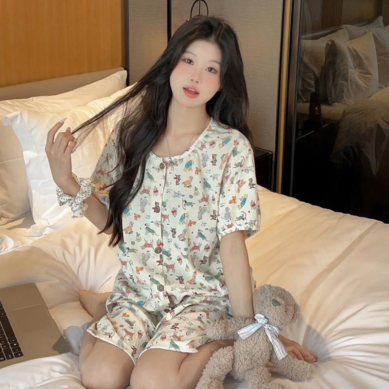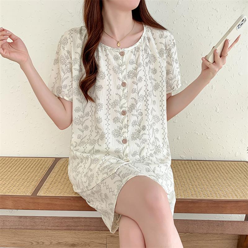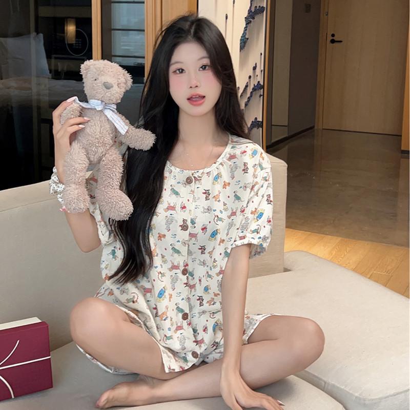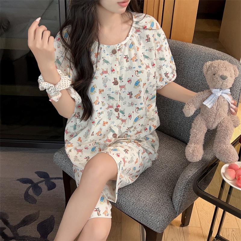 Cárdigan de algodón con botones y cuello redondo para mujer, pijama doble corto, estilo informal creativo, conjunto de ropa para el hogar, novedad de verano