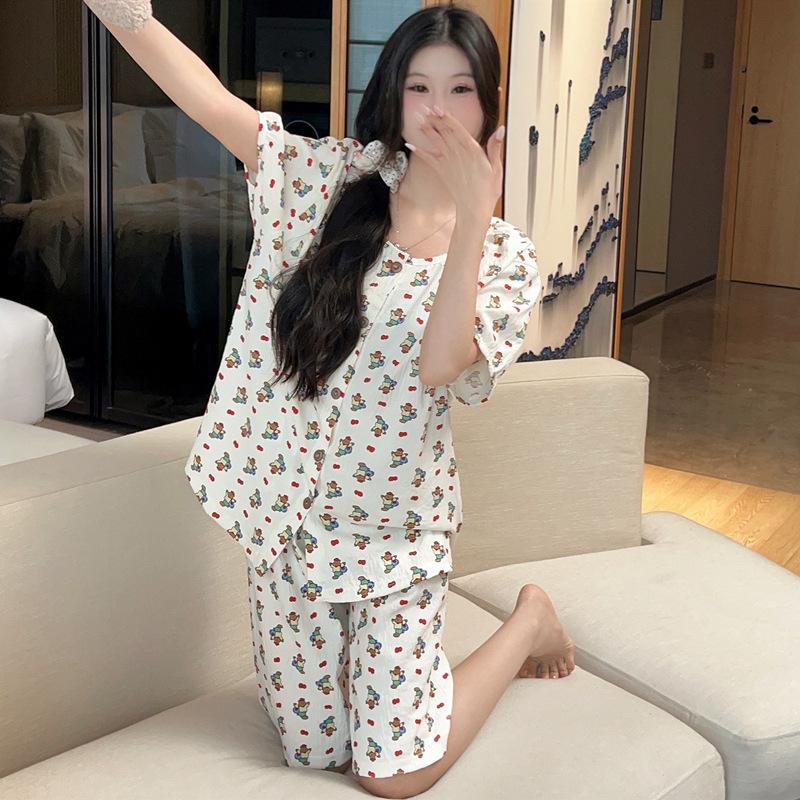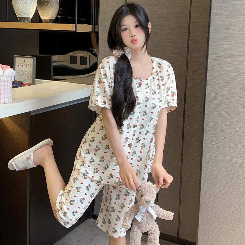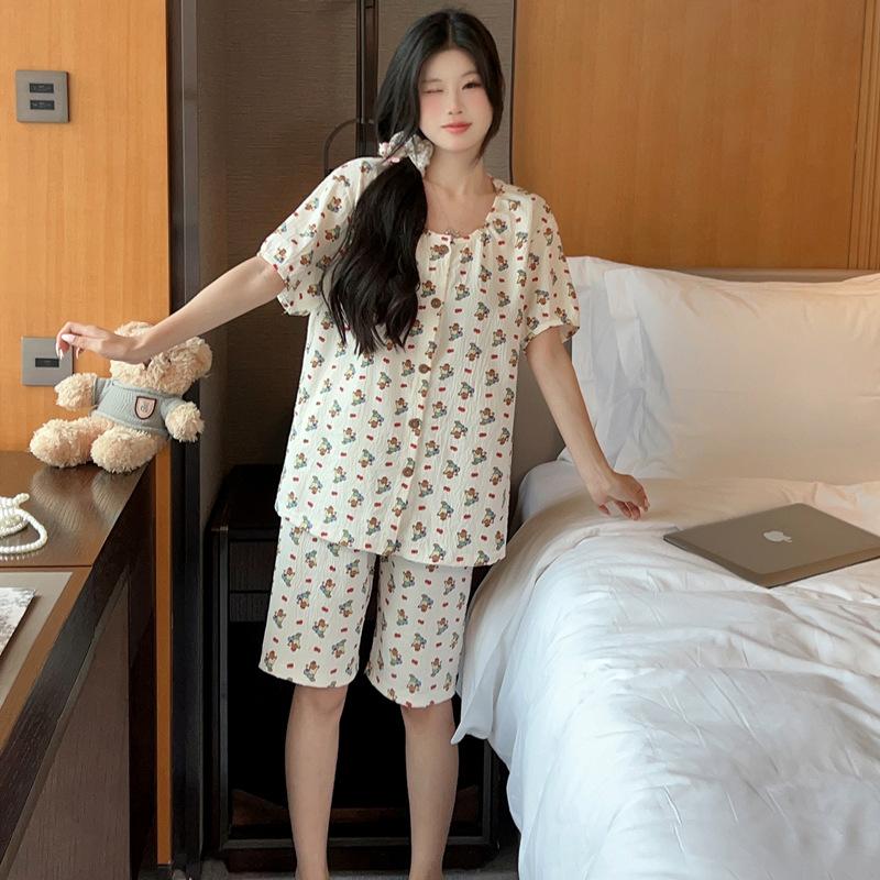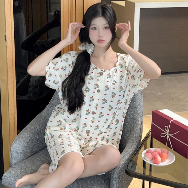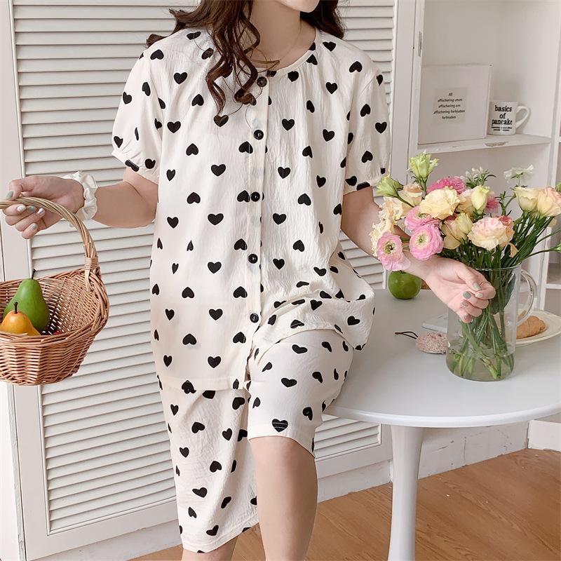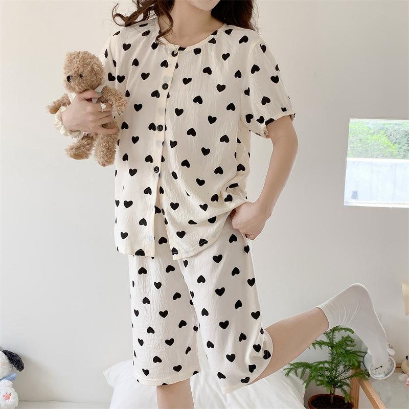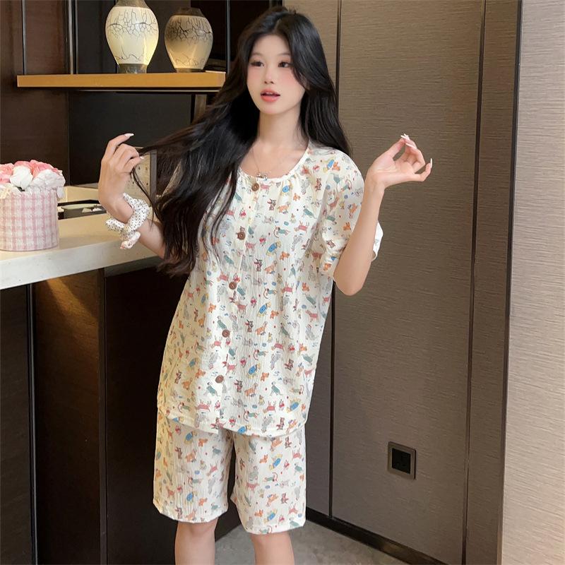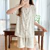 Cárdigan de algodón con botones y cuello redondo para mujer, pijama doble corto, estilo informal creativo, conjunto de ropa para el hogar, novedad de verano
