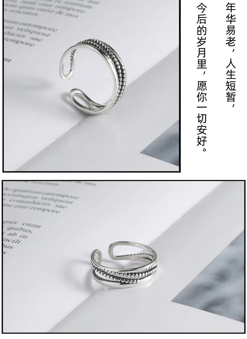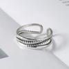 Anillo Estilo Plata Tailandesa Antiguo Enrollado Multicapa Trenzado Anillo Simple para Dedo Anillo de Cadena con Cruz Joyería Vintage para Mujer