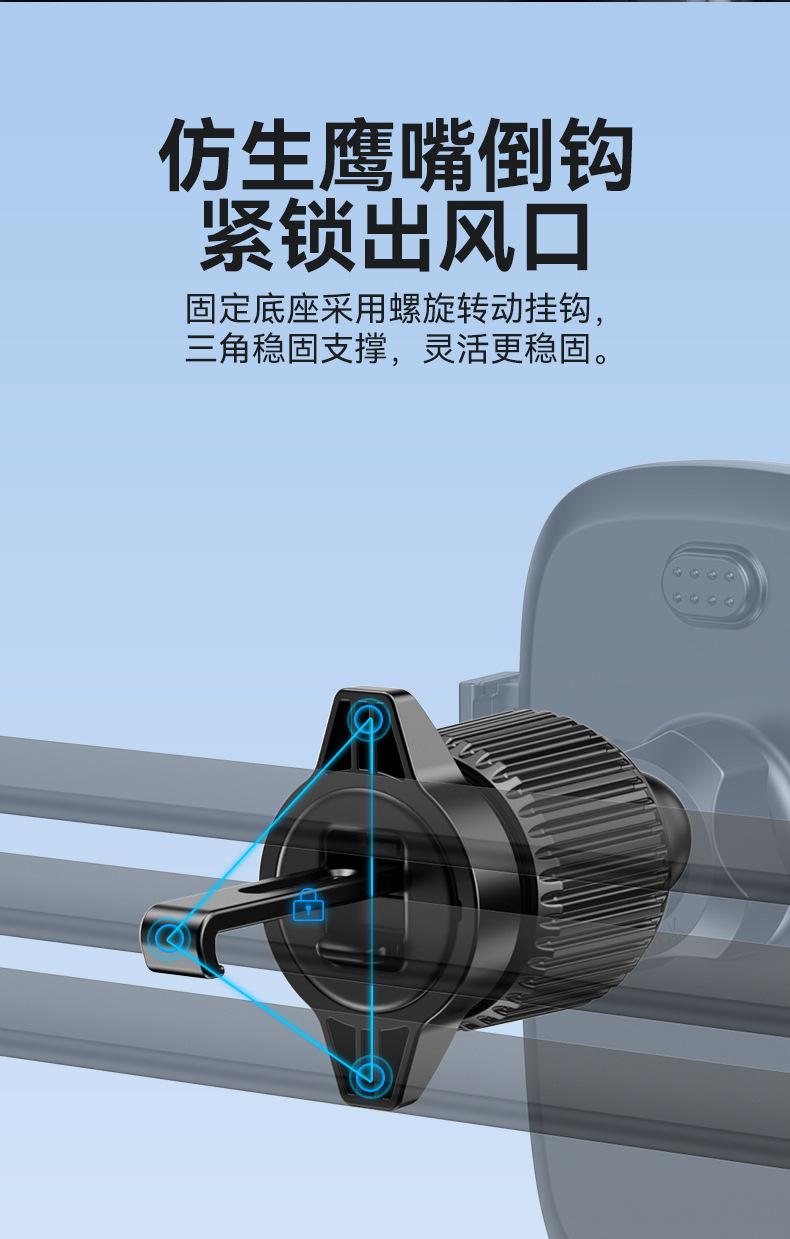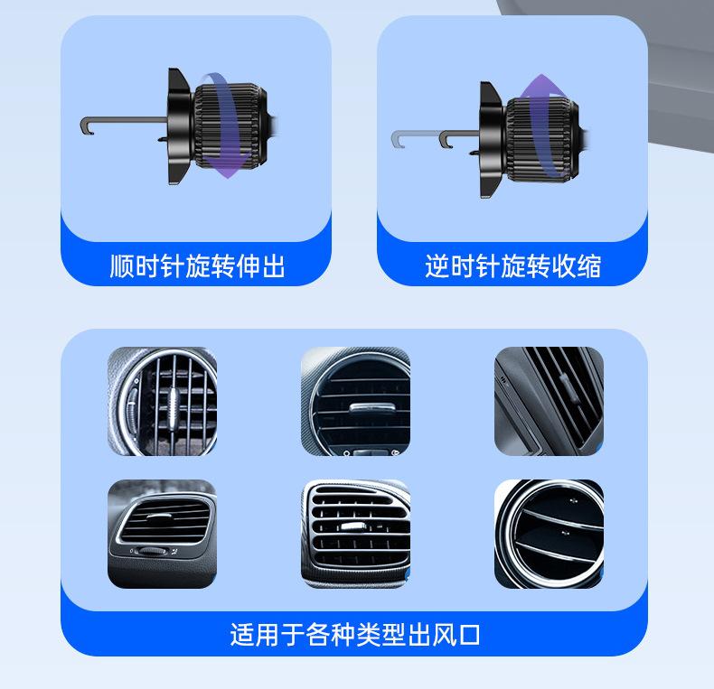 2. Especialmente diseñado para la salida de aire, adopta un nuevo clip giratorio, que es estable y no se caerá. El gancho adopta la tecnología de revestimiento de goma que combina goma suave y metal, que es fuerte y no dañará las aspas del ventilador del aire acondicionado. Hay un anillo desmontable en la cola. Si la salida de aire es demasiado pequeña, se puede quitar para reducir el área de contacto y sujetar la salida de aire con más firmeza.