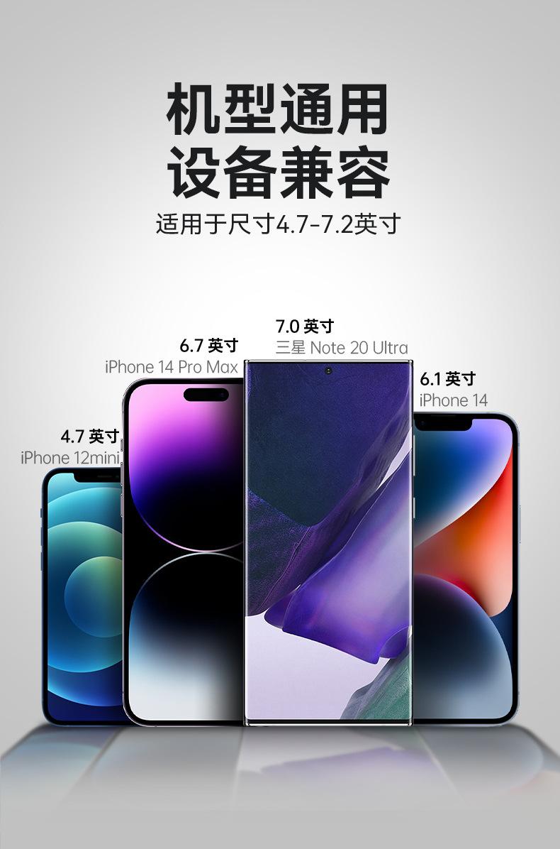1. El arco del clip es moderado. La parte superior está cubierta con cuero PU de sarga, que no solo es hermoso sino también más efectivo para proteger el teléfono. La longitud se puede ajustar hacia arriba y hacia abajo para evitar que el brazo del clip presione los botones del teléfono, y el centro de gravedad del teléfono se puede ajustar para equilibrarlo de modo que esté estable y no se caiga.