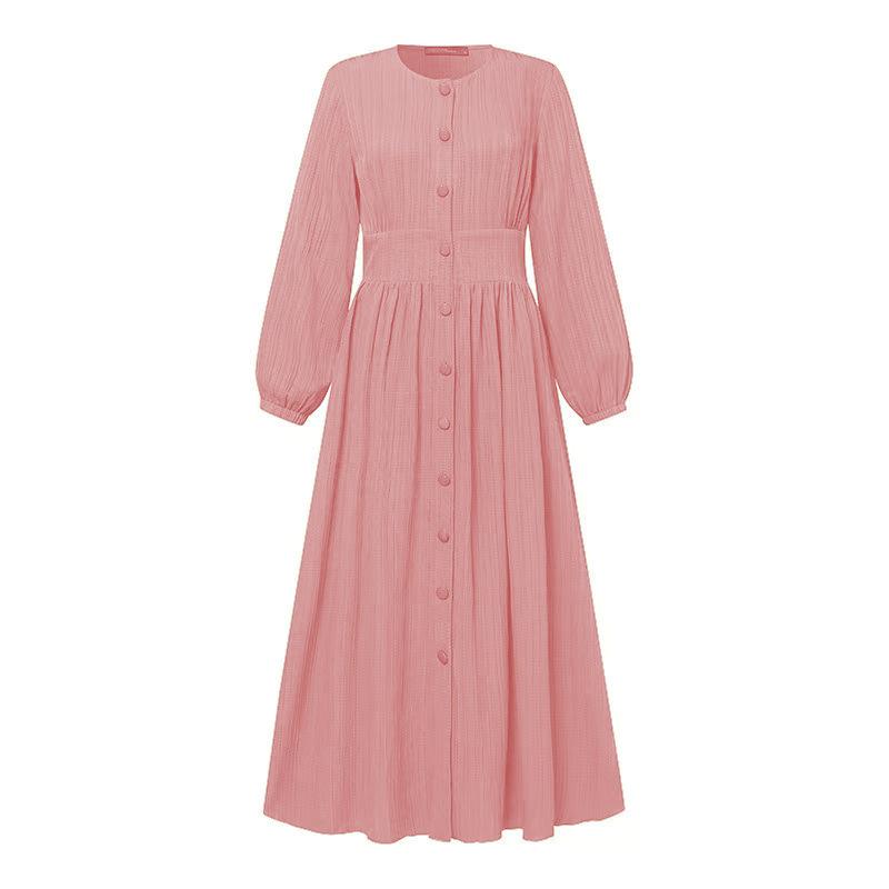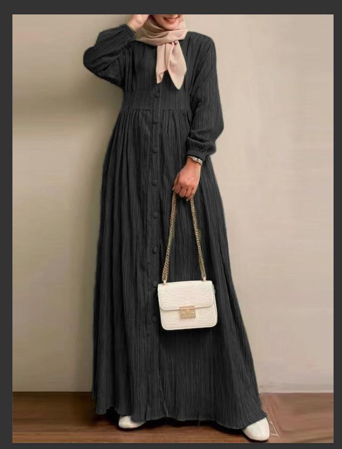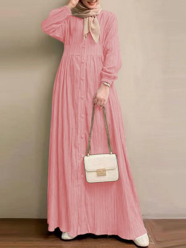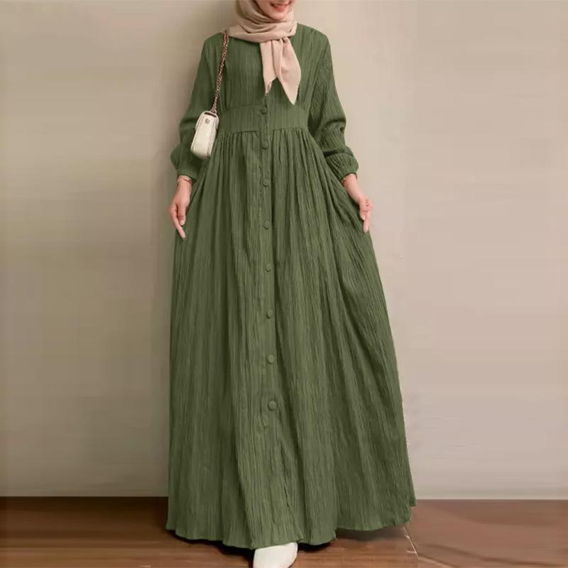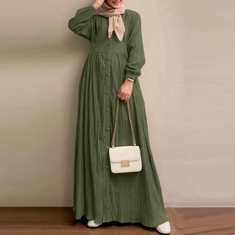 Vestido elegante de moda de color sólido para mujer musulmana de Oriente Medio, estilo retro con mangas abullonadas, primavera y otoño, 2024