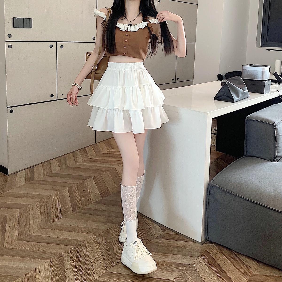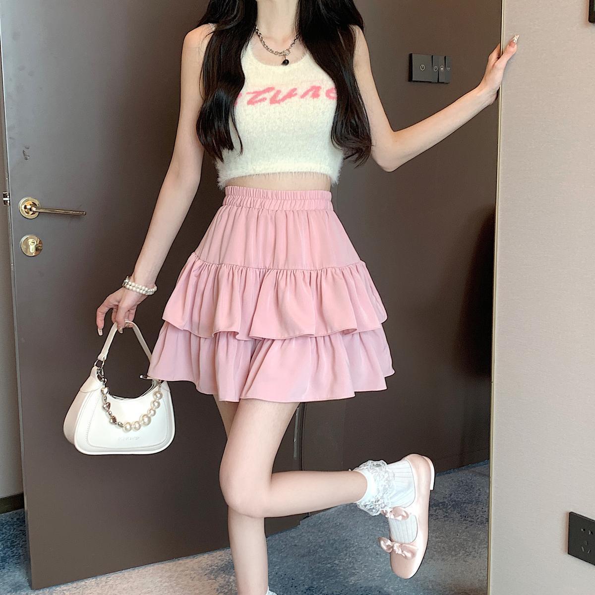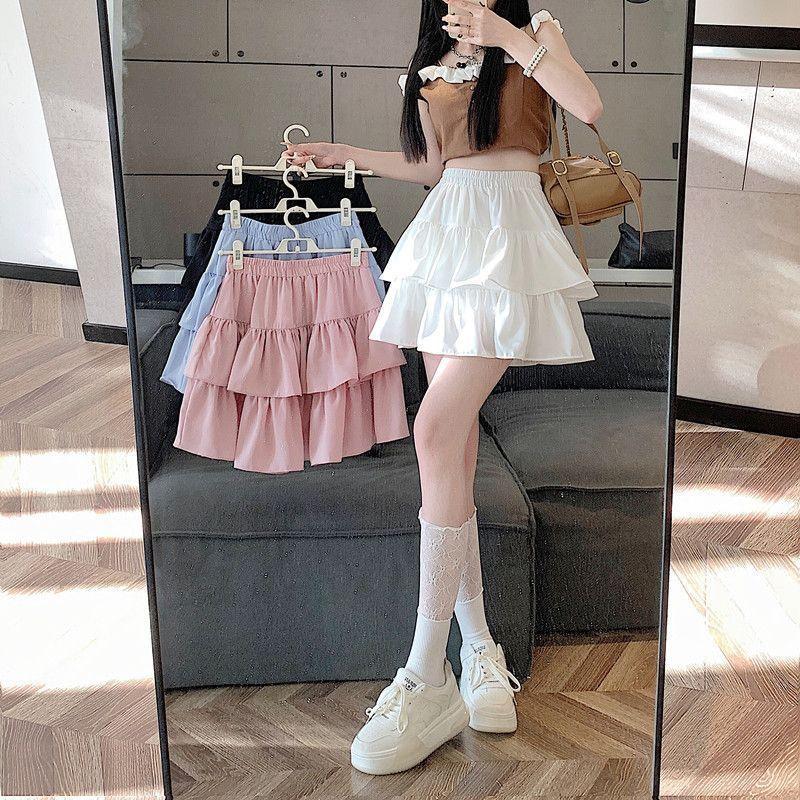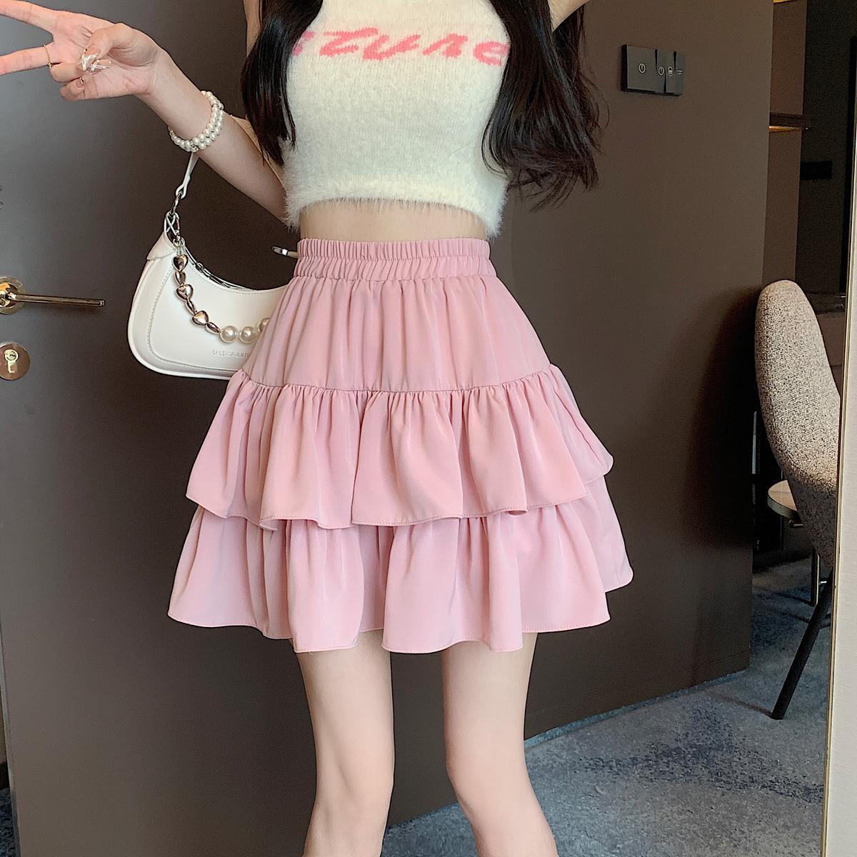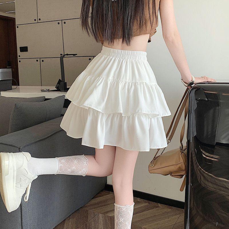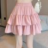 Falda de color sólido de verano nueva versátil con forma de pera, cintura alta, línea A, falda de pastel, falda corta pequeña y esponjosa