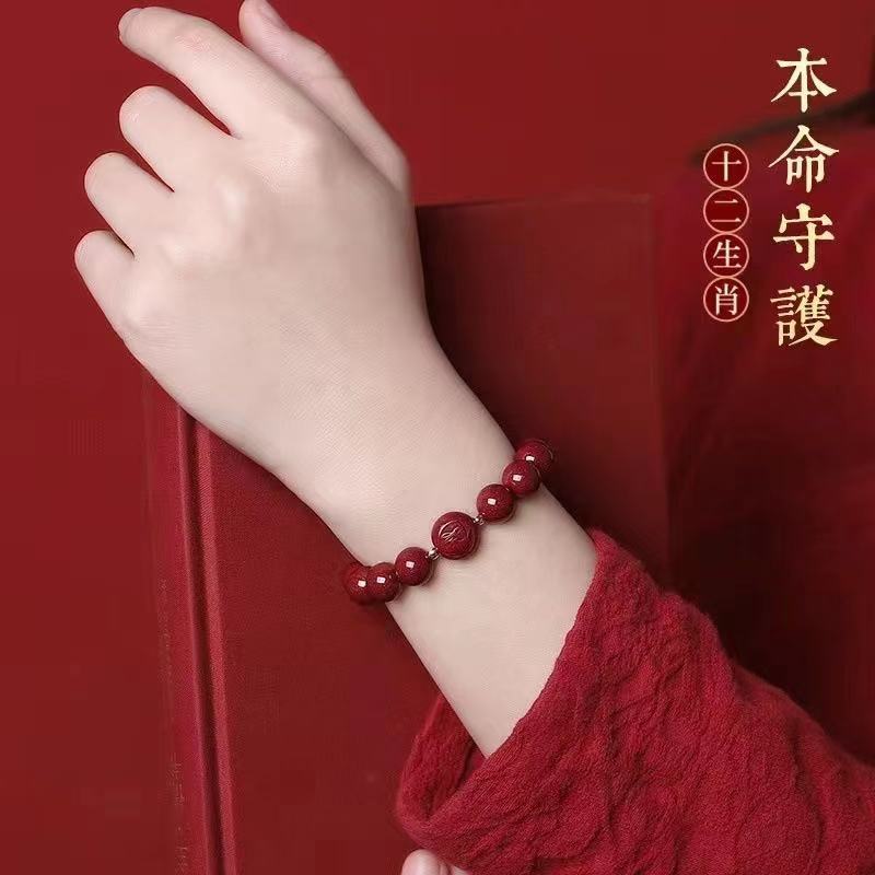 Pulsera de cinabrio año del Dragón 2024 pulsera de seguridad doce signos del Zodíaco pulsera para pareja pulsera de arena púrpura dorada para hombre y mujer Regalo