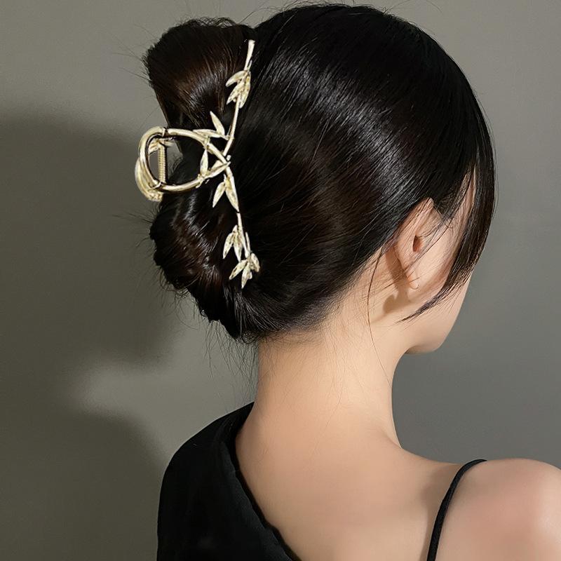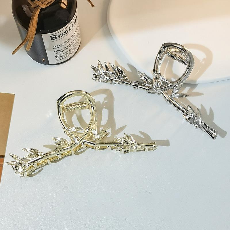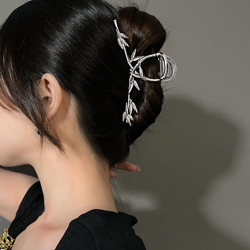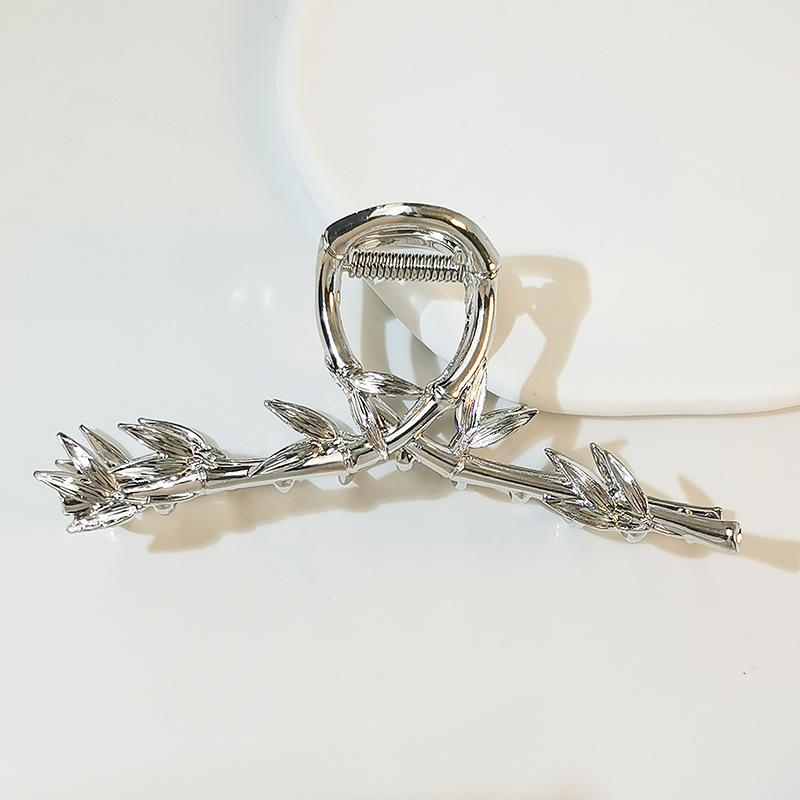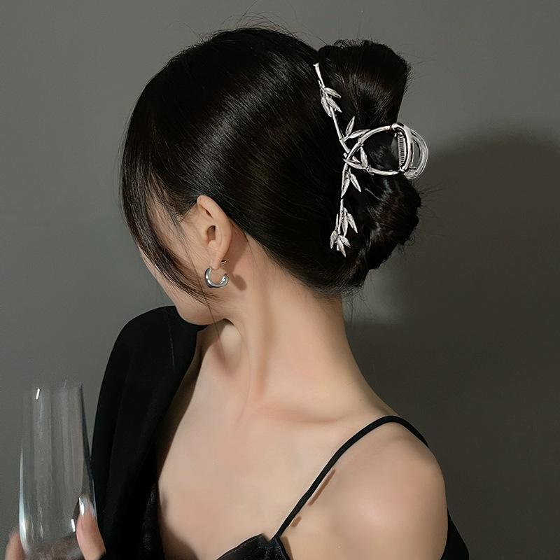 Horquilla de Bambú para el Cabello para Mujer Clip de Agarre Multimetal Sensación Avanzada Clip de Tiburón para el Cabello Pinza para el Cabello Horquilla Francesa plateada