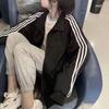 Chaqueta Nueva de Primavera y Verano Transfronteriza de Tres Rayas para Mujer, Chaqueta Delgada Estilo Coreano, Chaqueta de Béisbol Negra para Estudiante, Corte Holgado, Estilo Bf Moderno