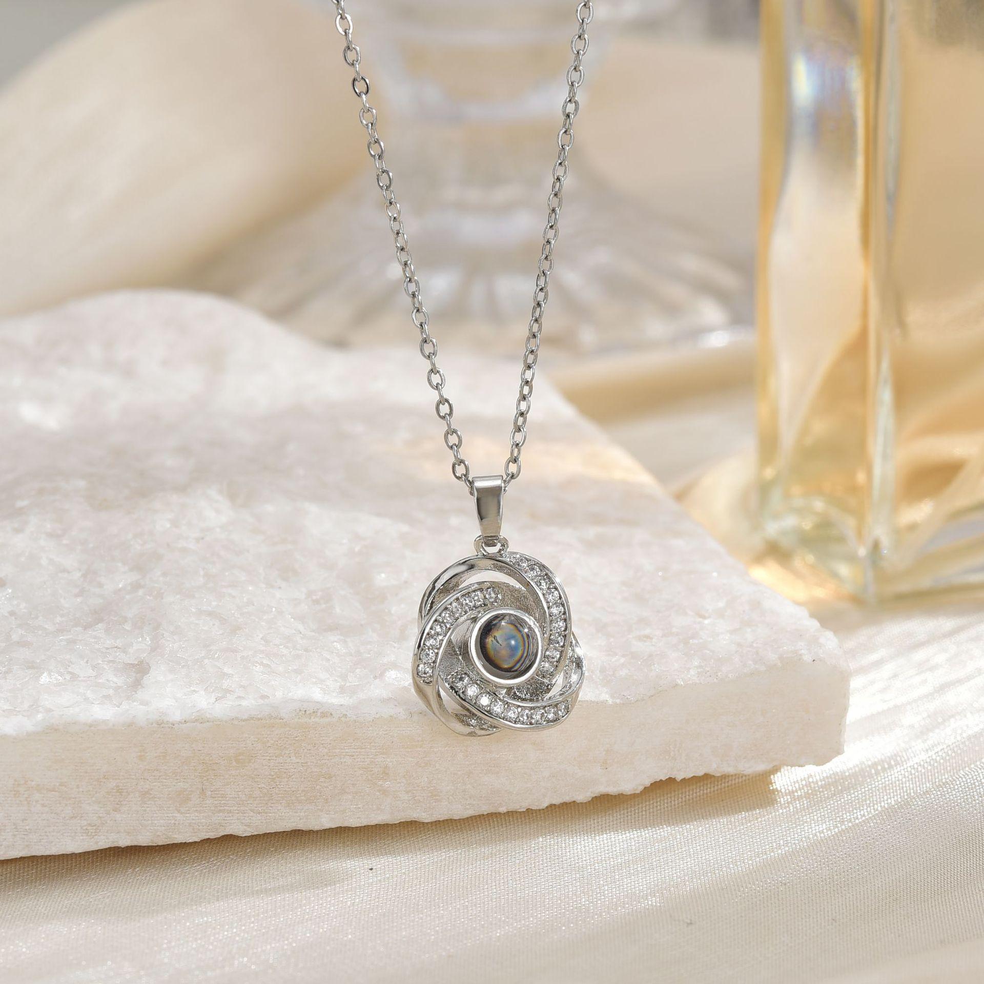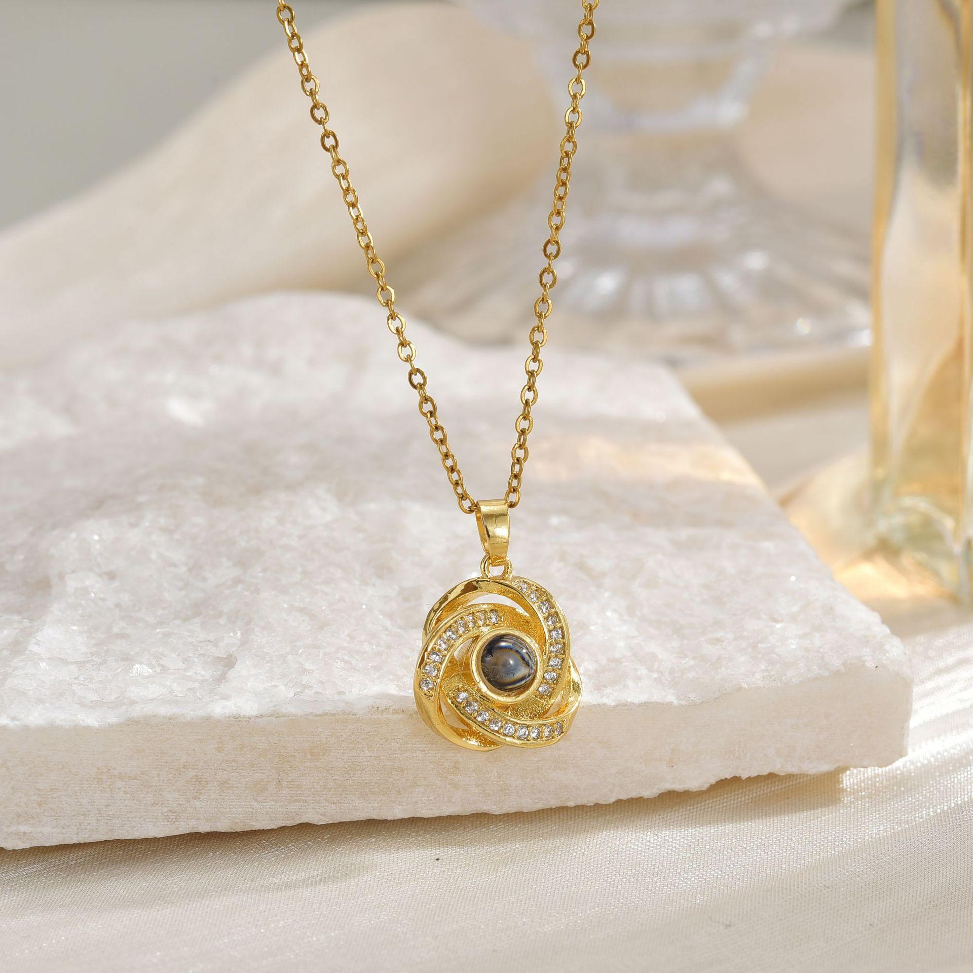 Collar de acero de titanio transfronterizo Te amo 100 idiomas collar de proyección cadena de clavícula en espiral de moda simple al por mayor