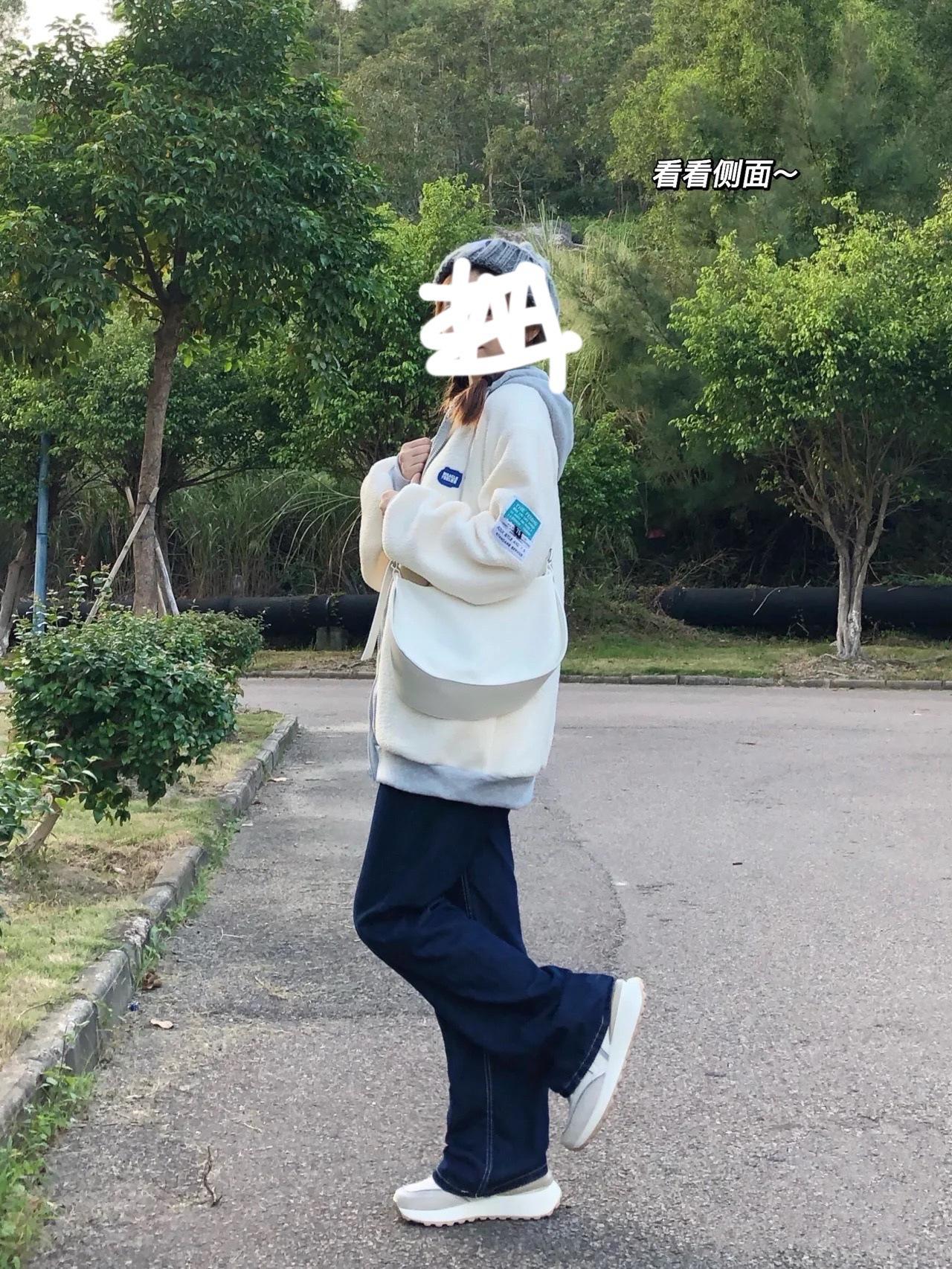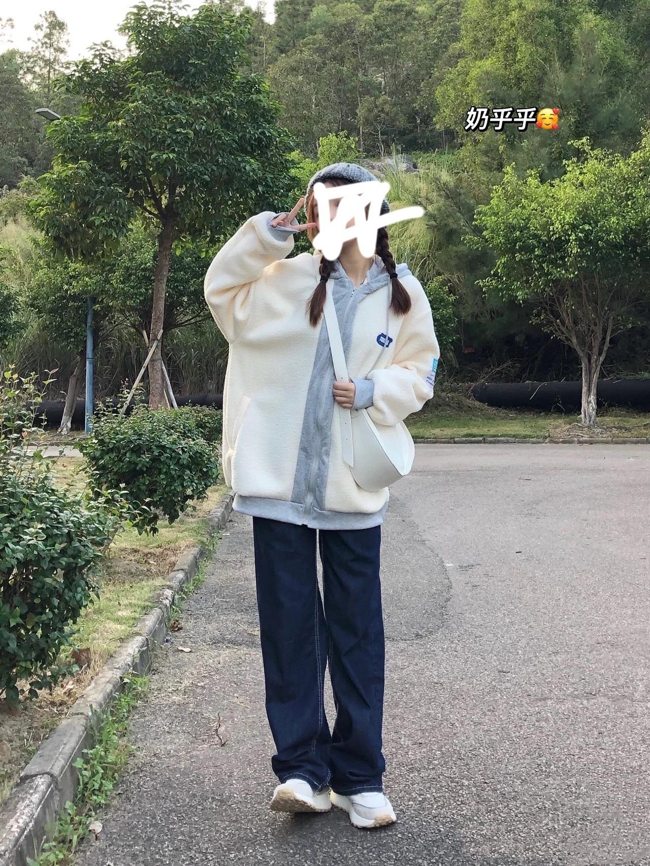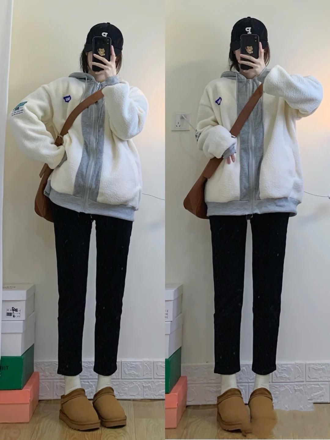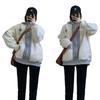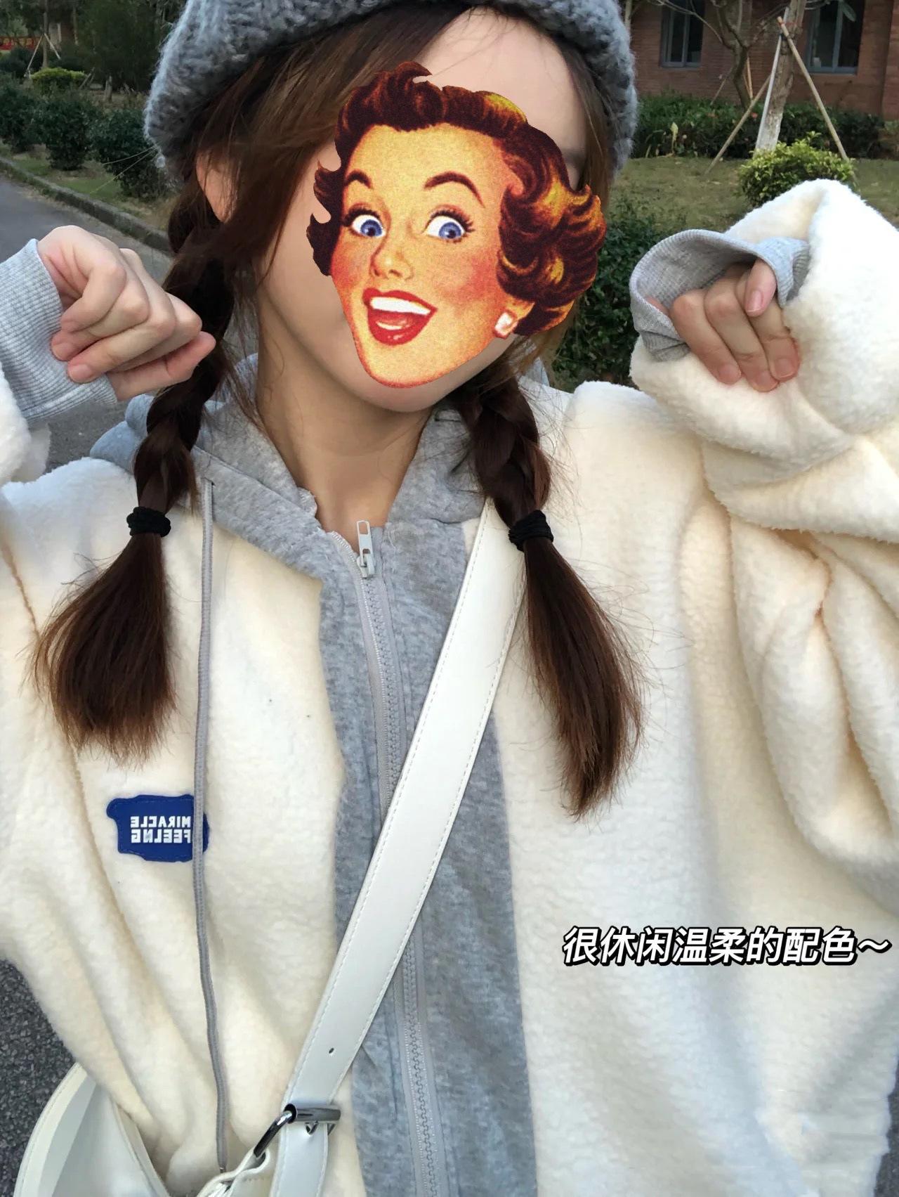 Abrigo de cachemira con capucha y cremallera patchwork para mujer Primavera Otoño e Invierno versátil estilo coreano holgado top de largo medio ins fashion