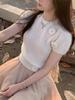 Suéter Francés Dulce Tricot Tridimensional Cuello Redondo Manga Corta Verano para Mujer Blanco Lana Mohair Suéter Corto Top