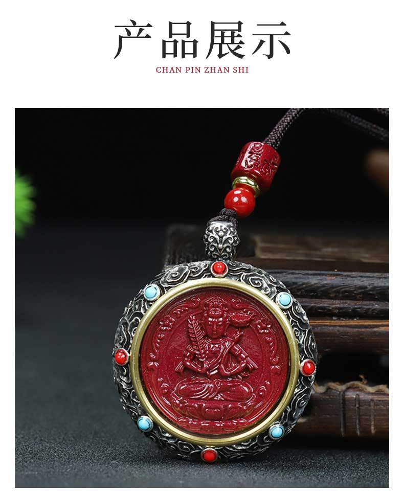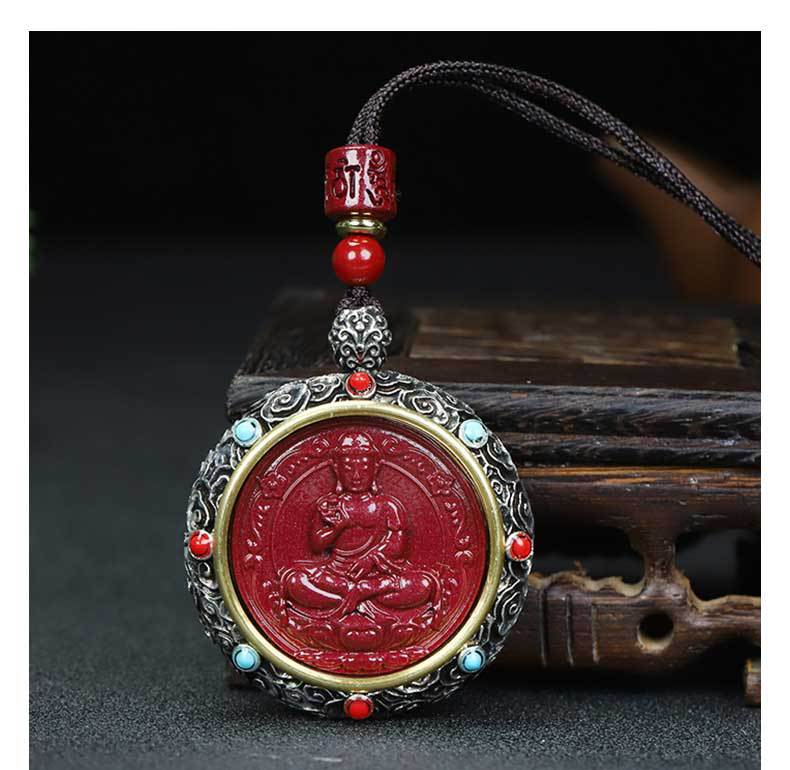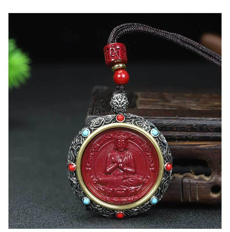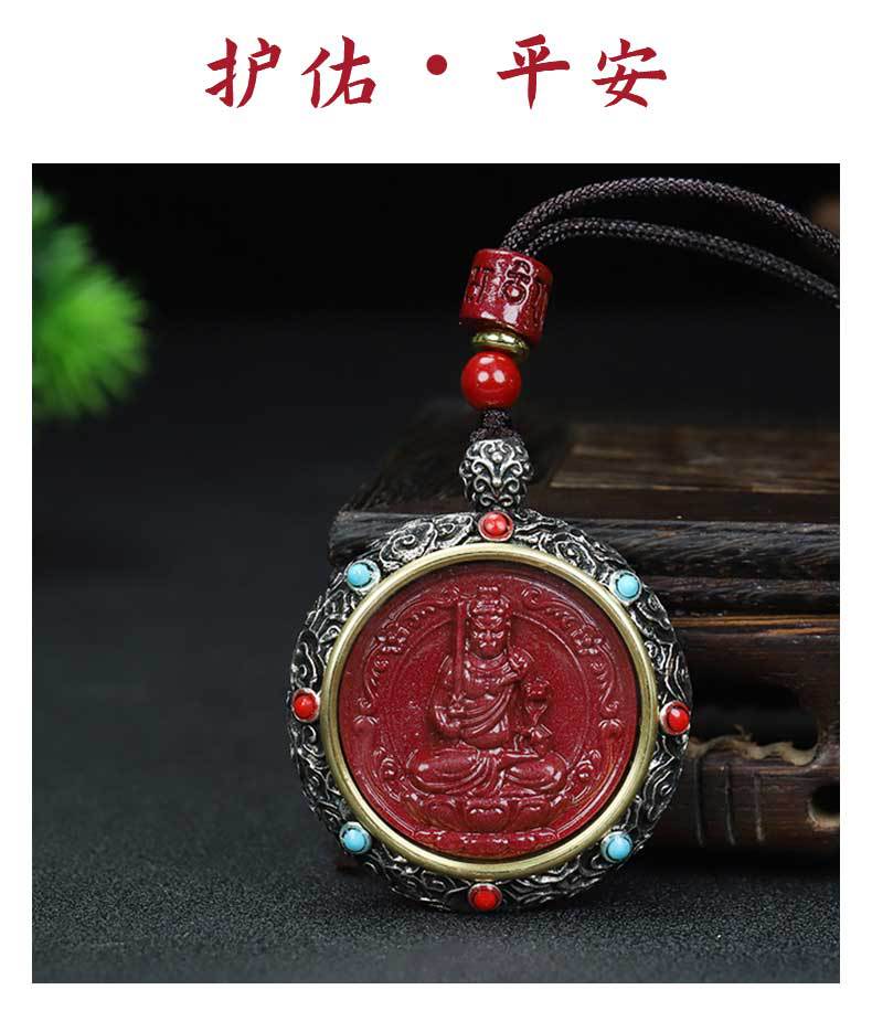 Collar de cinabrio al por mayor, oro púrpura natural, arena, ocho santos patronos, thangka, caja gabu con incrustaciones, colgante del zodiaco benmingfo