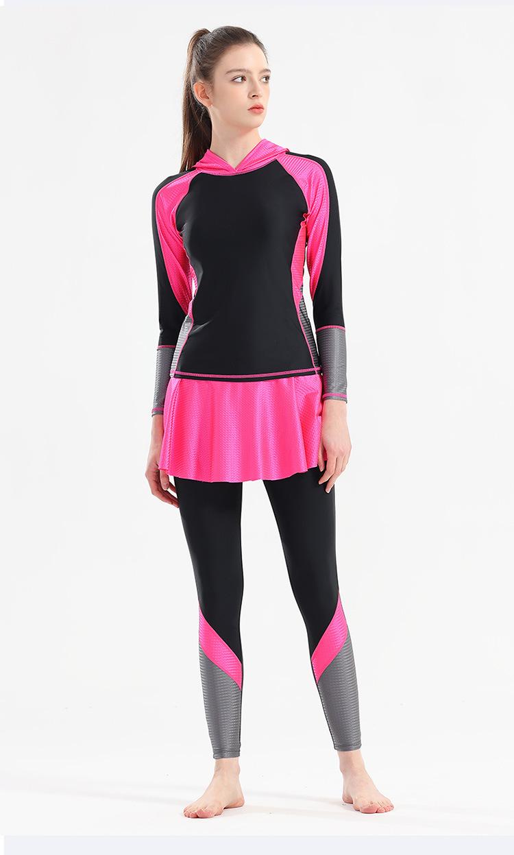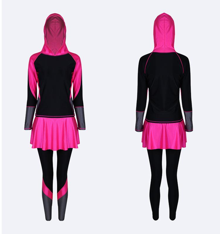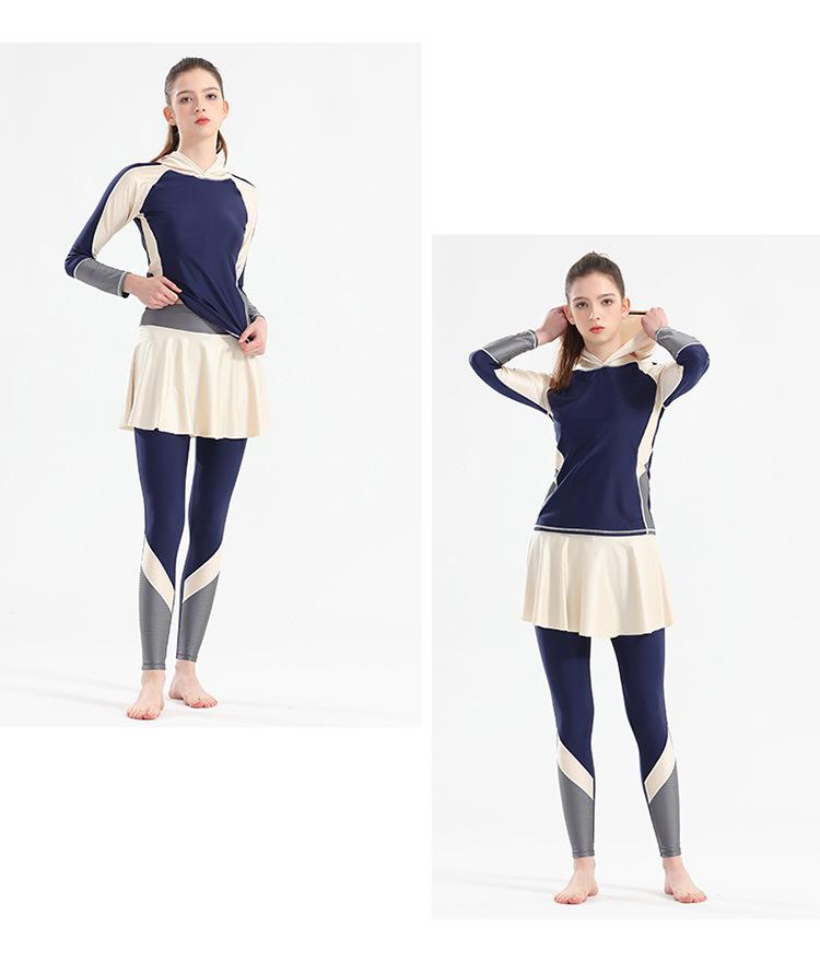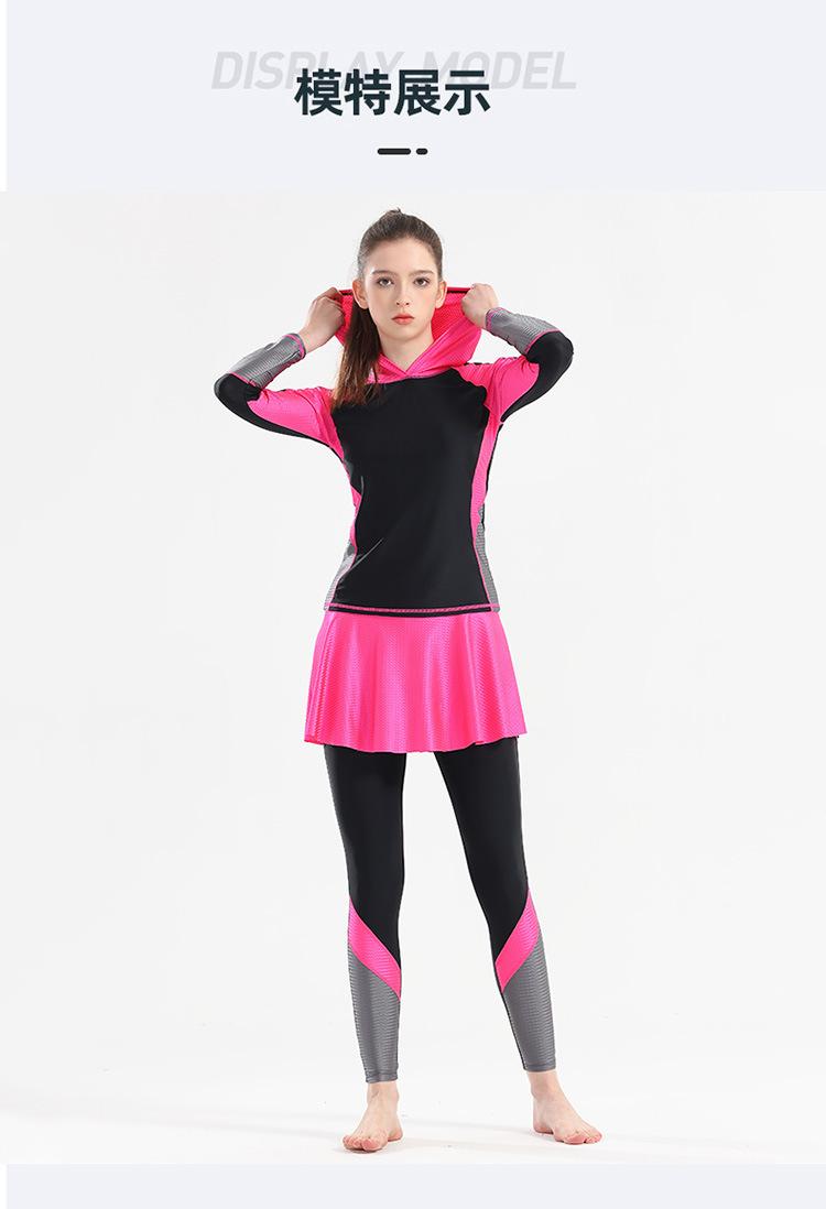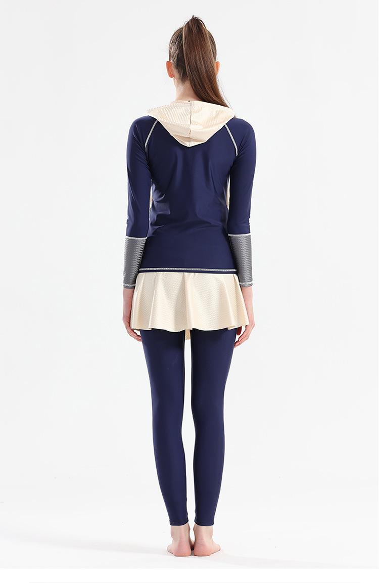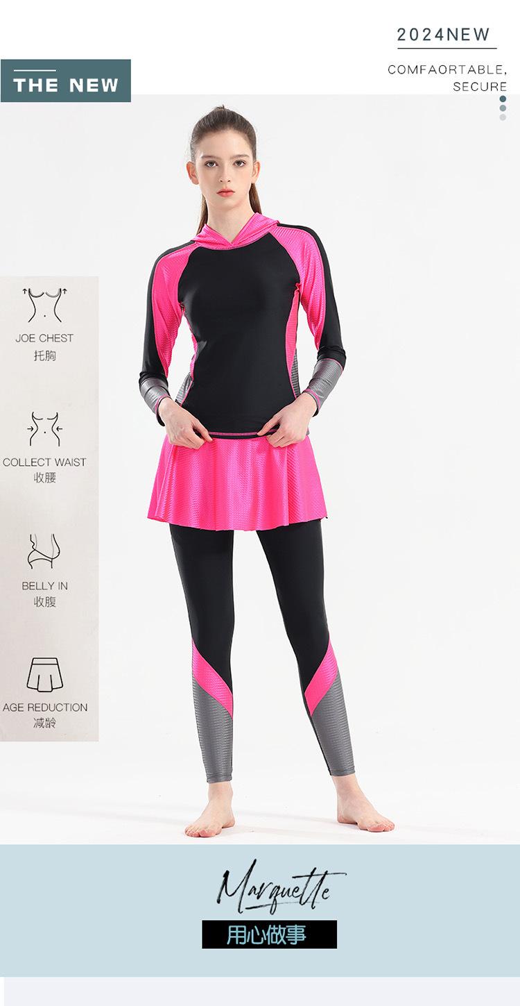 Traje de Baño de Dos Piezas para Mujer con Sudadera con Capucha de Manga Larga, Falda Protectora Solar, Control de Abdomen Integrado, Traje de Baño Deportivo Conservador Adelgazante de Talla Grande