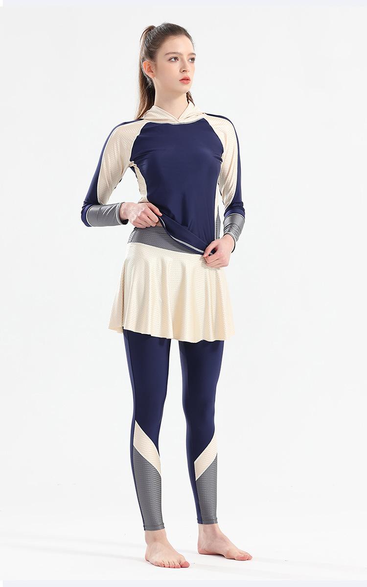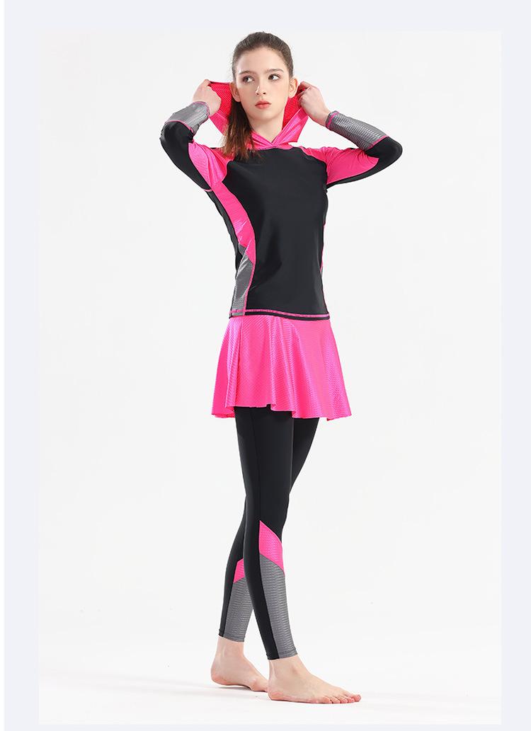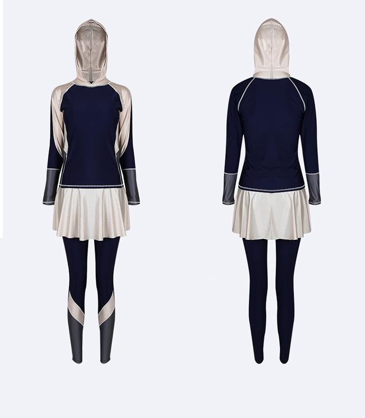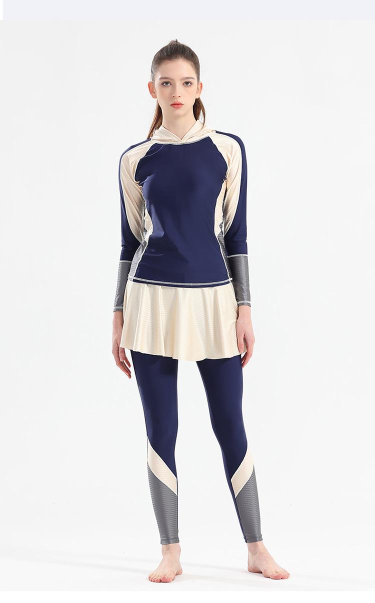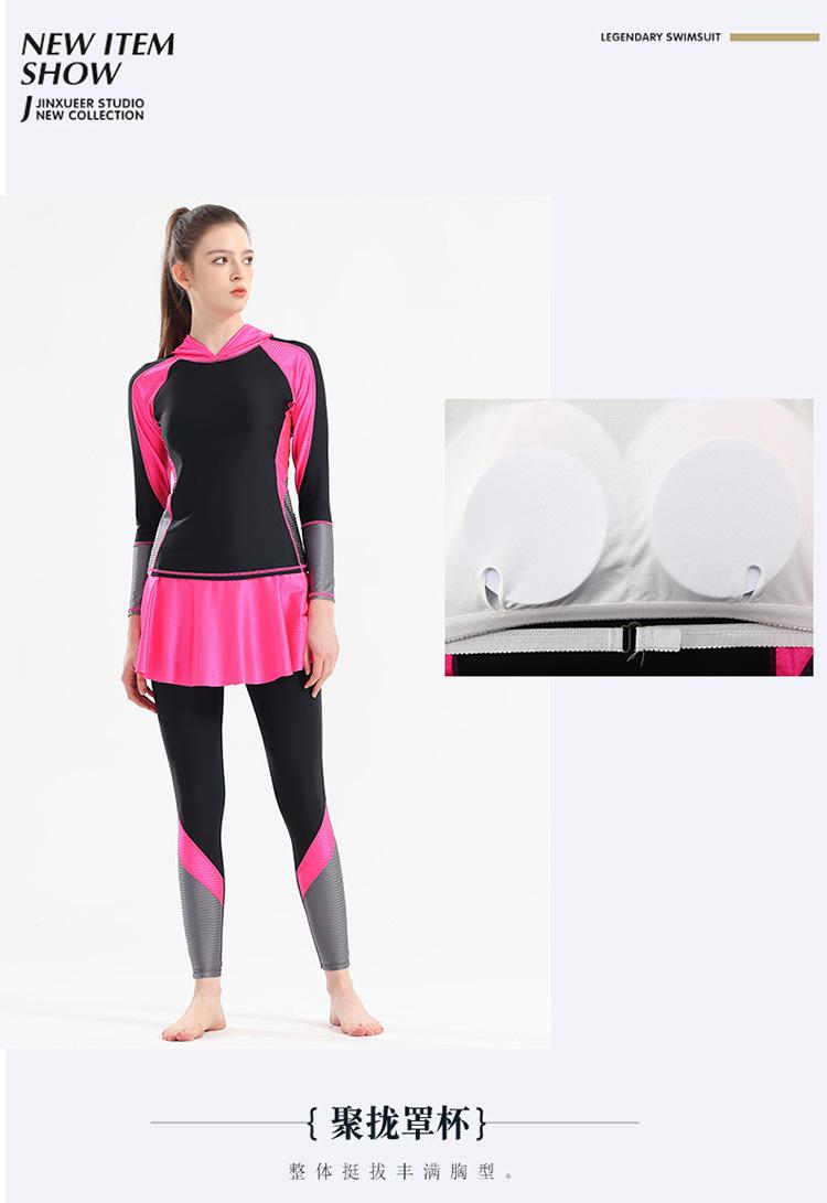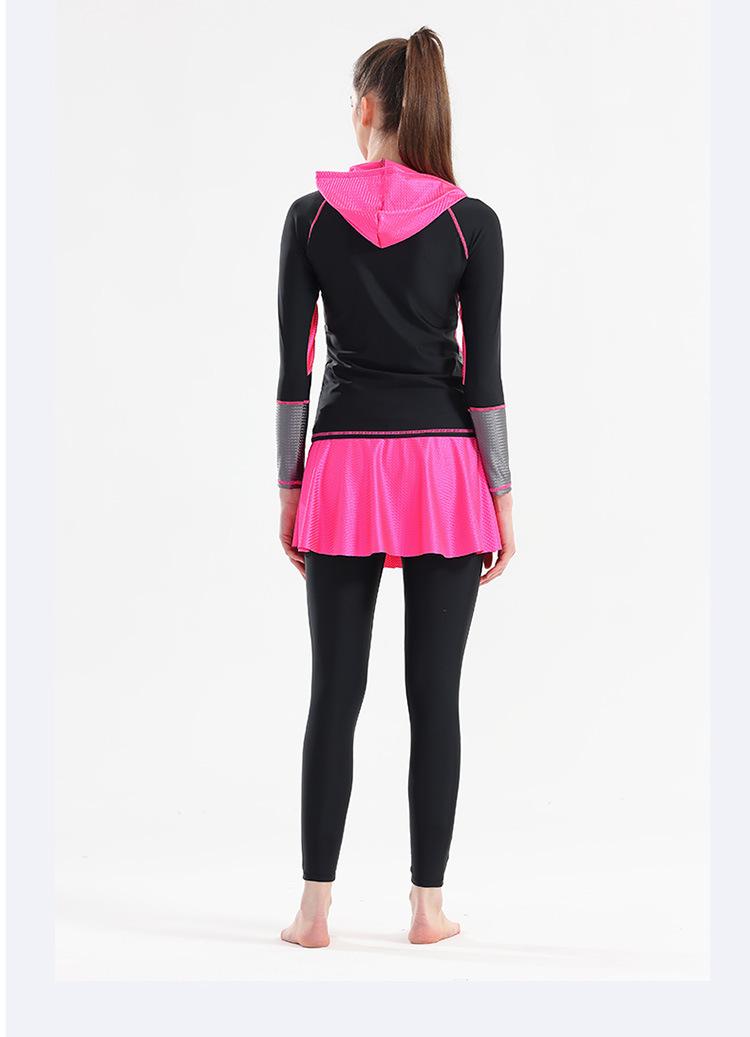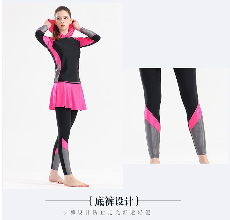 Traje de Baño de Dos Piezas para Mujer con Sudadera con Capucha de Manga Larga, Falda Protectora Solar, Control de Abdomen Integrado, Traje de Baño Deportivo Conservador Adelgazante de Talla Grande