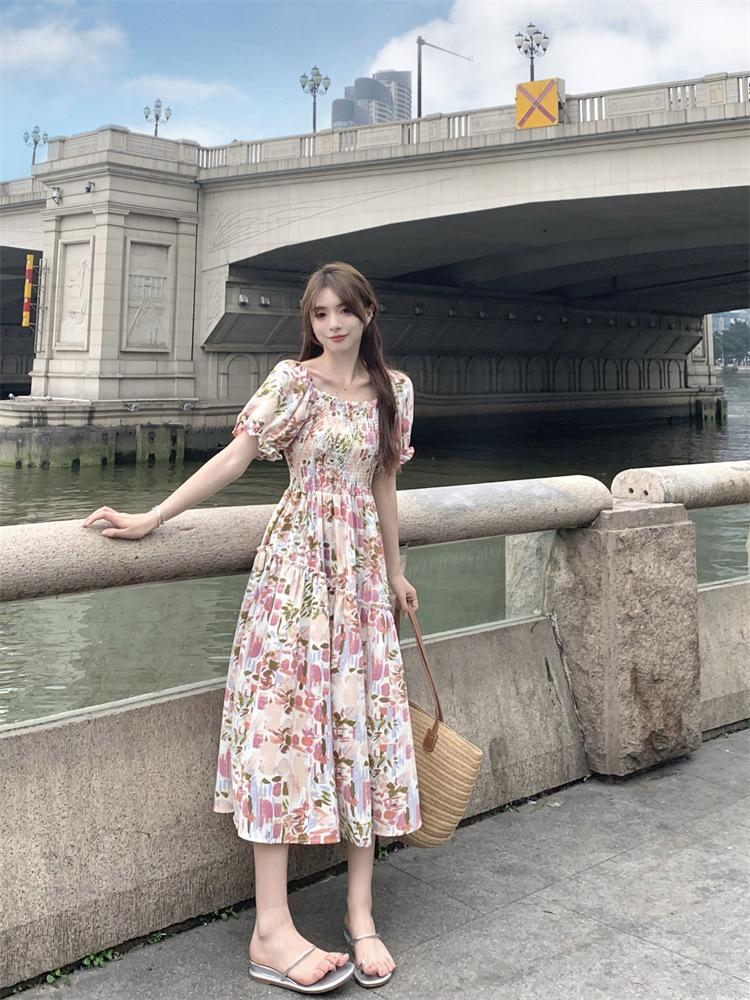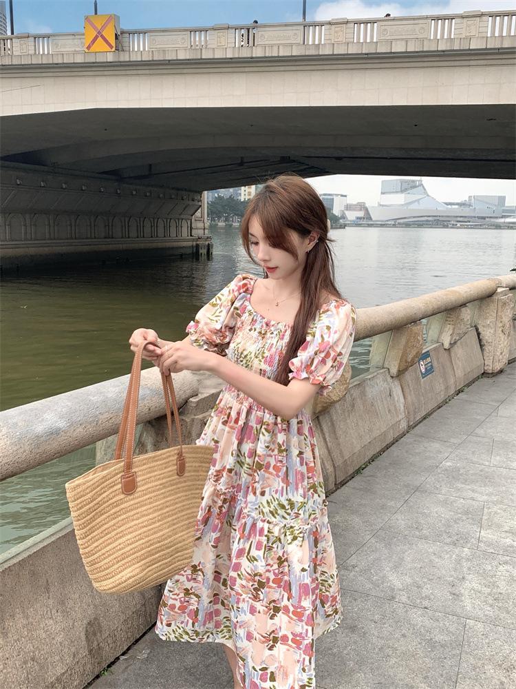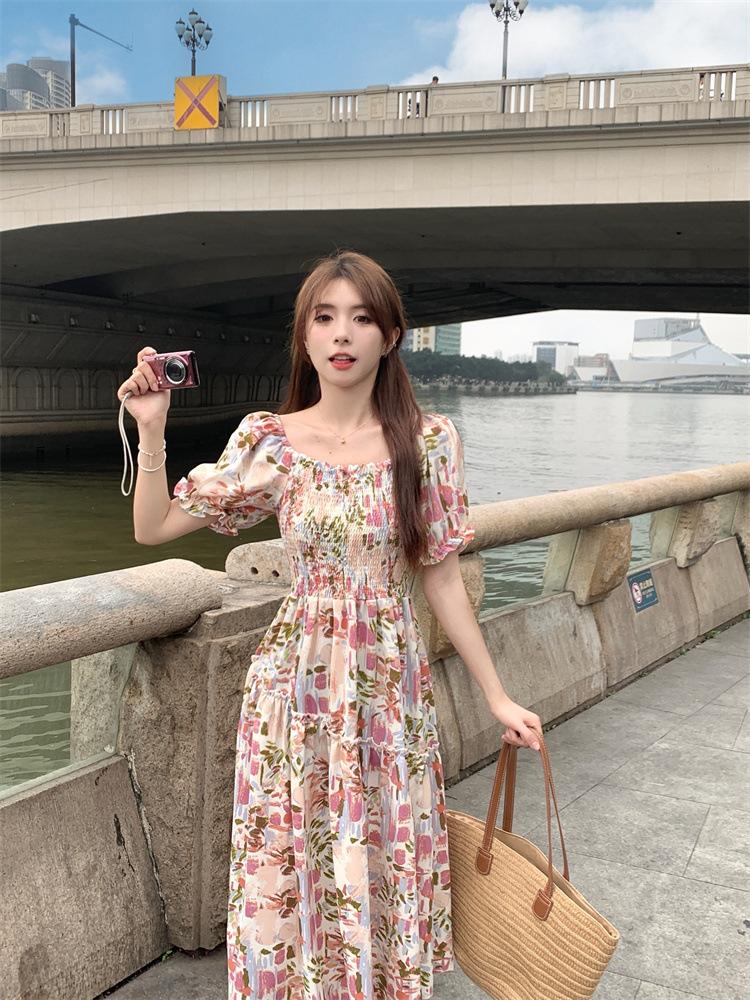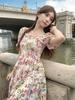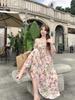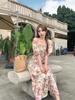 Vestido largo de gasa con estampado floral y tirantes finos, talla grande, estilo Bali, para verano, 2023