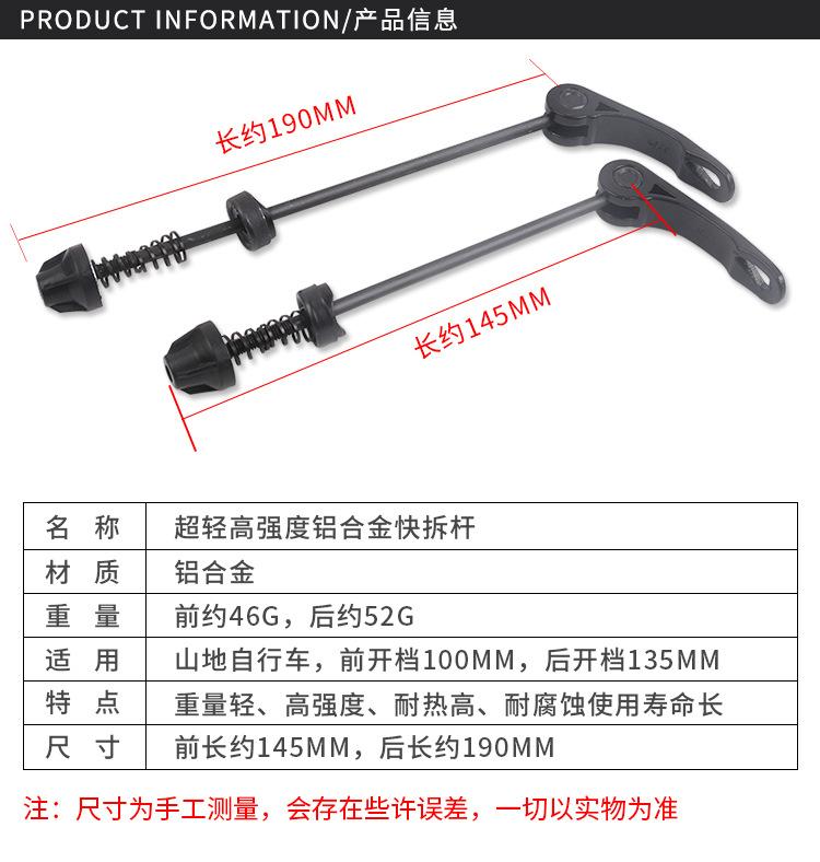 Bicicleta de Montaña Bicicleta de Carretera Varilla de Liberación Rápida Buje Eje de Liberación Rápida Eje Hueco Núcleo de Eje Delantero y Trasero Accesorios para Buje